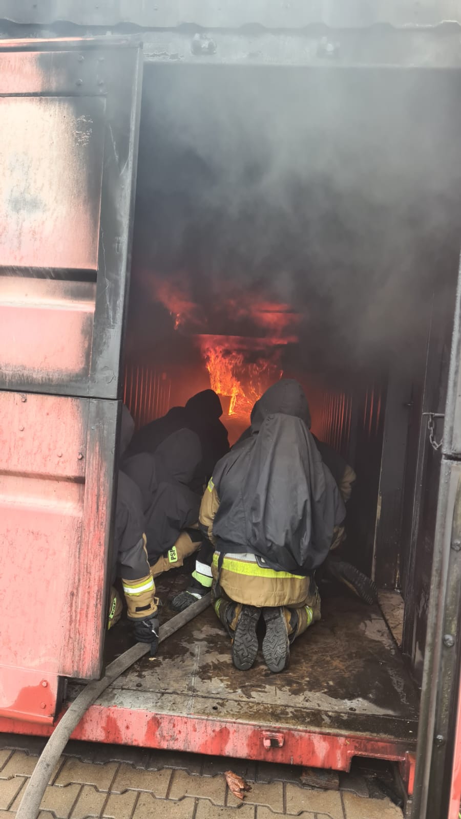 Zajęcia praktyczne odbywały się w modułowym, wielofunkcyjnym trenażerze ratowniczym oraz budynku do ćwiczeń pożarów wewnętrznych.