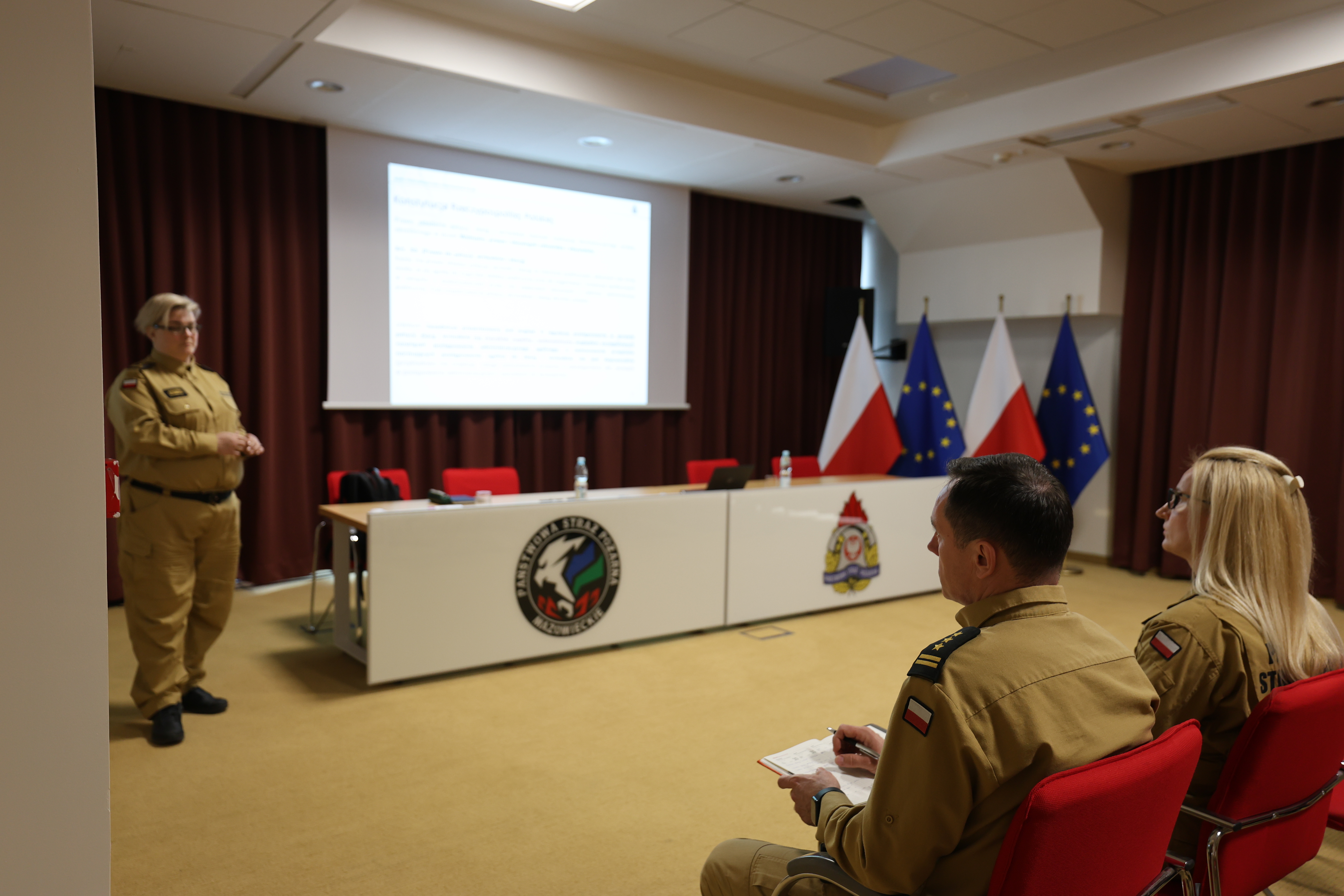 Szkolenie poprowadziła st. bryg. Ariadna Koniuch – zastępca dyrektora Biura Rozpoznawania Zagrożeń Komendy Głównej Państwowej Straży Pożarnej.