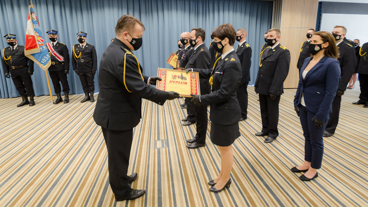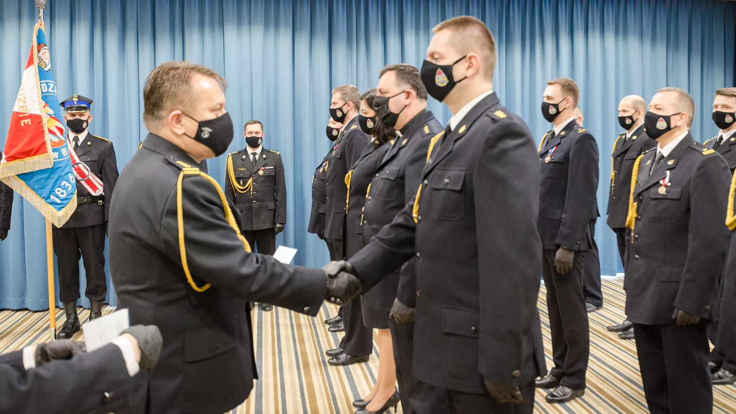 Podczas uroczystości wręczono m. in. srebrne i brązowe odznaczenia za zasługi dla ochrony przeciwpożarowej oraz dyplom komendanta głównego PSP przyznawany za wzorową postawę oraz wyróżniające osiągnięcia w służbie przeciwpożarowej.