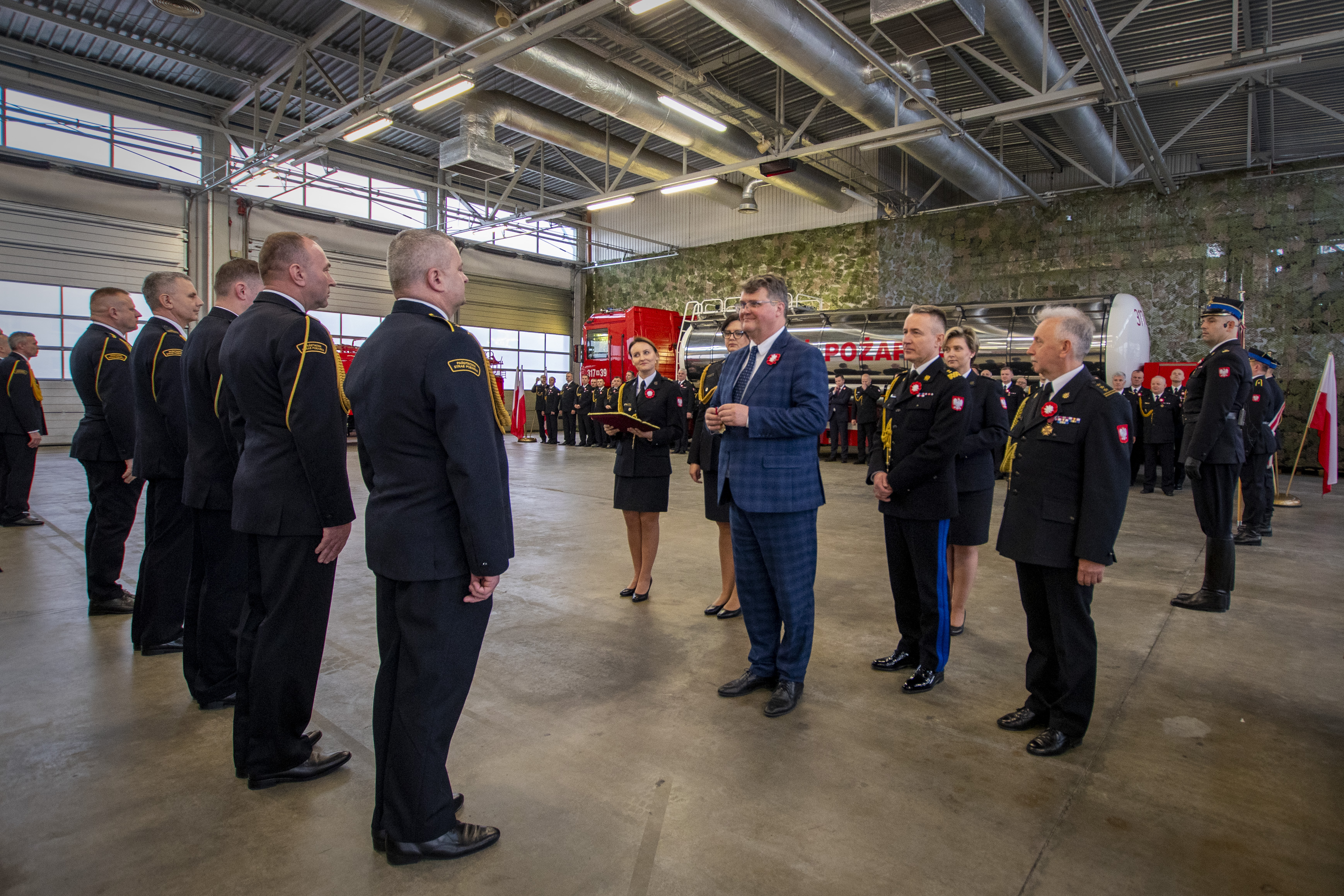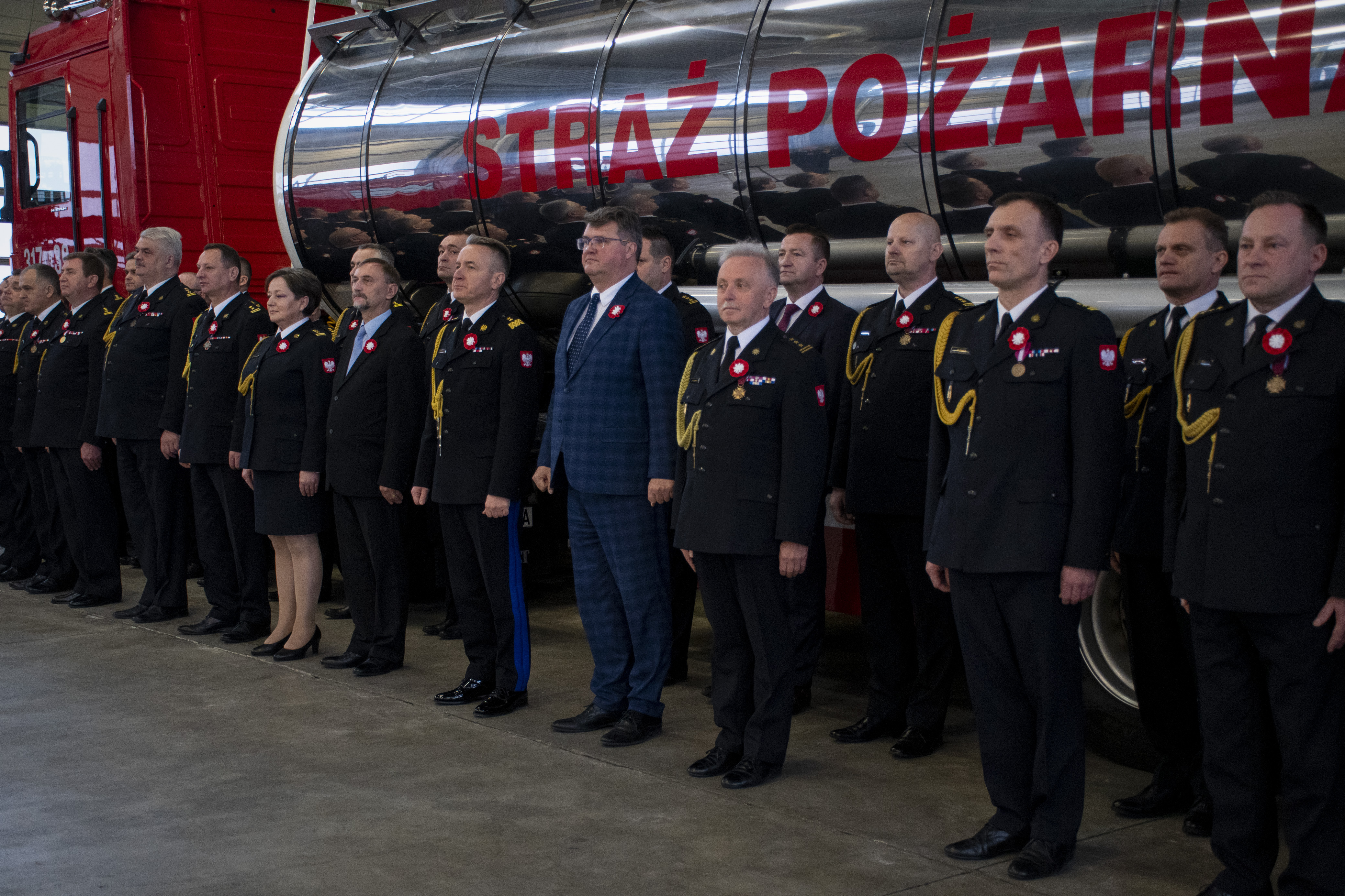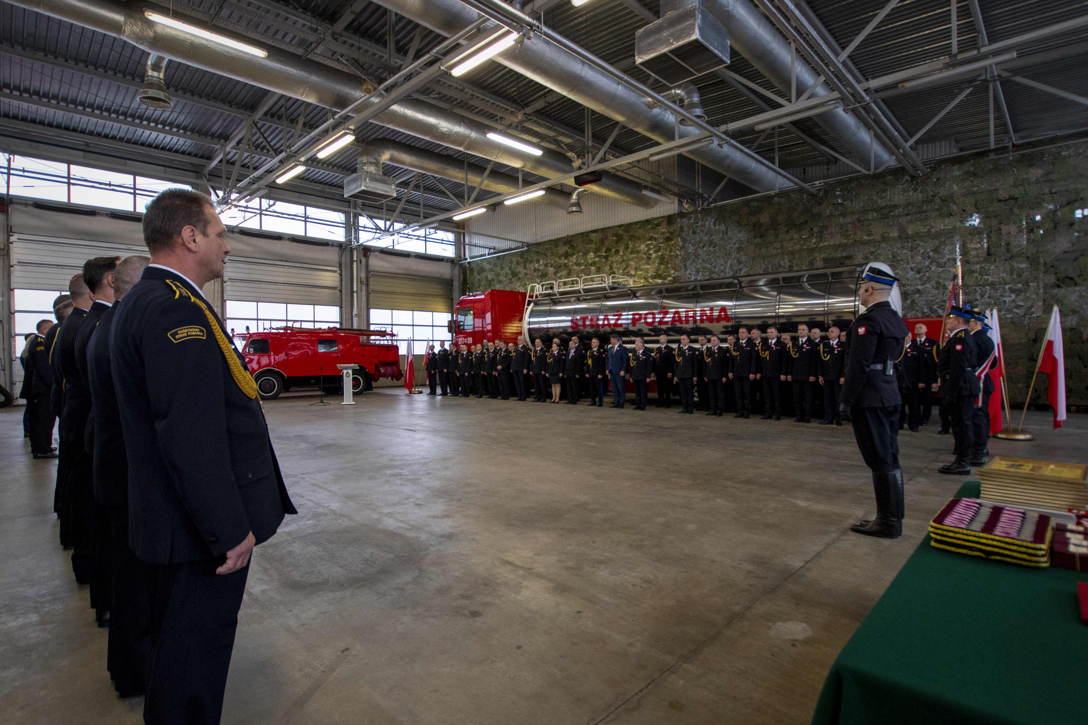 Podczas uroczystości Pan Maciej Wąsik Sekretarz Stanu w MSWiA, gen. brygadier Andrzej Bartkowiak Komendant Główny PSP oraz st. bryg. Jarosław Piotrowski Mazowiecki Komendant Wojewódzki PSP wręczyli ponad 140 funkcjonariuszom i pracownikom cywilnym jednostek organizacyjnych PSP województwa mazowieckiego odznaczenia państwowe oraz awanse na wyższe stopnie służbowe. Wyróżnieni funkcjonariusze otrzymali także Dyplomy Komendanta Głównego PSP.