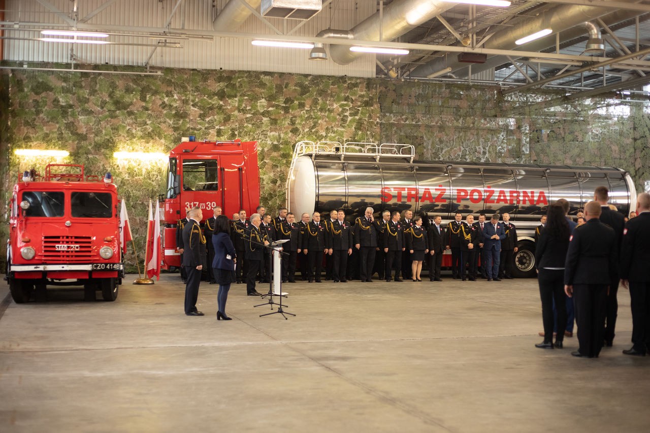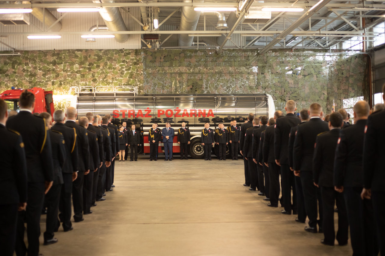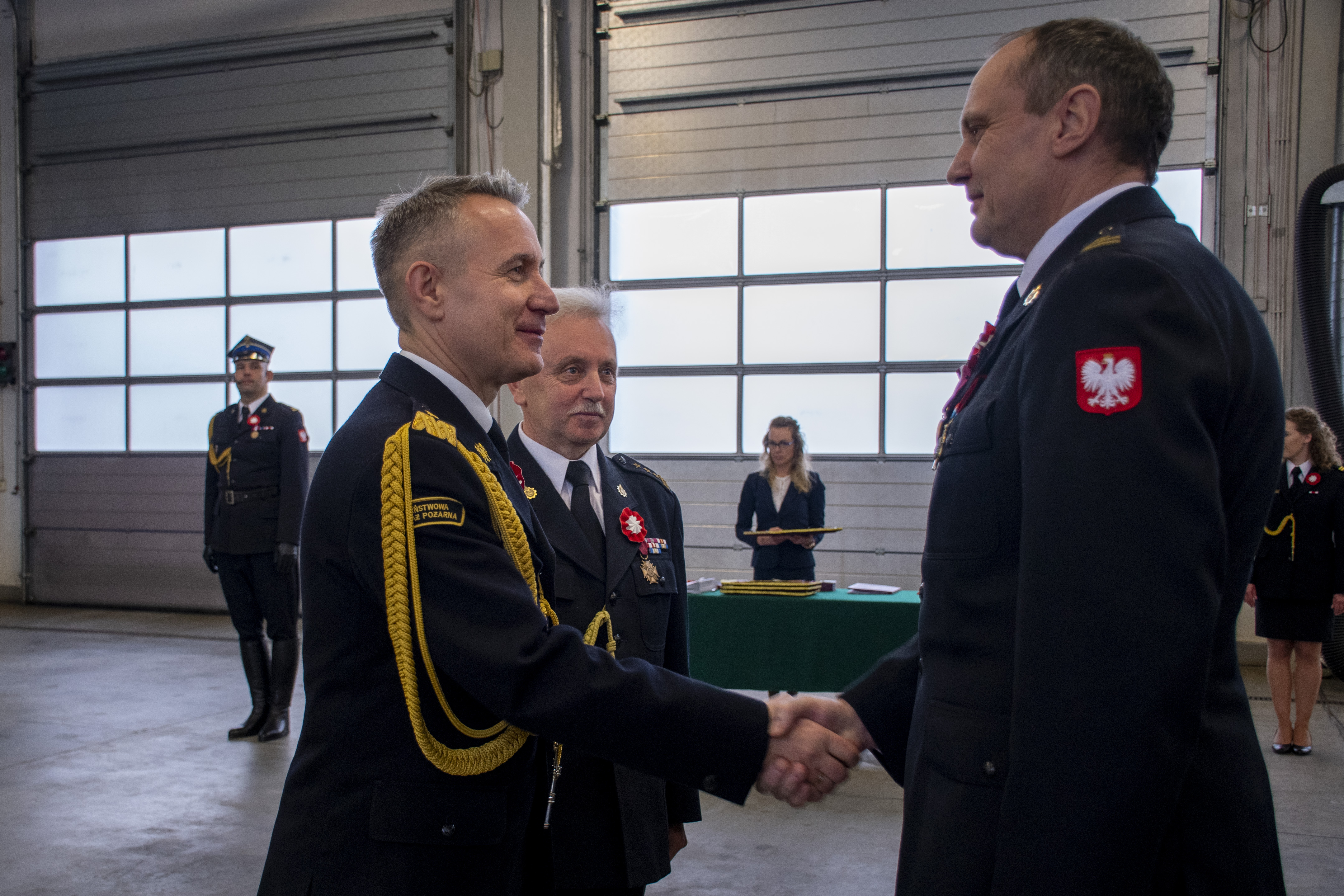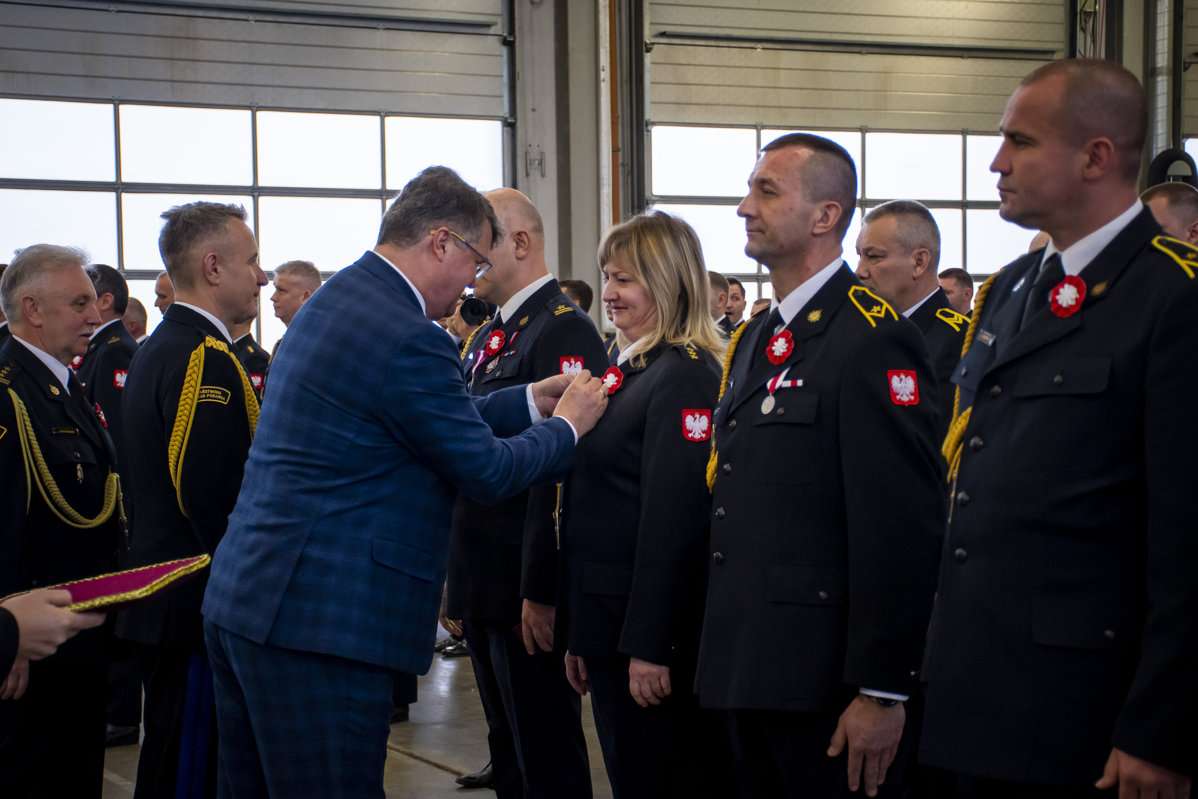 Podczas uroczystości Pan Maciej Wąsik Sekretarz Stanu w MSWiA, gen. brygadier Andrzej Bartkowiak Komendant Główny PSP oraz st. bryg. Jarosław Piotrowski Mazowiecki Komendant Wojewódzki PSP wręczyli ponad 140 funkcjonariuszom i pracownikom cywilnym jednostek organizacyjnych PSP województwa mazowieckiego odznaczenia państwowe oraz awanse na wyższe stopnie służbowe. Wyróżnieni funkcjonariusze otrzymali także Dyplomy Komendanta Głównego PSP.
