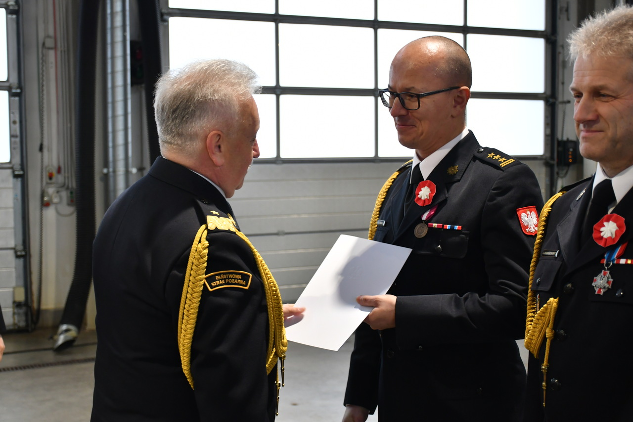 Rozpoczynając uroczystość, Mazowiecki Komendant Wojewódzki PSP nadbryg. Jarosław Piotrowski zwrócił się do zgromadzonych strażaków i pracowników cywilnych jednostek organizacyjnych PSP i podziękował za codzienną służbę. Nawiązując do Narodowego Święta Niepodległości powiedział, że w tym roku obchodzimy 105. rocznicę odzyskania przez Polskę niepodległości. Oddajemy hołd bohaterom, wielkim przywódcom i wielu patriotom, dzięki którym możemy dziś żyć w suwerennym, demokratycznym i wolnym kraju.
