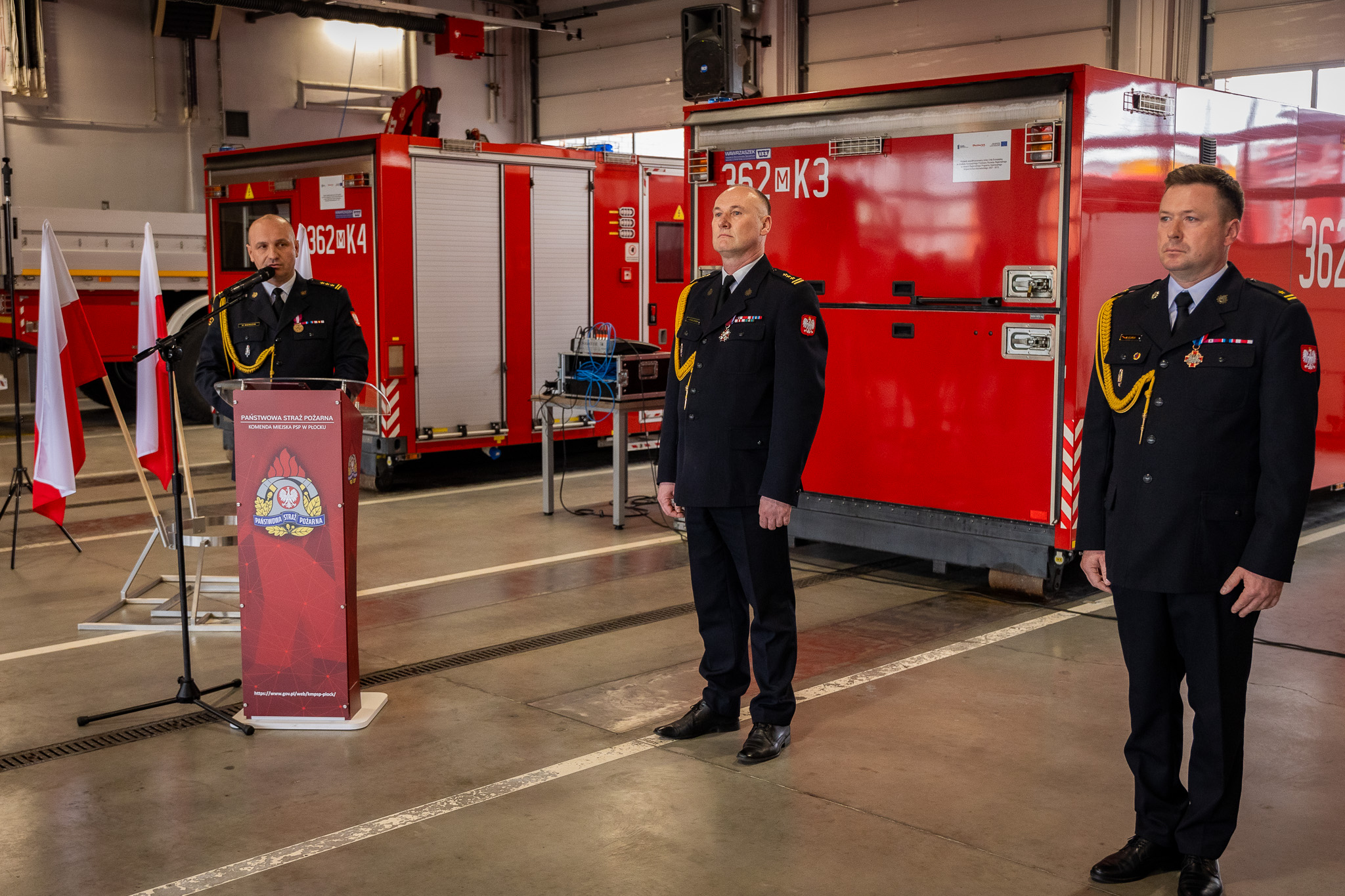 Przemawiający do zebranych Zastępca Mazowieckiego Komendanta Wojewódzkiego przedstawił przebieg służby powołanego na stanowisko Komendanta Miejskiego PSP w Płocku, podkreślając jego doświadczenie zawodowe, zdobyte podczas wieloletniej służby. Następnie Pan Komendant przedstawił przebieg służby otrzymującego powierzenie obowiązków na stanowisku Zastępcy Komendanta Miejskiego PSP w Płocku.