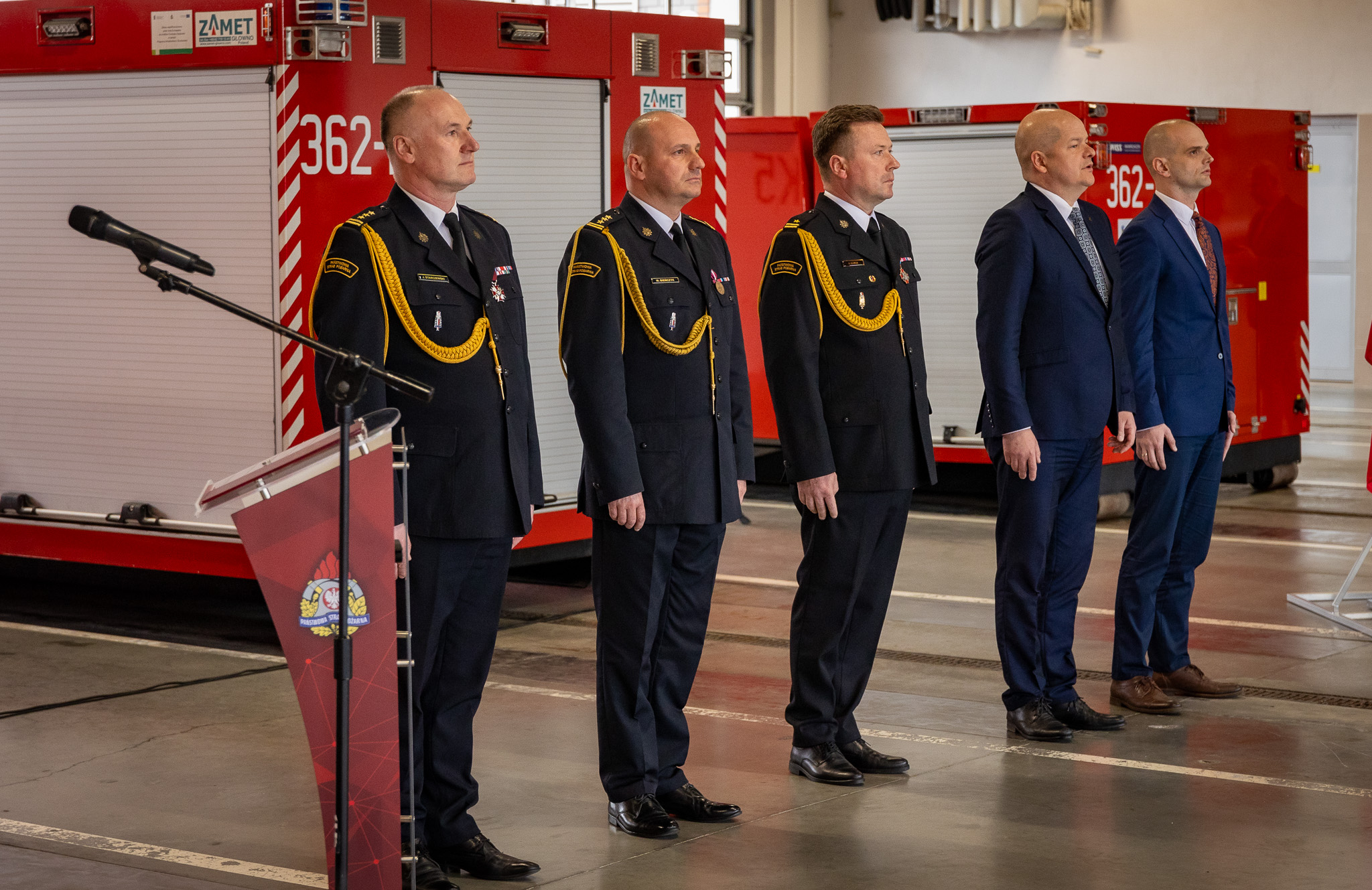 Po odczytaniu aktu powołania oraz decyzji st. bryg. Jacek Starczewski oraz mł. bryg. Albert Lejman złożyli meldunki o przyjęciu nowych obowiązków.