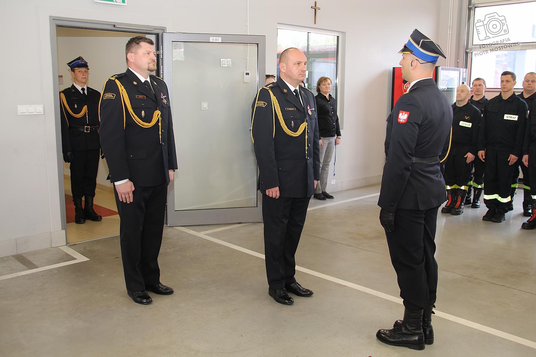 Uroczystość rozpoczęła się złożeniem meldunku przez dowódcę uroczystości mł. bryg. Marcina Szutkowskiego, który przyjął Zastępca Mazowieckiego Komendanta Wojewódzkiego PSP st. bryg. Maciej Bieńczyk. Następnie wprowadzony został sztandar oraz odegrano hymn państwowy.