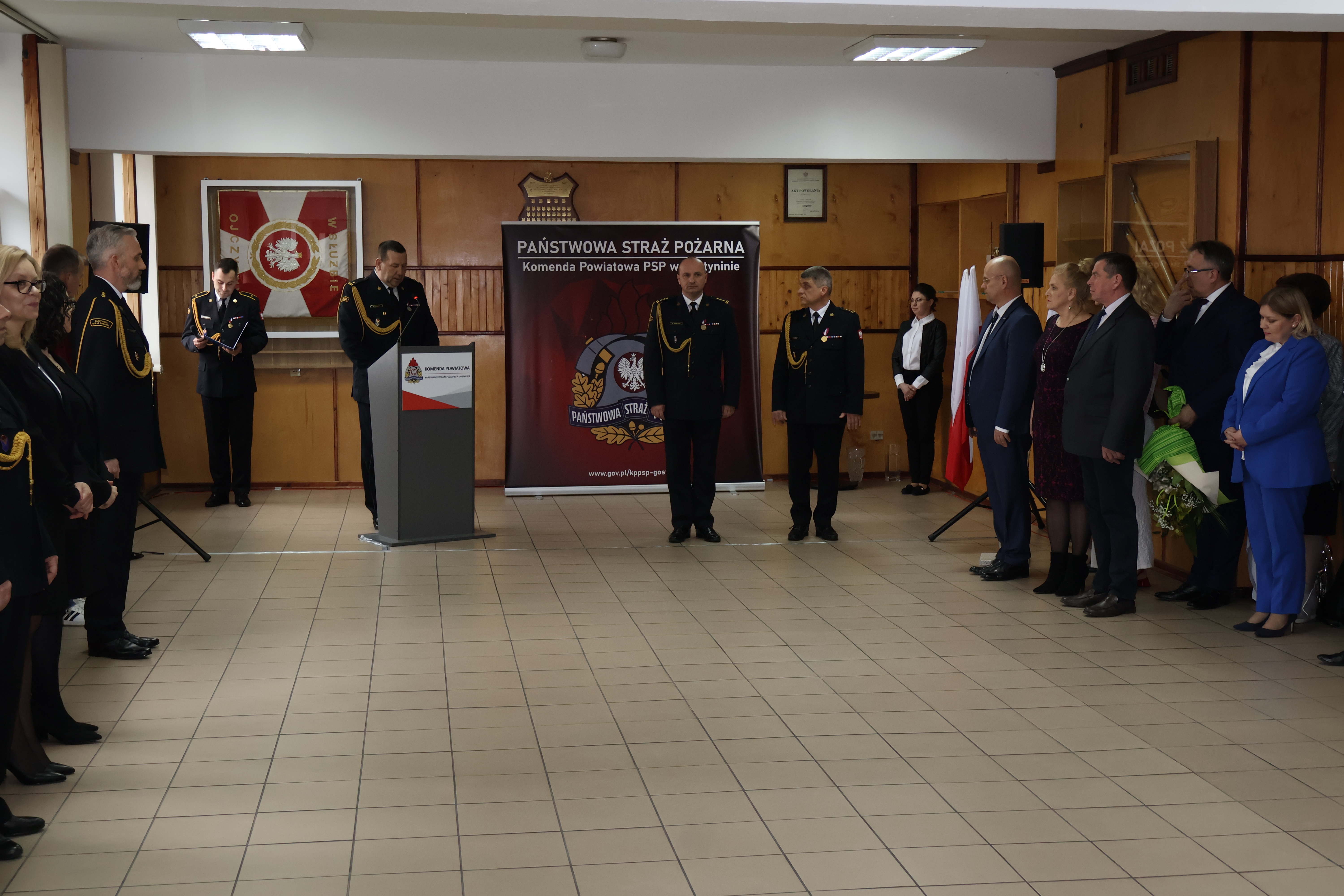 Zastępca Mazowieckiego Komendanta Wojewódzkiego przemawiając do zebranych przedstawił przebieg służby powołanego na stanowisko Komendanta Powiatowego PSP w Gostyninie oraz zdobyte doświadczenie zawodowe podczas dotychczasowej służby. Po odczytaniu aktu powołania na stanowisko Komendanta Powiatowego PSP st. bryg. Andrzej Ledzion złożył meldunek o przyjęciu obowiązków.