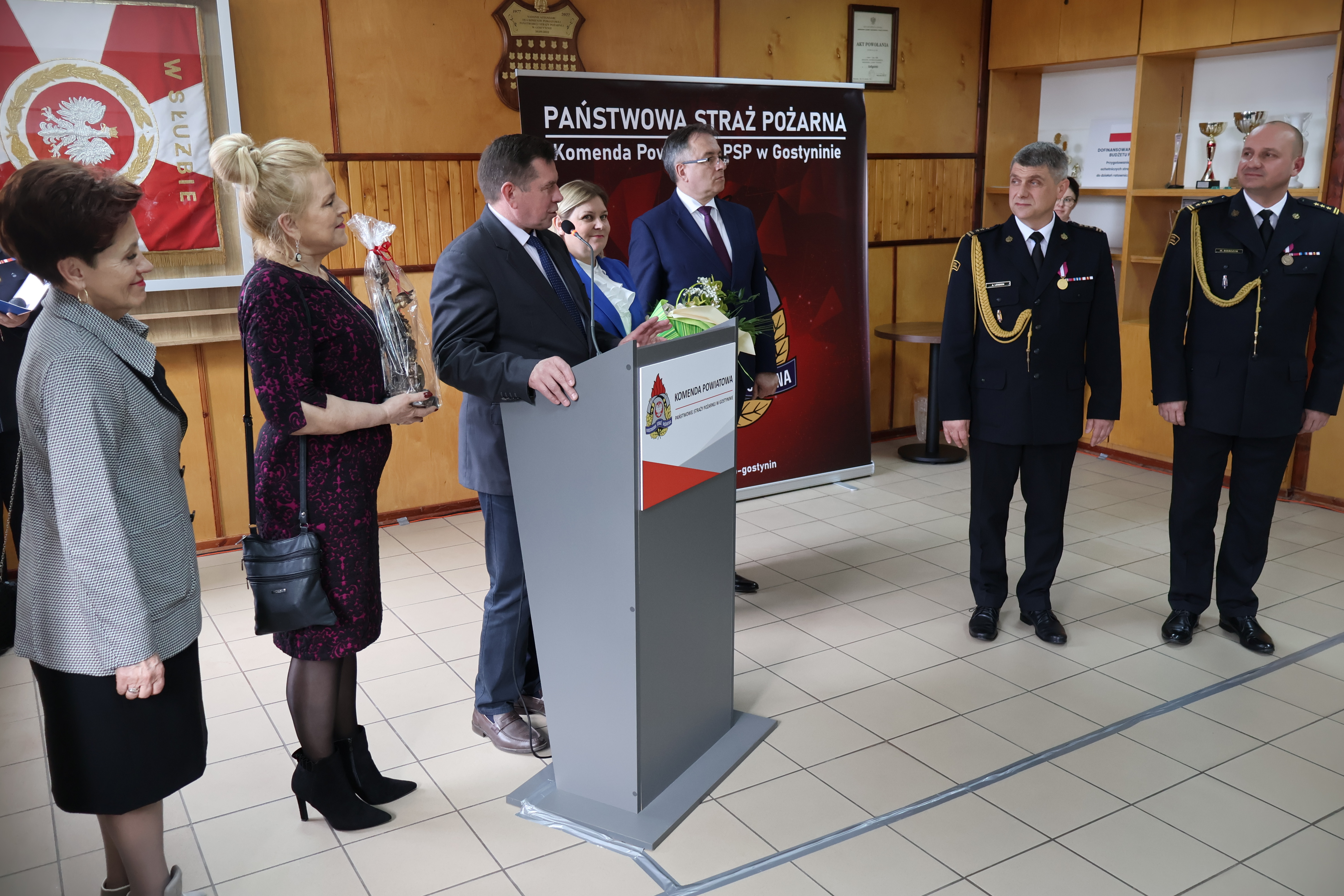 Zaproszeni goście – przedstawiciele samorządów, Komend Powiatowych Państwowej Straży Pożarnej, Policji, duchowieństwa, Nadleśnictwa w Gostyninie, Ochotniczych Straży Pożarnych oraz instytucji współpracujących z terenu powiatu gostynińskiego ciepłymi słowami gratulowali awansowanemu, życząc dalszych sukcesów.