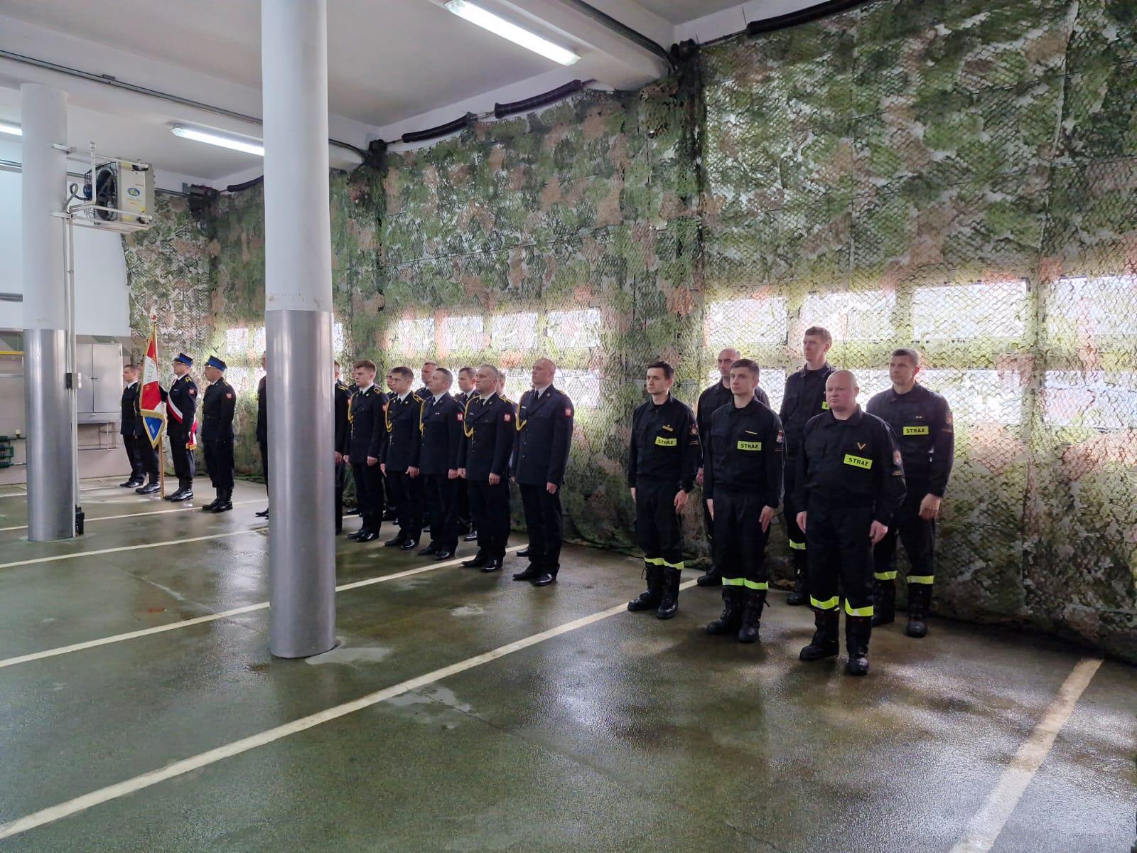 Uroczystość rozpoczęła się złożeniem meldunku przez dowódcę uroczystości kpt. Mateusza Żyłowskiego, który przyjął p.o. Zastępca Mazowieckiego Komendanta Wojewódzkiego PSP bryg. Waldemar Wysowski. Następnie wprowadzony został sztandar oraz odegrano hymn państwowy.