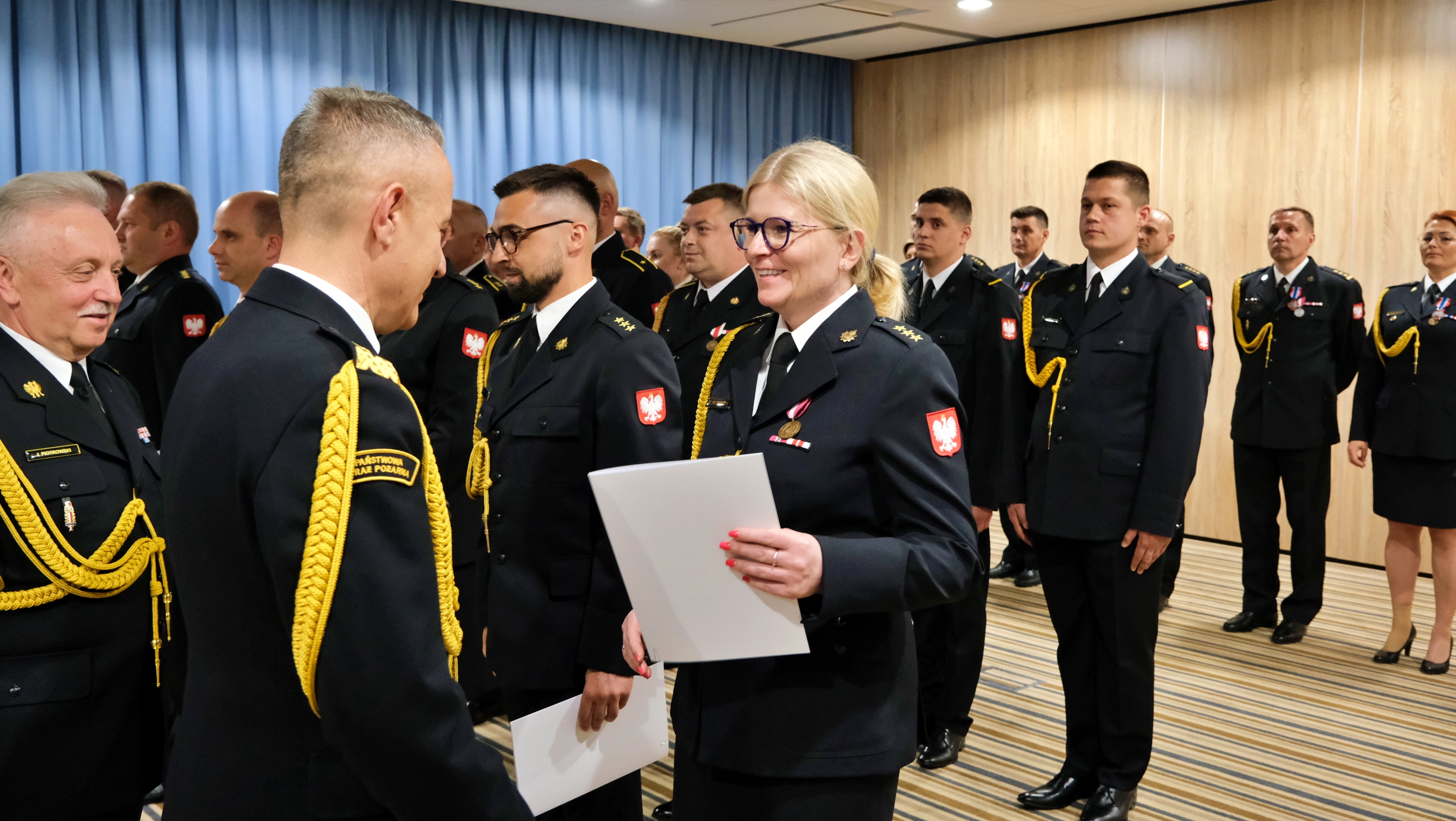 Uroczysta zbiórka z okazji wręczenia odznaczeń, awansów i wyróżnień w Komendzie Wojewódzkiej Państwowej Straży Pożarnej w Warszawie