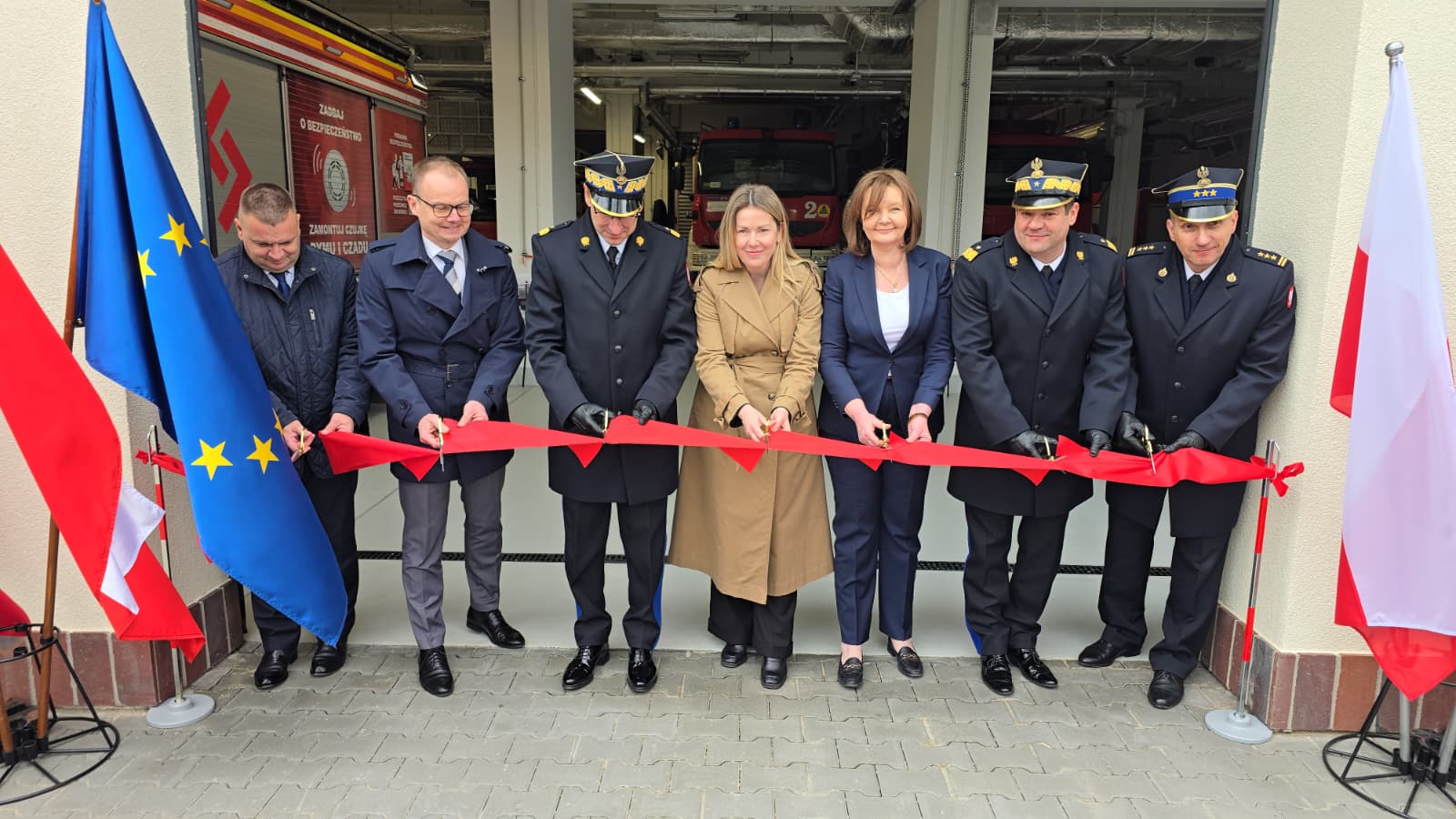 Wspólnego przecięcia wstęgi symbilizującego otwarcie jednostki dokonali przedstawiciele władz państwowych, samorządowych oraz kierownictwa PSP: