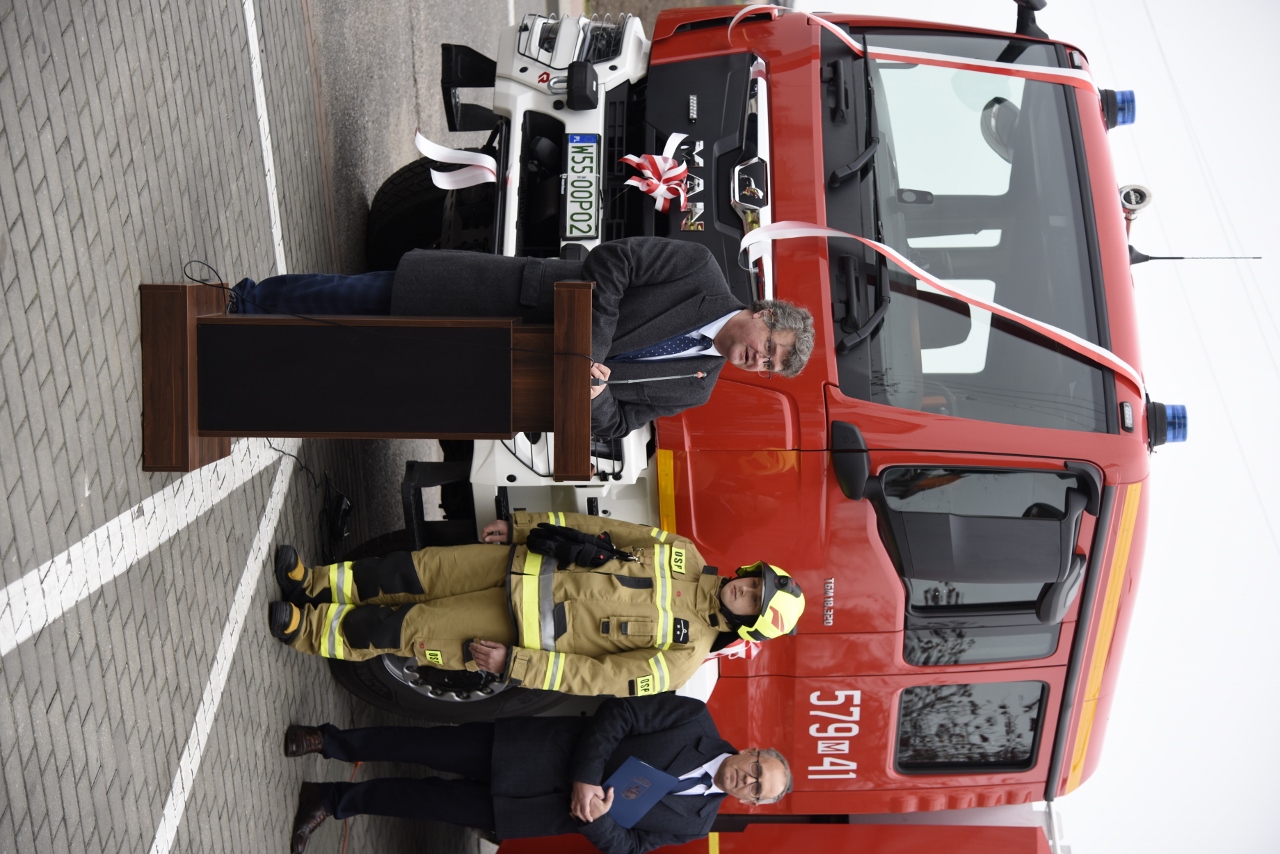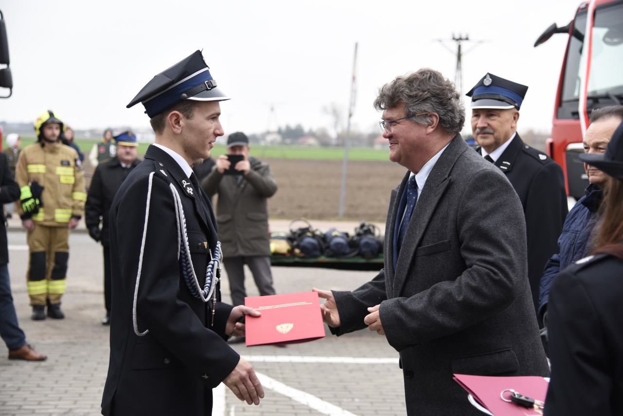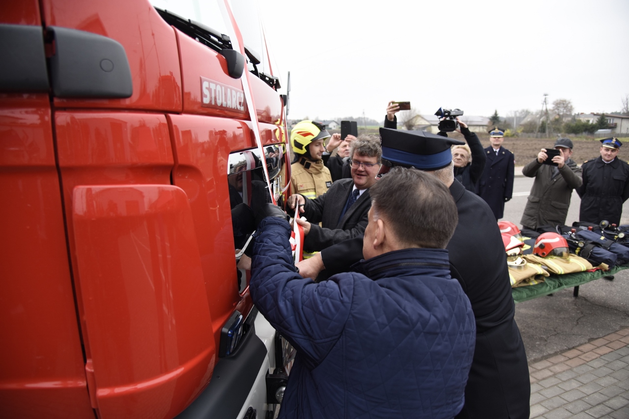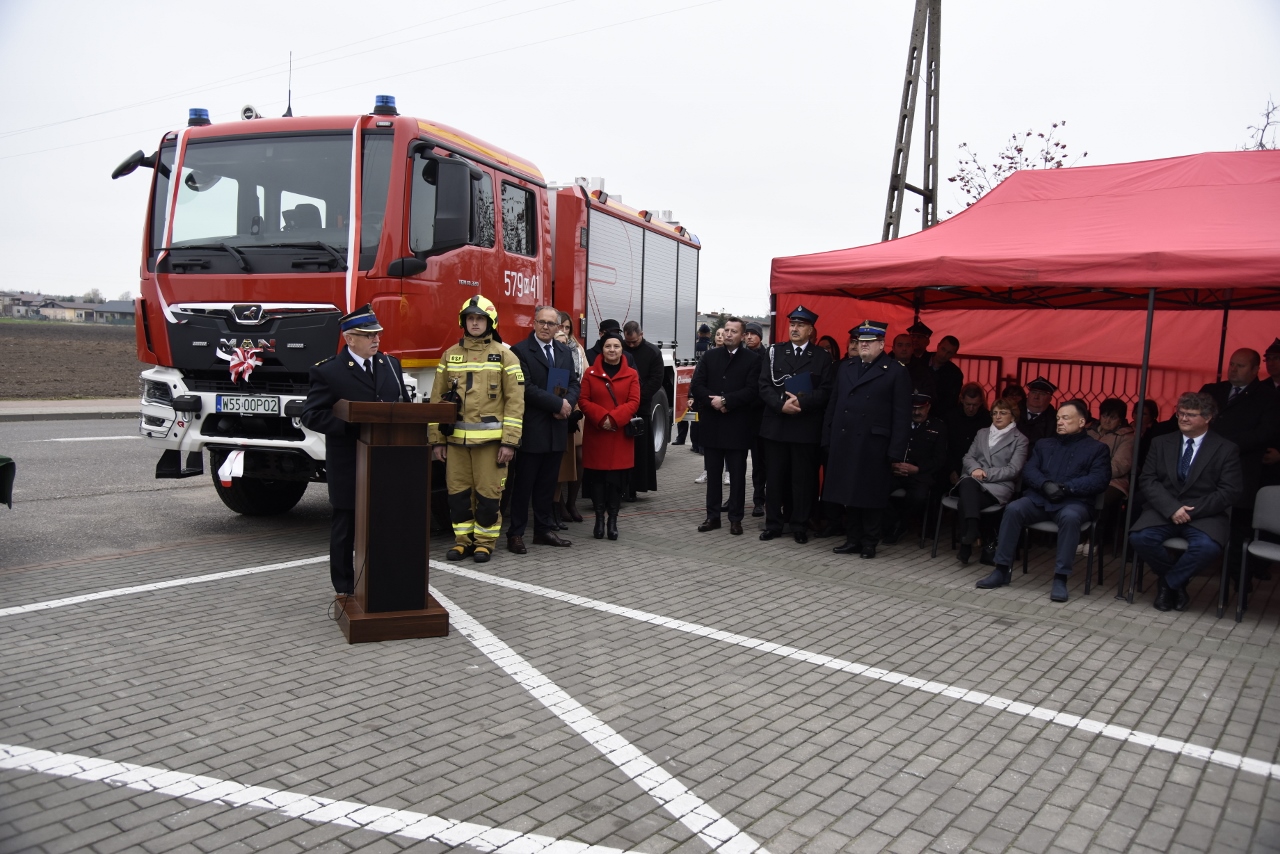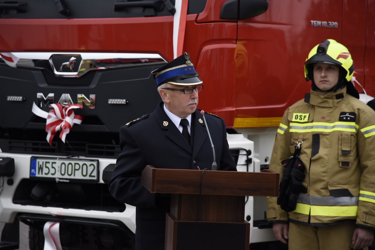 Uroczyste przekazanie ciężkich samochodów ratowniczo-gaśniczych dla jednostek OSP w powiecie płońskim