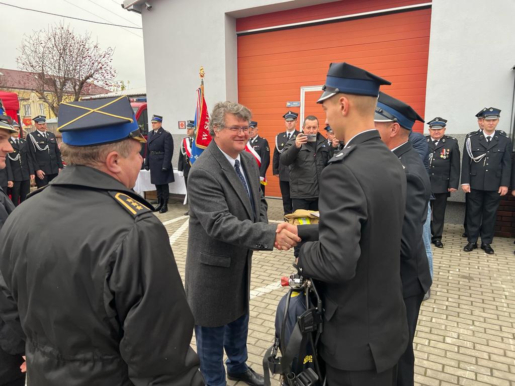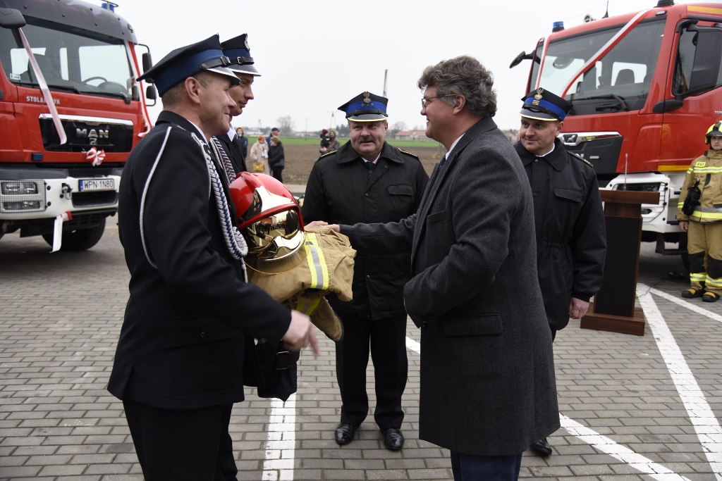 W trosce o bezpieczeństwo strażaków ochotników podczas działań ratowniczo-gaśniczych Pan Minister Maciej Wąsik przekazał dodatkowo cztery komplety ubrań specjalnych wraz z hełmami oraz cztery aparaty ochrony układu oddechowego dla jednostki OSP Jeżewo Wesel (gmina Raciąż).