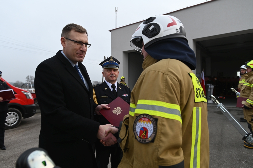 W uroczystości udział wzięli, m.in.: Pan Maciej Małecki - Sekretarz Stanu w Ministerstwie Aktywów Państwowych, st. bryg. Jarosław Piotrowski - Mazowiecki Komendant Wojewódzki Państwowej Straży Pożarnej oraz przedstawiciele władz samorządowych i duchowieństwa.