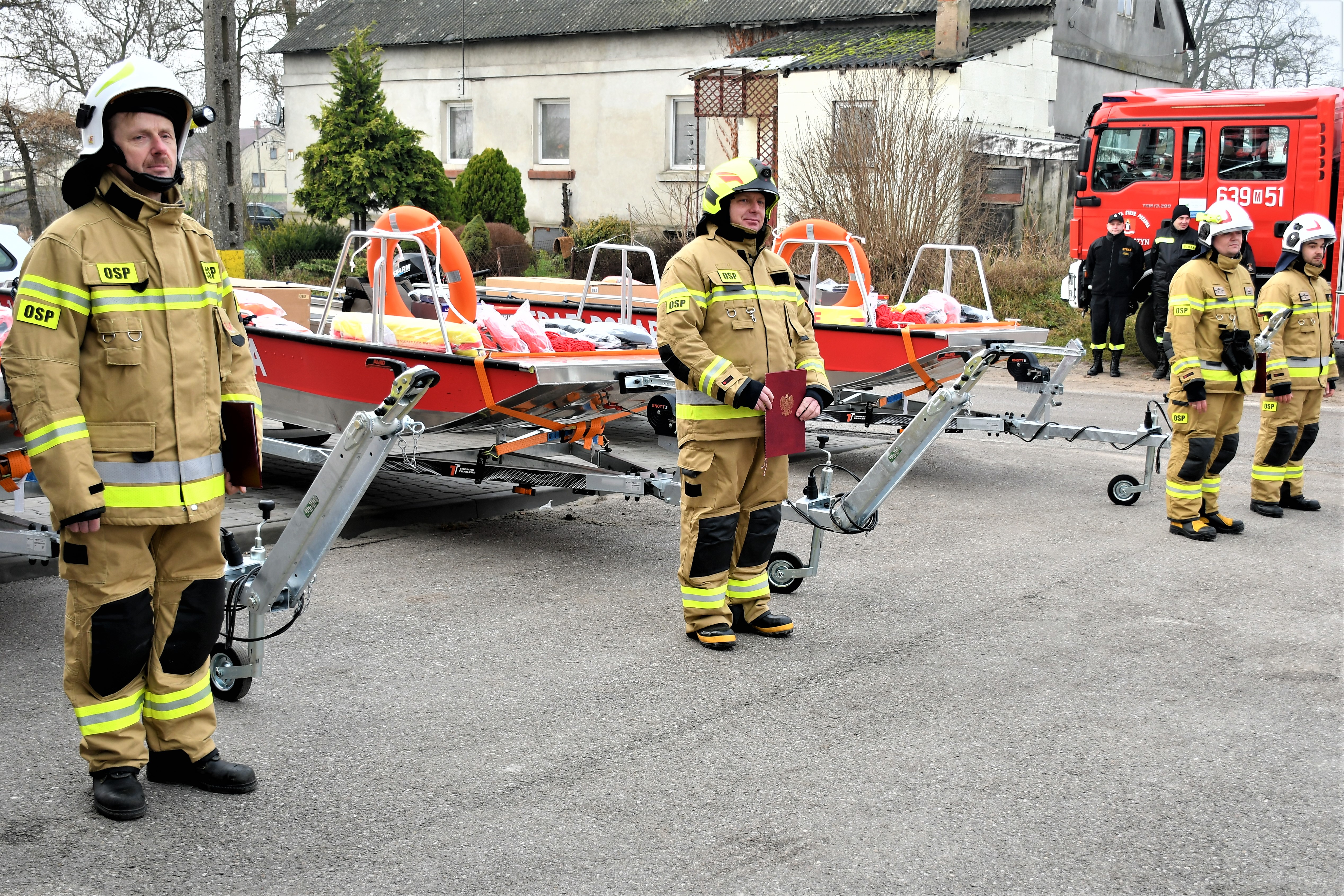 Uroczyste przekazanie łodzi ratowniczych w powiecie sochaczewskim