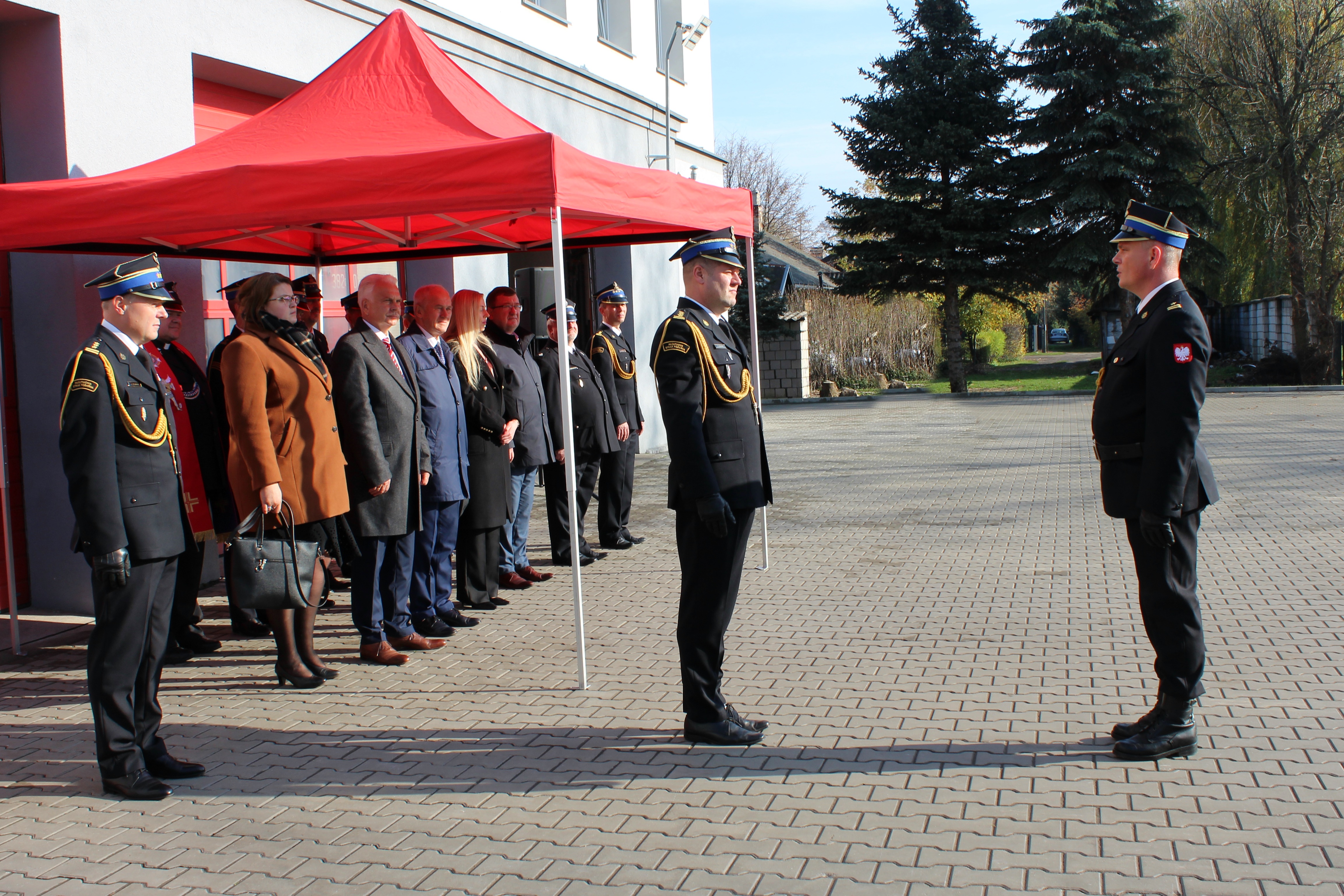 Uroczystość rozpoczęła się złożeniem meldunku Zastępcy Mazowieckiego Komendanta Wojewódzkiego PSP st. bryg. Arturowi Gonerze, a następnie, zgodnie z obowiązującym ceremoniałem pożarniczym, został wprowadzony poczet sztandarowy oraz odegrano hymn państwowy.
