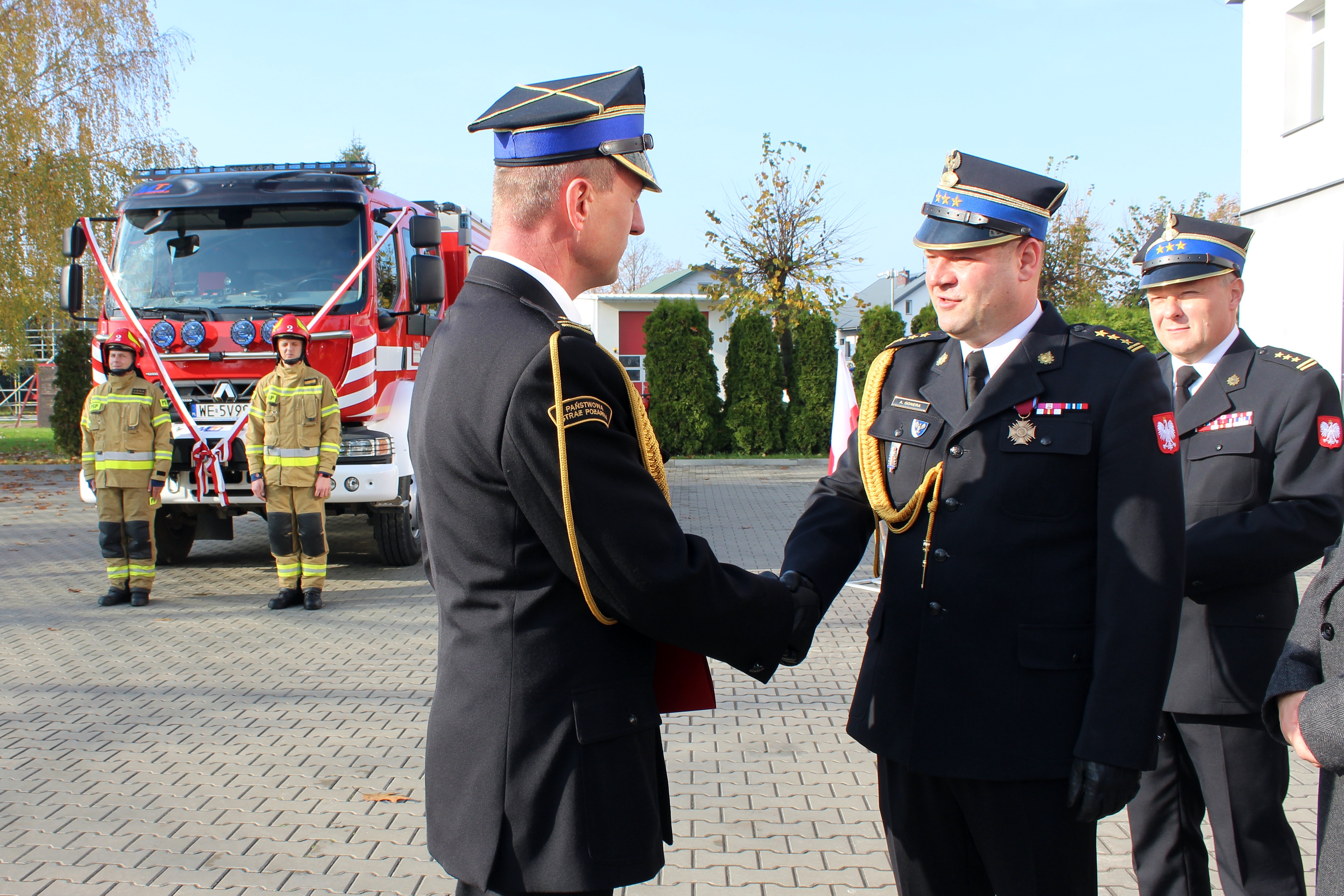 Uroczystego wręczenia aktu przekazania samochodu dokonali Krzysztof Tchórzewski - Poseł na Sejm RP, Waldemar Kraska - Senator RP, starszy brygadier Artur Gonera - Zastępca Mazowieckiego Komendanta Wojewódzkiego Państwowej Straży Pożarnej, a następnie został on poświęcony przez ks. Marka Chomiuka - Powiatowego Kapelana Strażaków.