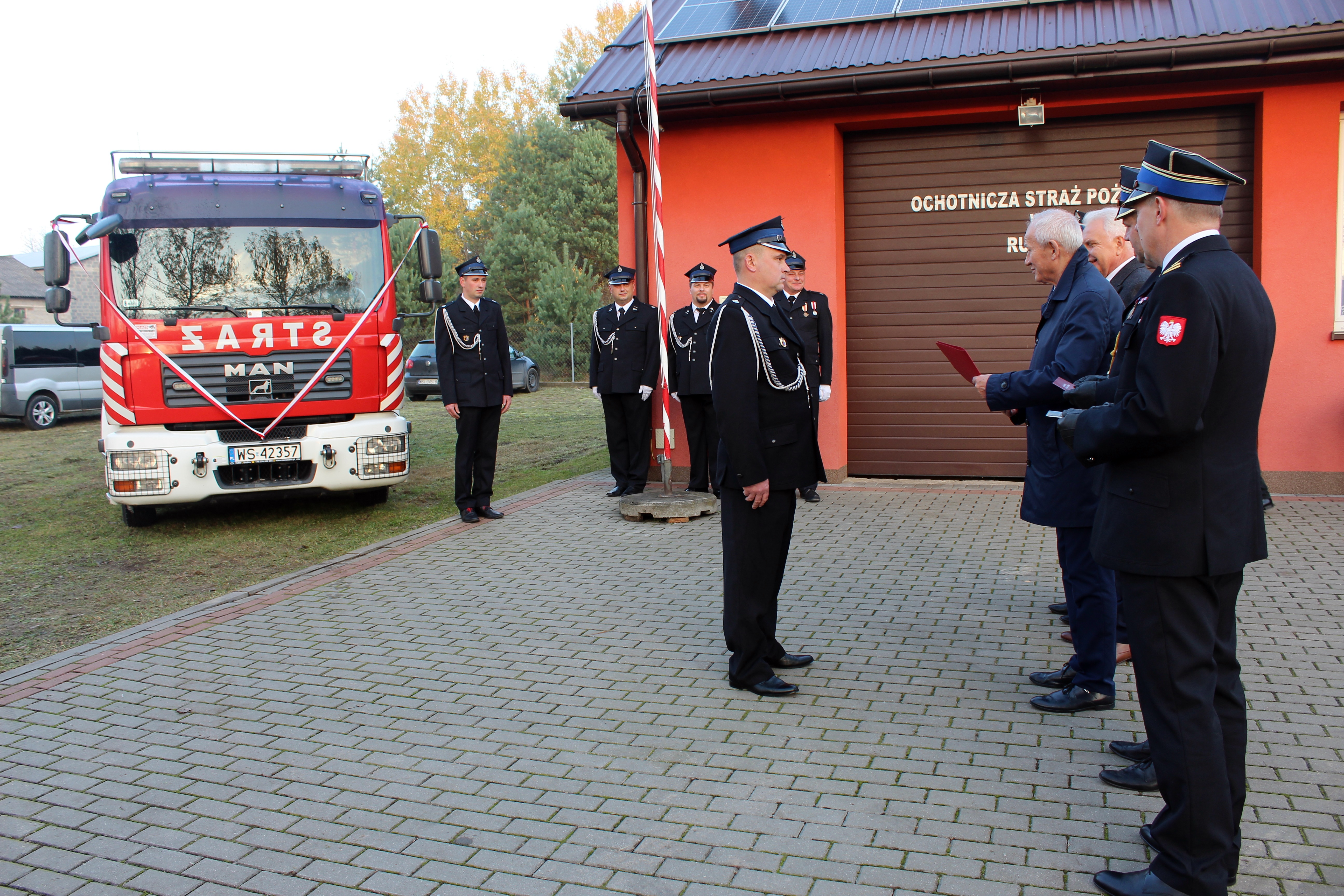 Po zakończonej uroczystości w Siedlcach, przed strażnicą w Rudzie Instytutowej (gm. Korczew) odbyła się uroczystość przekazania dotychczas użytkowanego przez JRG średniego samochodu ratowniczo-gaśniczego na podwoziu MAN dla jednostki Ochotniczej Straży Pożarnej w Rudzie Instytutowej.