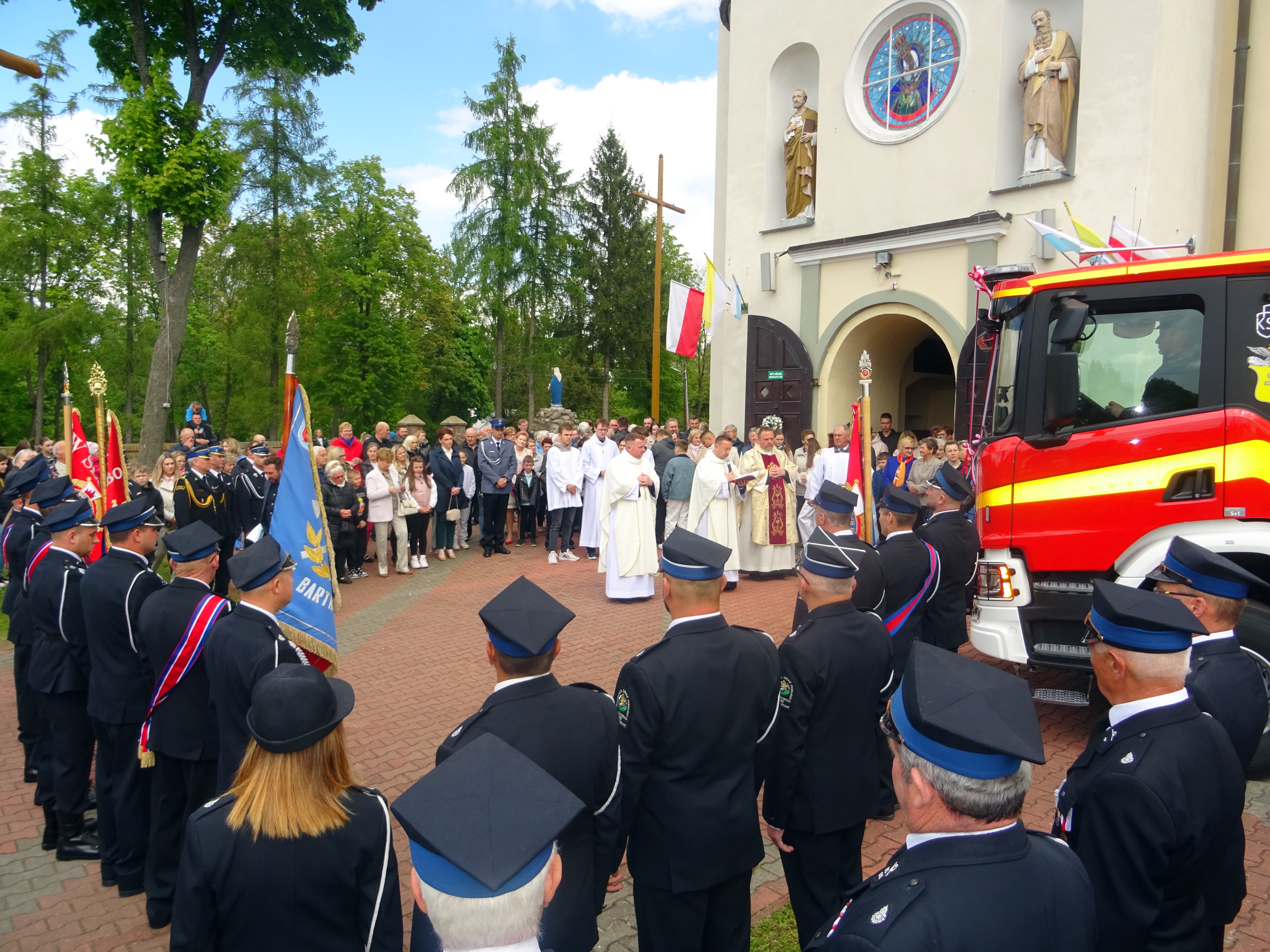 Uroczystość rozpoczęła msza święta w intencji strażaków i ich rodzin. Po zakończeniu nabożeństwa na placu przy budynku Urzędu Gminy odbył się uroczysty apel z okazji przekazania nowego pojazdu.