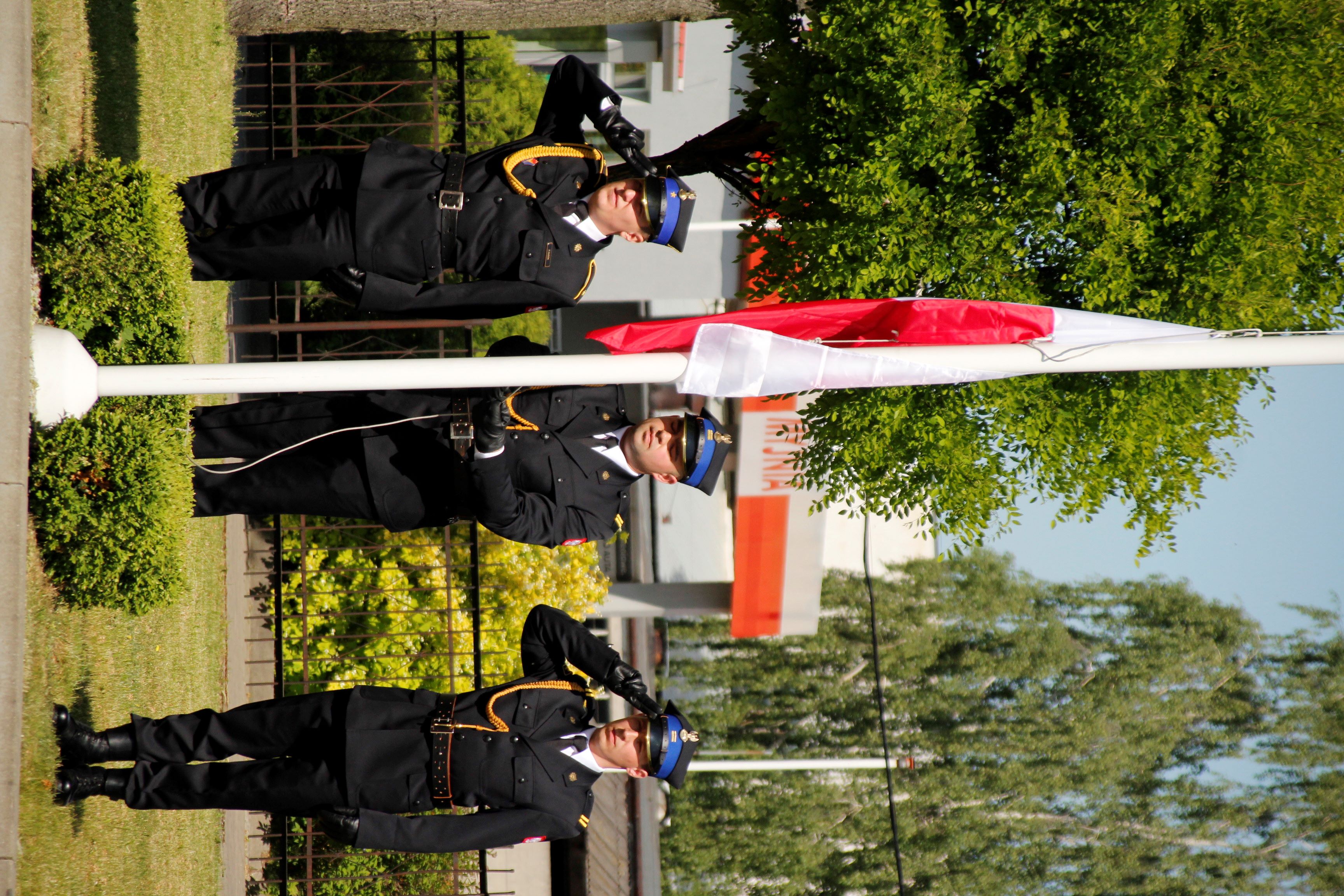 Uroczystość rozpoczęła się od złożenia meldunku przez dowódcę uroczystości st. kpt. Huberta Lenarcika Mazowieckiemu Komendantowi Wojewódzkiemu PSP nadbryg. Jarosławowi Piotrowskiemu. Następnie w trakcie hymnu państwowego uroczyście podniesiono flagę państwową na maszt.