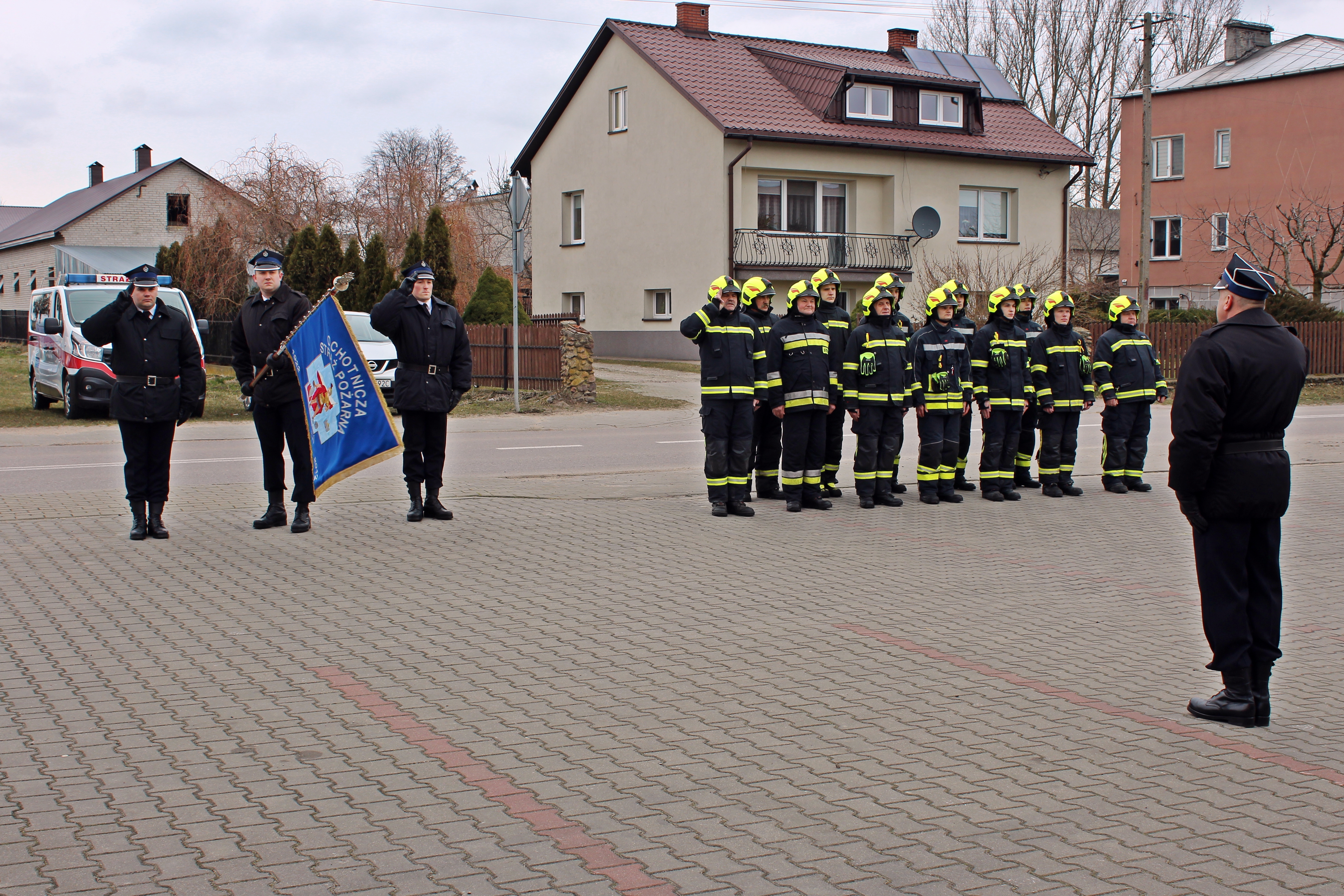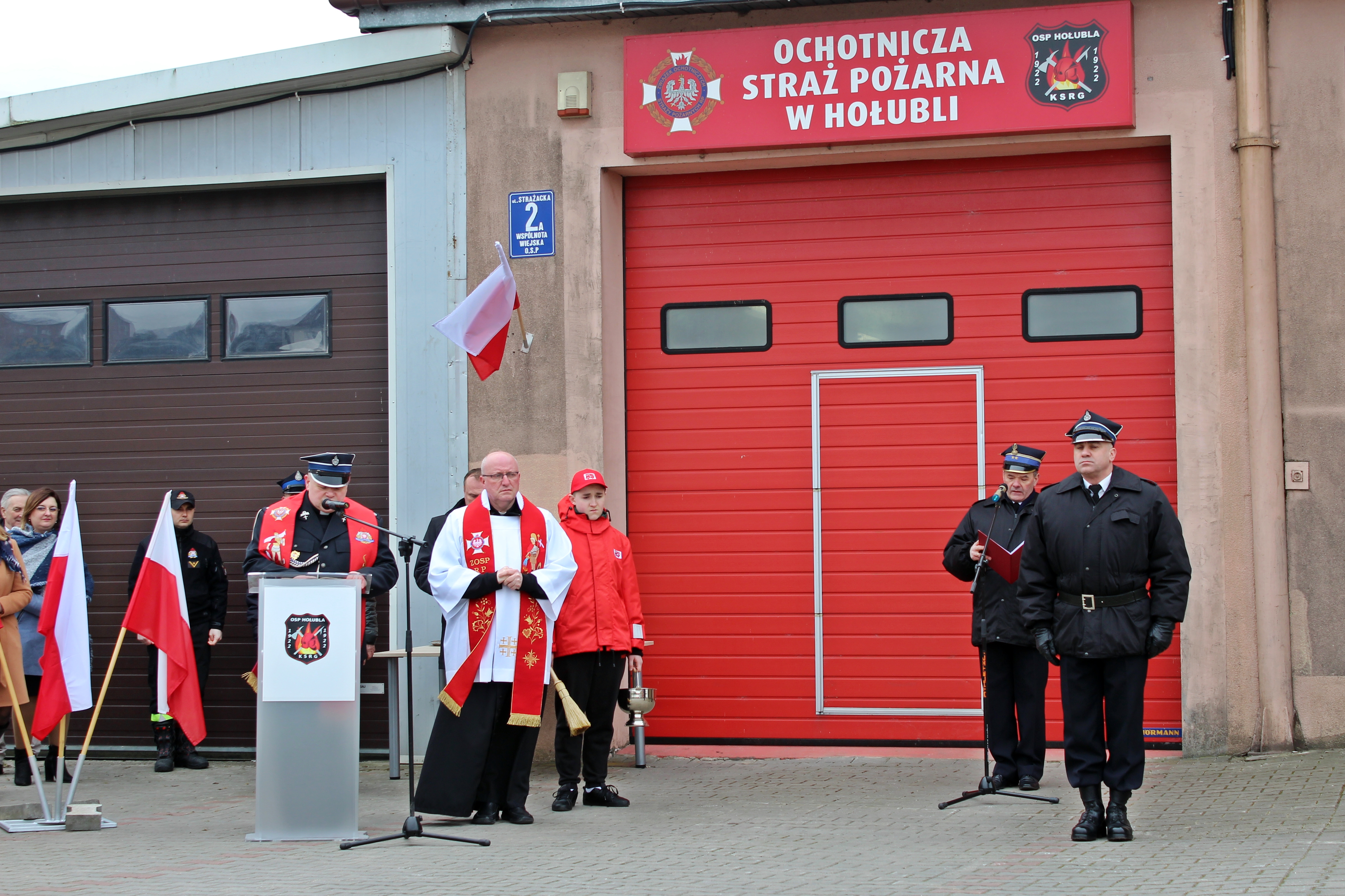 Uroczystość rozpoczęła się złożeniem meldunku st. bryg. Rafałowi Zimochockiemu - Zastępcy Mazowieckiego Komendanta Wojewódzkiego PSP. Następnie wprowadzono poczet sztandarowy jednostki Ochotniczej Straży Pożarnej w Hołubli oraz odegrano i odśpiewano hymn państwowy.
