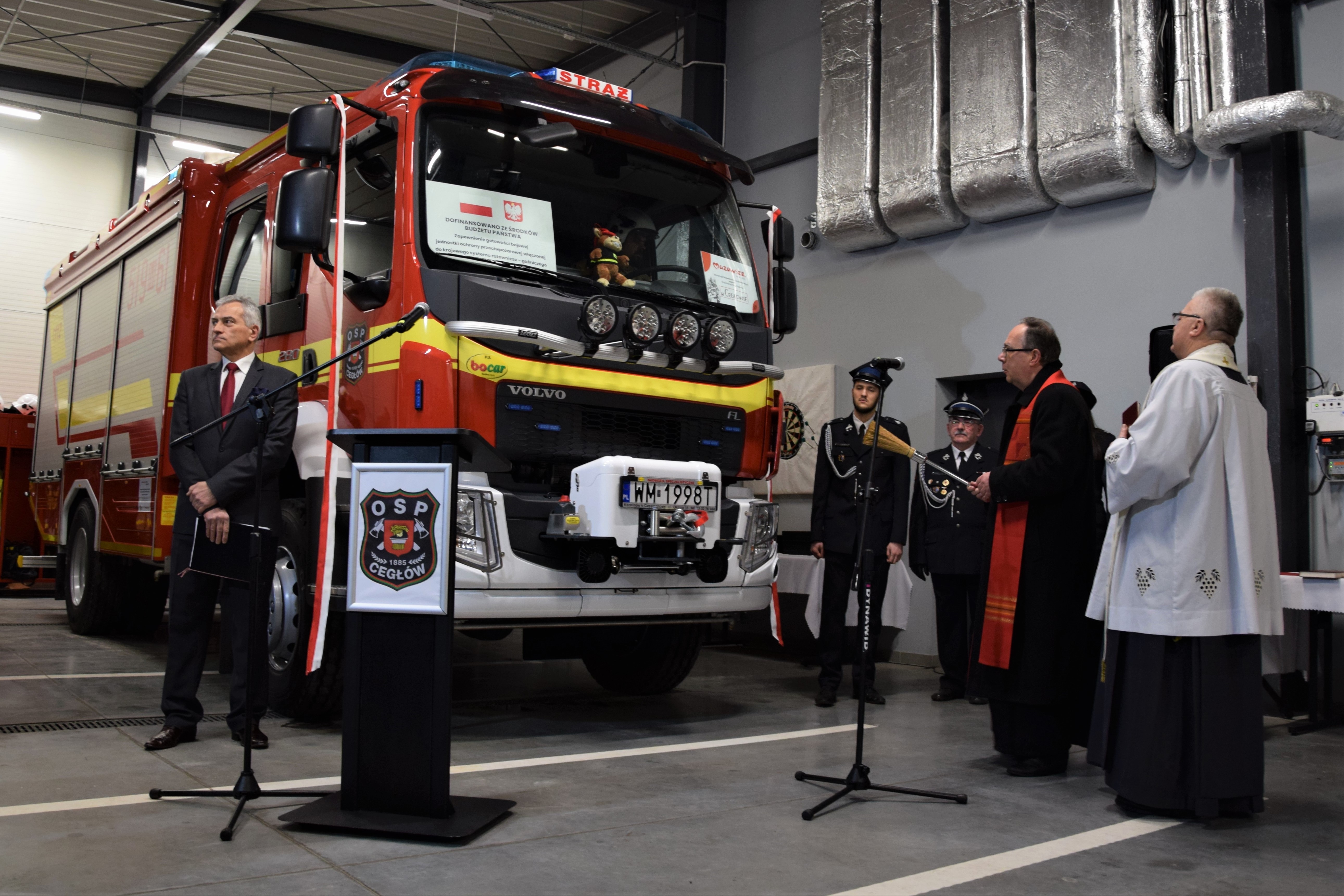 Uroczyste przekazanie średniego samochodu ratowniczo-gaśniczego dla jednostki OSP w Cegłowie (powiat miński)