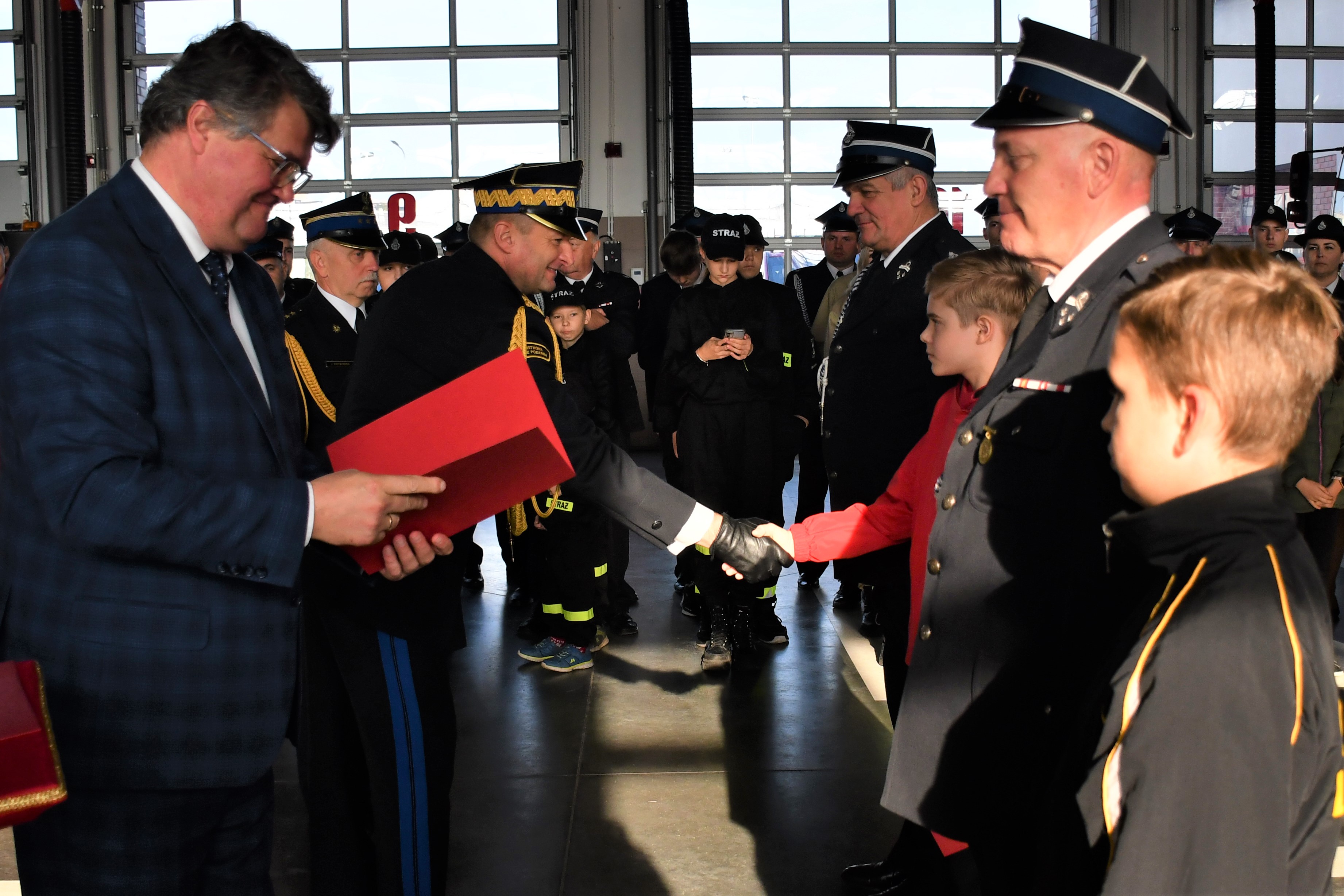 Uroczystego wręczenia dokonali: nadbryg. Adam Konieczny Zastępca Komendanta Głównego PSP oraz st. bryg. Jarosław Piotrowski p.o. Zastępca Mazowieckiego Komendanta Wojewódzkiego PSP.