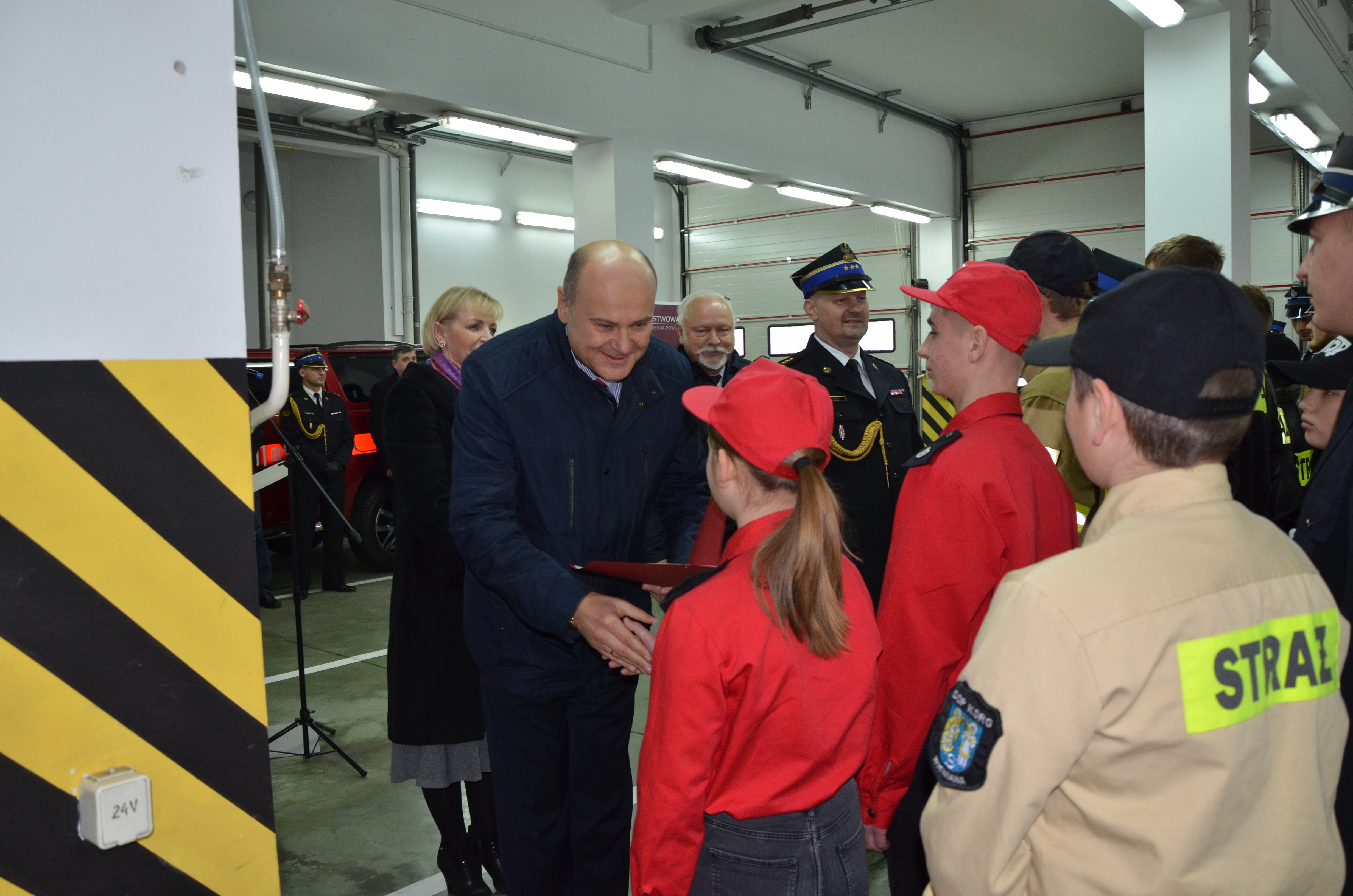 Pani Anna Kwiecień Poseł na Sejm RP, Pan Andrzej Kosztowniak Poseł na Sejm RP, Pan Dariusz Bąk Poseł na Sejm RP oraz st. bryg. Tomasz Cybul Zastępca Mazowieckiego Komendanta Wojewódzkiego PSP wręczyli 24 promesy.