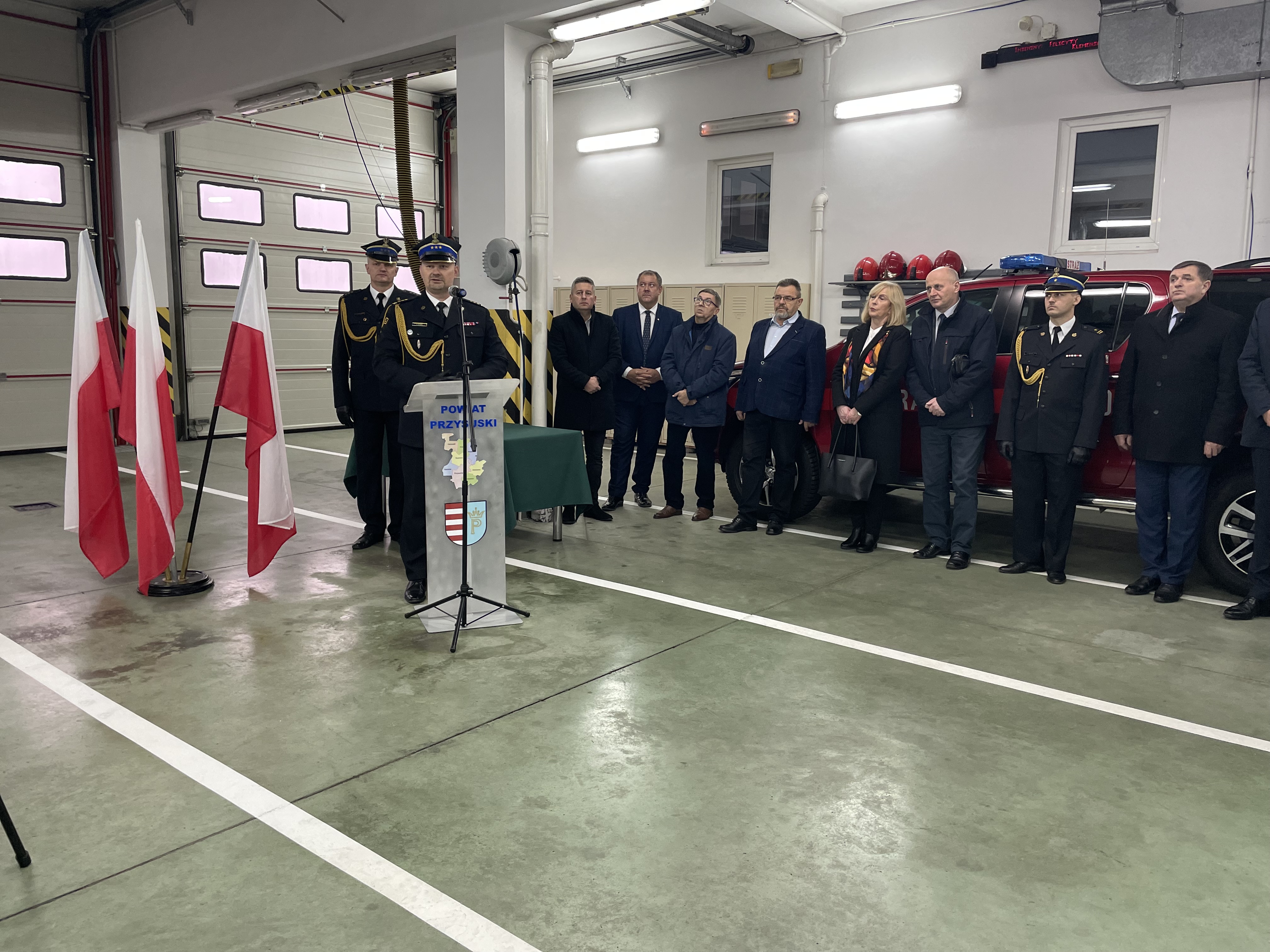 W uroczystości udział wzięli m.in.: Pani Anna Kwiecień - Poseł na Sejm RP, Pan Andrzej Kosztowniak - Poseł na Sejm RP, Pan Dariusz Bąk - Poseł na Sejm RP, st. bryg. Tomasz Cybul - Zastępca Mazowieckiego Komendanta Wojewódzkiego PSP, st. bryg. Marcin Sokół – Komendant Powiatowy PSP w Przysusze, mł. bryg. Marcin Błoński – Komendant Powiatowy PSP w Grójcu, dh Szymon Niemirski - Prezes Zarządu Oddziału Powiatowego Związku Ochotniczych Straży Pożarnych RP oraz przedstawiciele władz samorządowych z terenu powiatu przysuskiego.