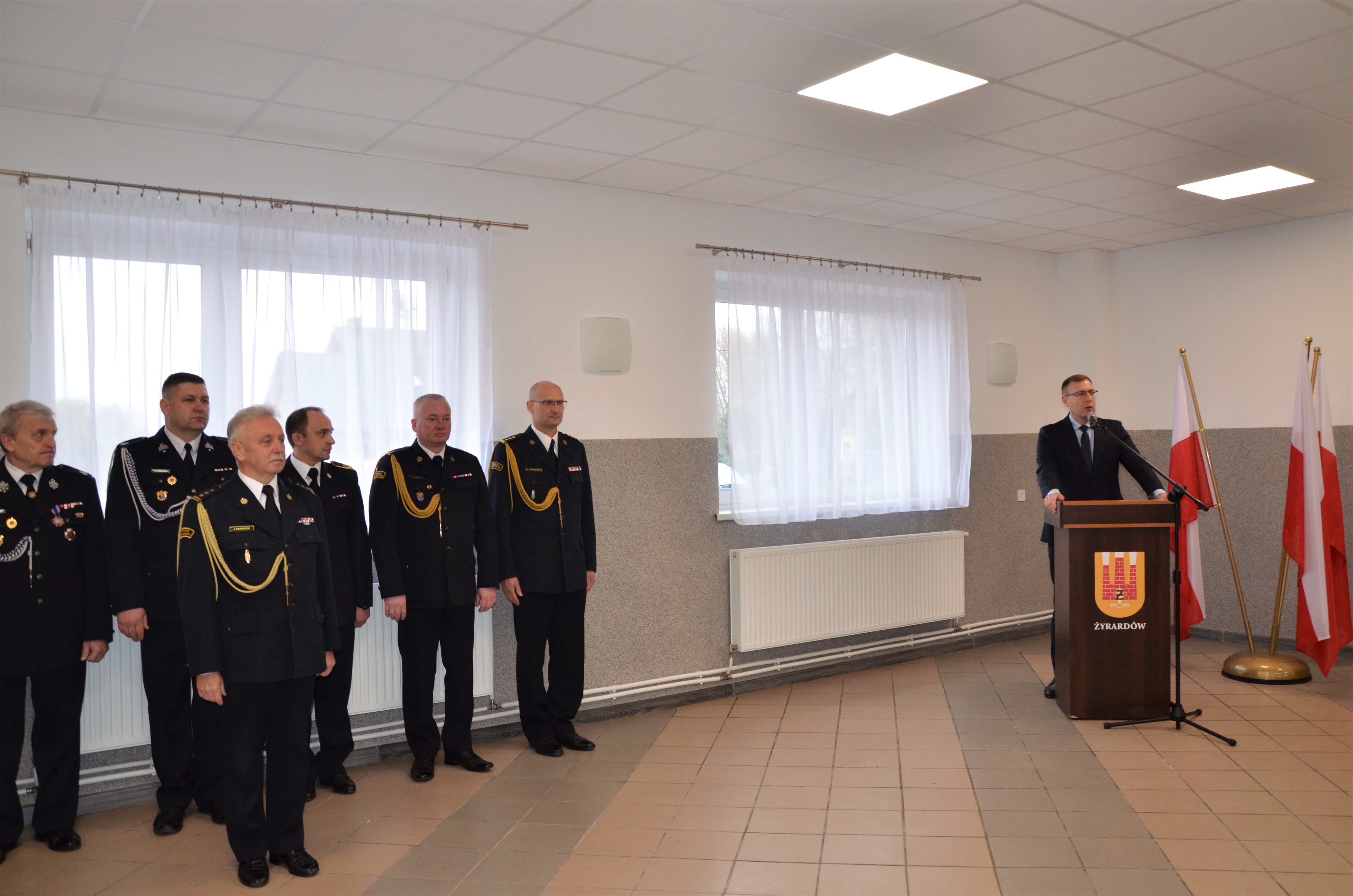 Uroczysta zbiórka rozpoczęła się złożeniem meldunku st. bryg. Jarosławowi Piotrowskiemu p.o. Mazowieckiemu Komendantowi Wojewódzkiemu PSP, następnie wprowadzony został poczet sztandarowy Komendy Powiatowej PSP w Żyrardowie oraz odegrany i odśpiewany hymn państwowy. Zebranych gości przywitał st. bryg. Mariusz Tymoszewicz Komendant Powiatowy PSP w Żyrardowie.