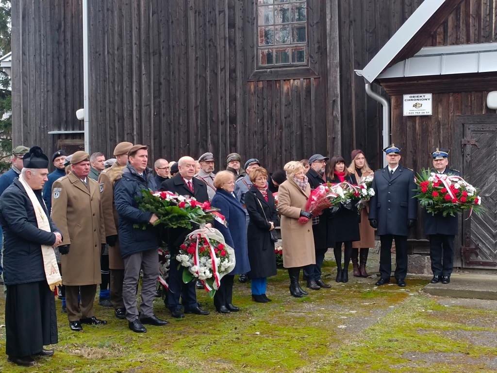 Po nabożeństwie przemaszerowano pod Pomnik, gdzie pomodlono się w intencji poległych „Żołnierzy Wyklętych” walczących o wolność i niepodległość Naszej Ojczyzny. Następnie złożono wieńce i zapalono znicze. Uroczystość obchodów Narodowego Dnia Żołnierzy Wyklętych nie mogła się odbyć bez okolicznych przemówień upamiętniających bohaterów, którzy zapłacili najwyższą cenę oddając życie, walcząc z wojskami komunistycznymi.