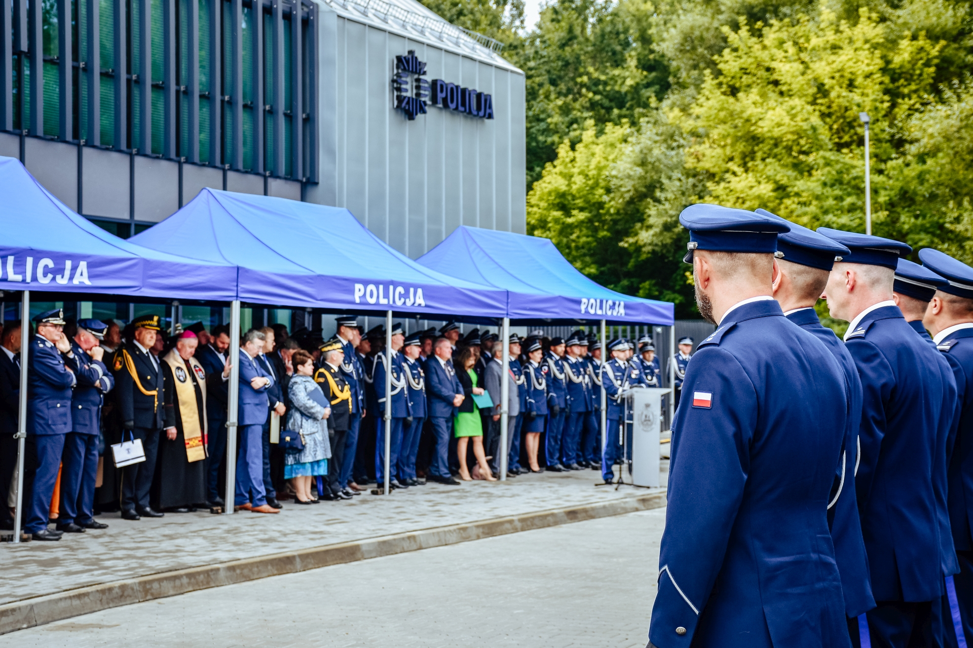 Na zakończenie uroczystości wszyscy zgromadzeni mogli obejrzeć defiladę w wykonaniu Kompanii Reprezentacyjnej Policji przy akompaniamencie Orkiestry Reprezentacyjnej Policji, która odegrała „Warszawiankę”.