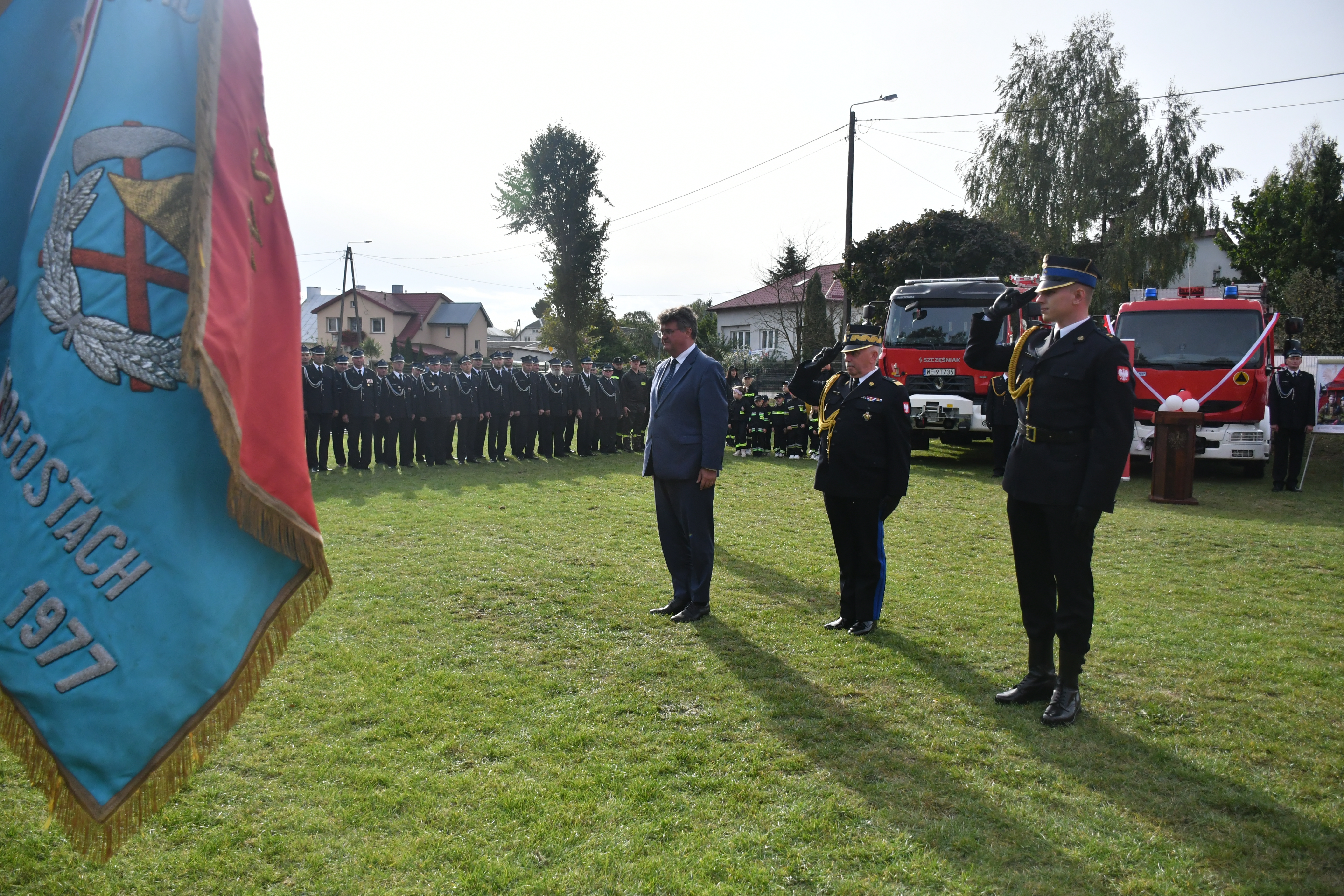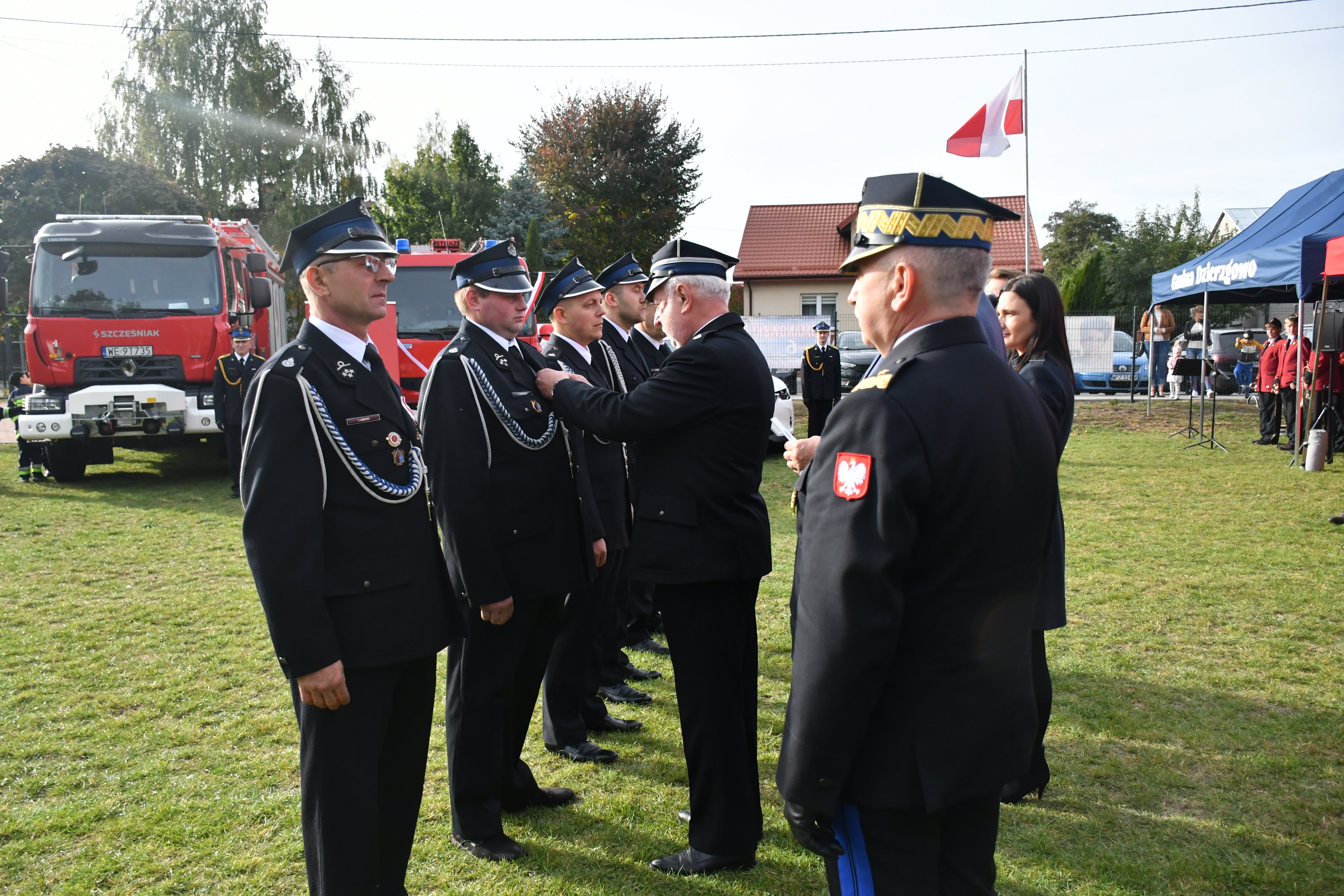 Po wręczeniu odznaczeń Minister Maciej Wąsik oraz nadbryg. Jarosław Piotrowski wraz z włodarzami gminy Dzierzgowo wręczyli akty przekazania i kluczyki do pojazdów pożarniczych. Średni samochód ratowniczo-gaśniczy Renault oraz samochód operacyjny Mazda CX5 trafiły do Komendy PSP w Mławie. Do tej pory użytkowany w mławskiej komendzie samochód ratowniczo-gaśniczy Renault Midlum został przekazany jednostce OSP w Dobrogostach. Nie zabrakło tradycyjnego poświęcenia przekazanego sprzętu przez proboszcza parafii pw. Najświętszej Maryi Panny w Dzierzgowie ks. Wiesława Szymańskiego.