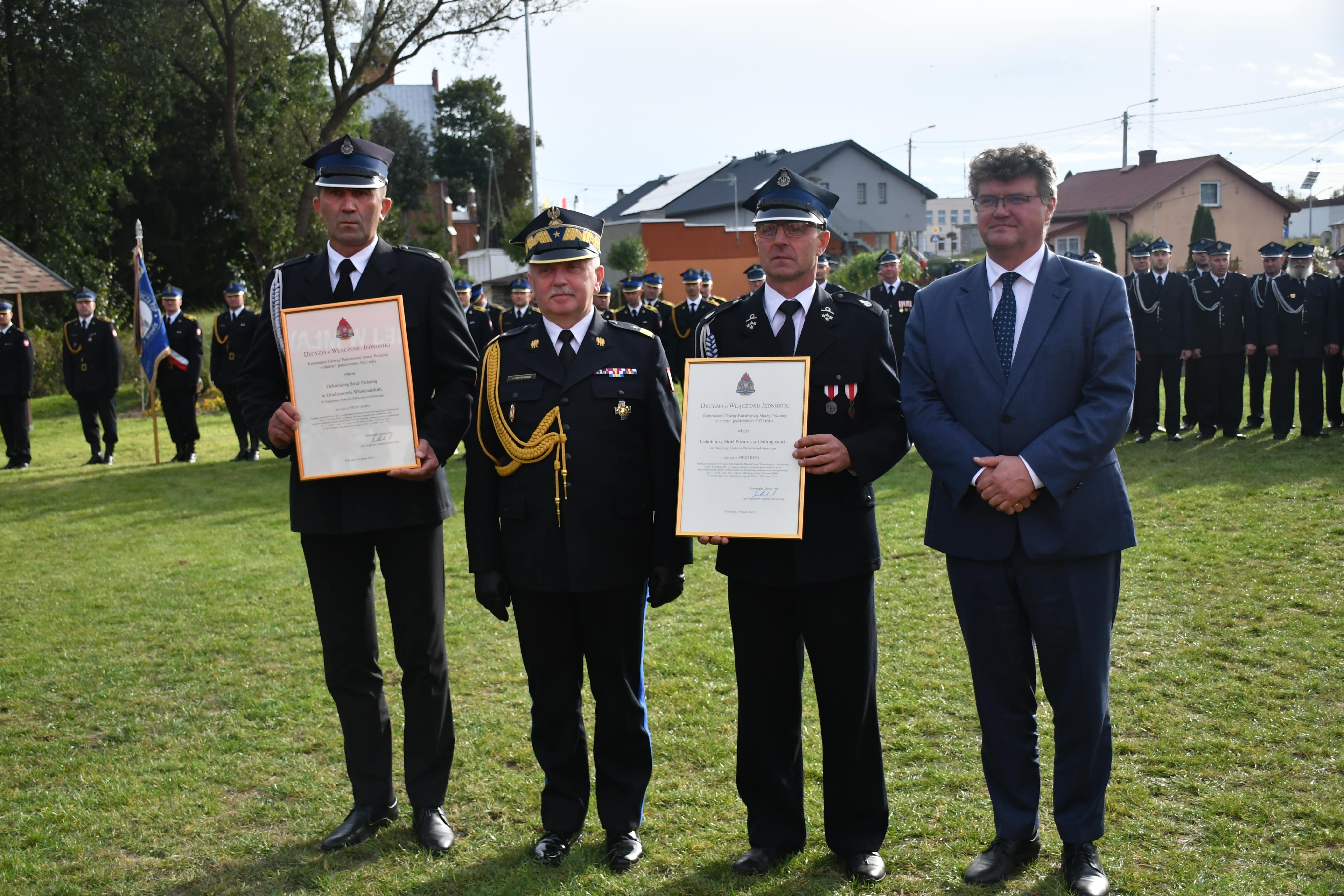 Po oficjalnym rozpoczęciu apelu Sekretarz Stanu w Ministerstwie Spraw Wewnętrznych i Administracji Maciej Wąsik w asyście Mazowieckiego Komendanta Wojewódzkiego PSP – nadbryg. Jarosława Piotrowskiego wręczył przedstawicielom jednostek ochotniczych straży pożarnych z Dobrogost i Gradzanowa Włościańskiego akty włączenia do krajowego systemu ratowniczo-gaśniczego. Powyższe jednostki zostały włączone w struktury ksrg z dniem 1 października bieżącego roku na mocy aktów włączenia podpisanych przez Komendanta Głównego Państwowej Straży Pożarnej gen. brygadiera Andrzeja Bartkowiaka.