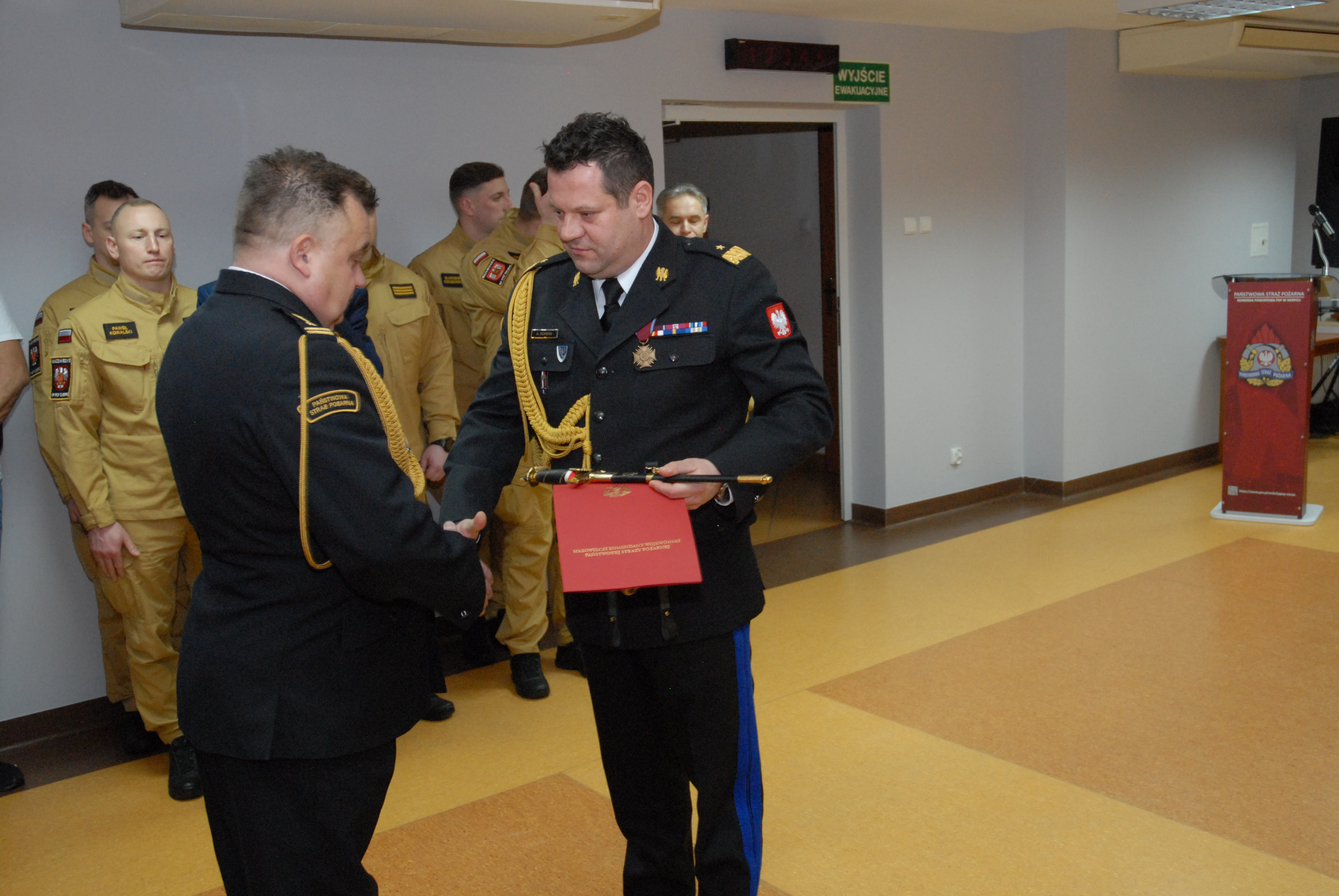 Zdający obowiązki komendanta st. bryg. Marcin Strześniewski podziękował wszystkim zebranym za współpracę, wsparcie i pomoc w trakcie pełnionej służby, podkreślając, że przez ten wieloletni okres pełnienia służby w szeregach Państwowej Straży Pożarnej poznał oraz współpracował z wieloma wspaniałymi ludźmi.