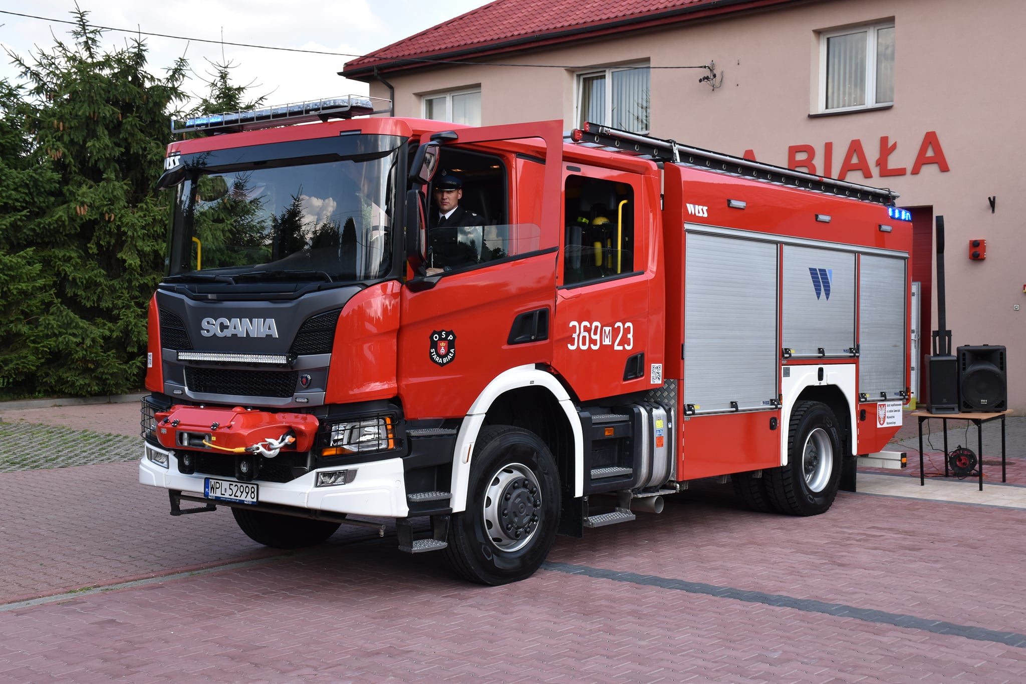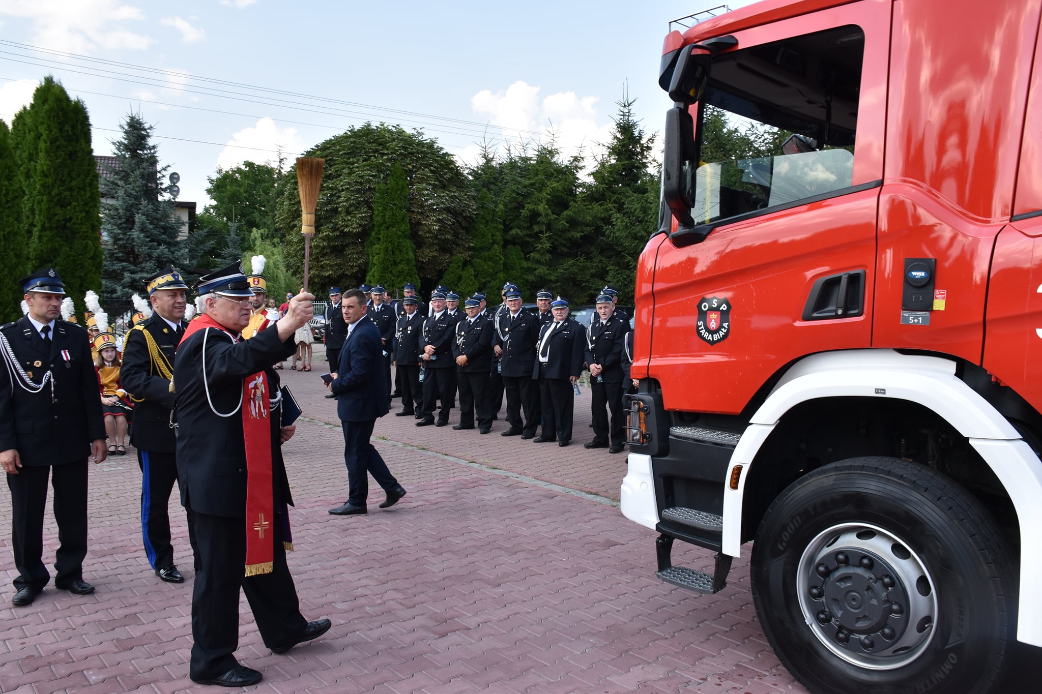 Kulminacyjnym momentem uroczystości było uroczyste przekazanie średniego samochodu ratowniczo-gaśniczego dla jednostki OSP Stara Biała. Po odczytaniu aktu przekazania samochodu ratowniczego przedstawiciele darczyńców wręczyli kluczyki do nowego pojazdu na ręce naczelnika oraz kierowcy OSP Stara Biała.