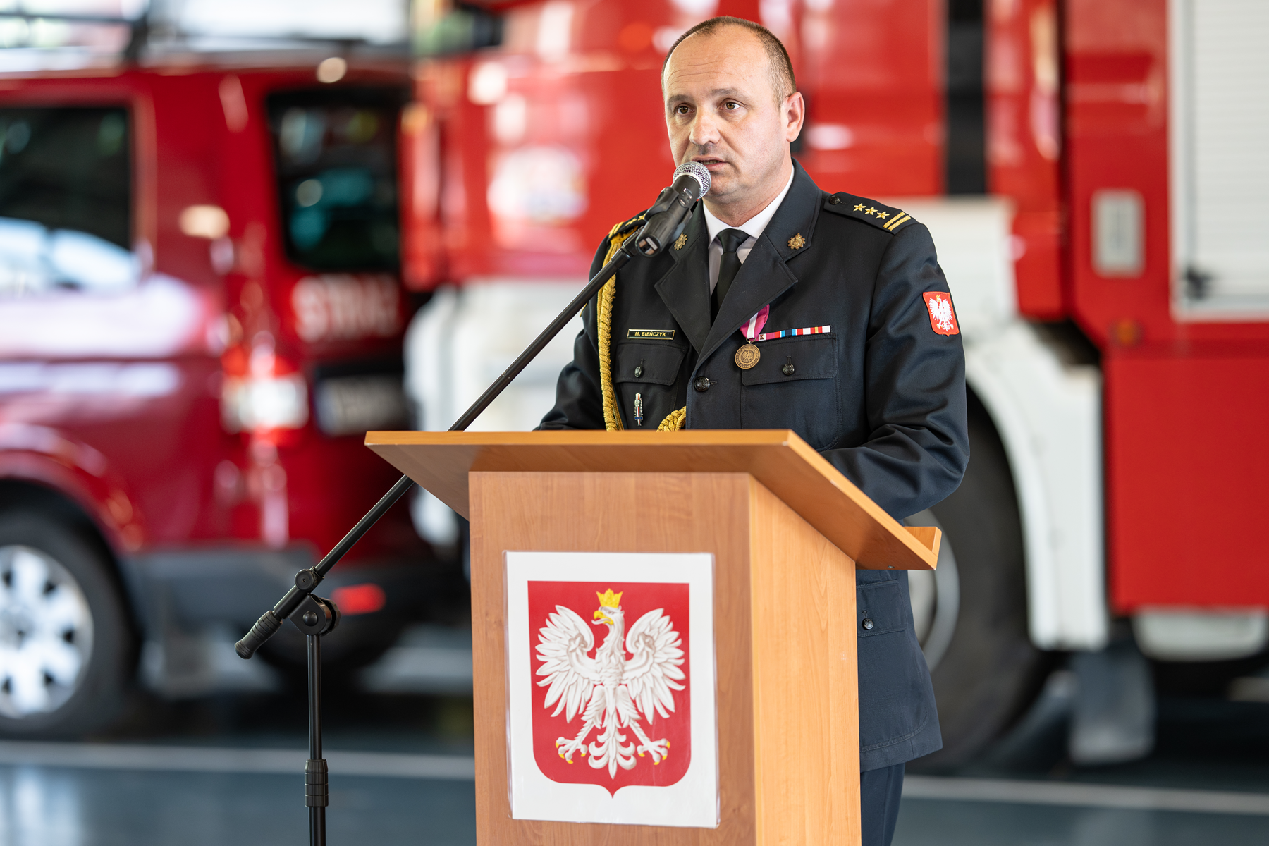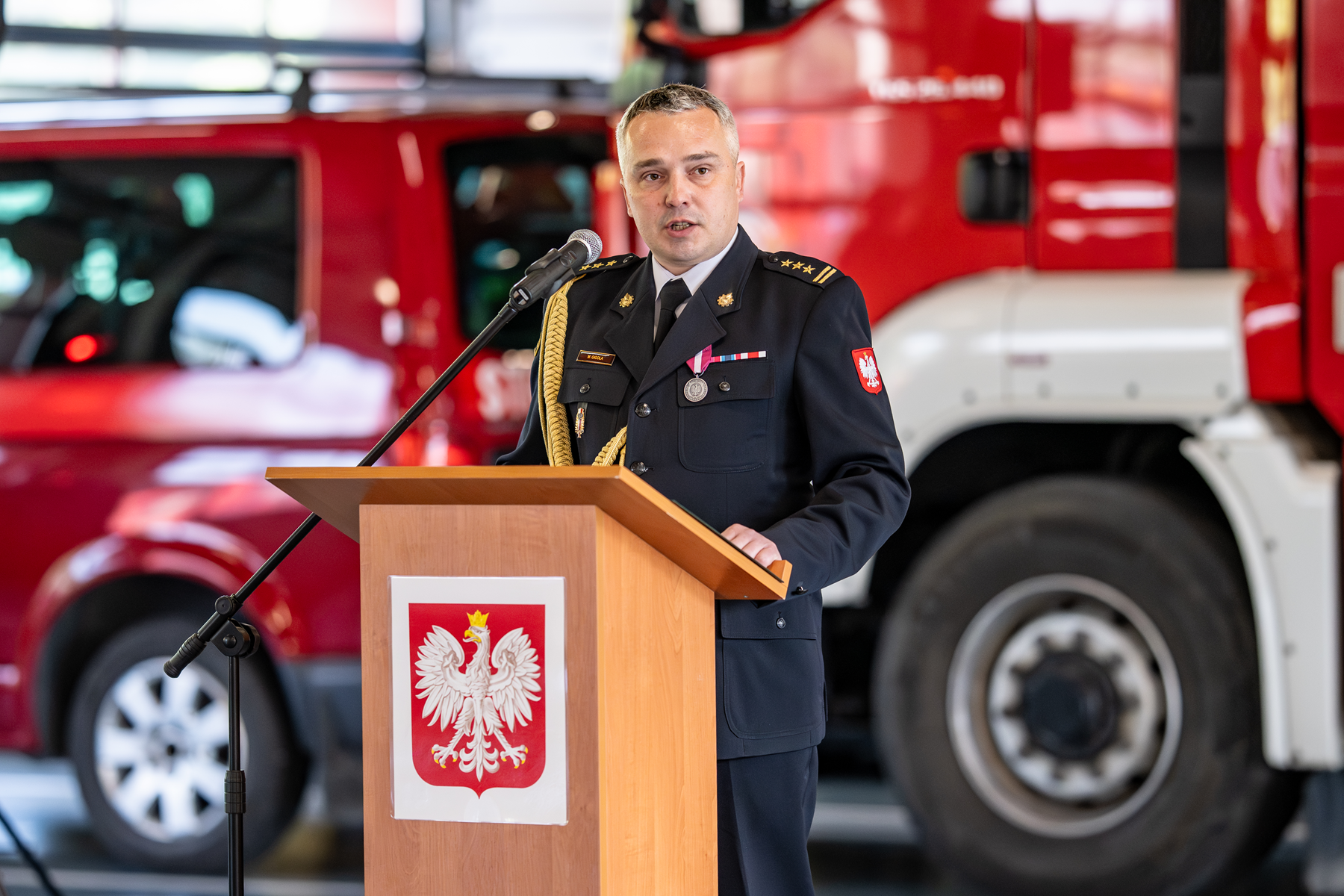 W imieniu awansowanych i wyróżnionych strażaków głos zabrał bryg. Radosław Podgórski, który podziękował przełożonym za docenienie zaangażowania strażaków w wypełnianiu obowiązków służbowych.