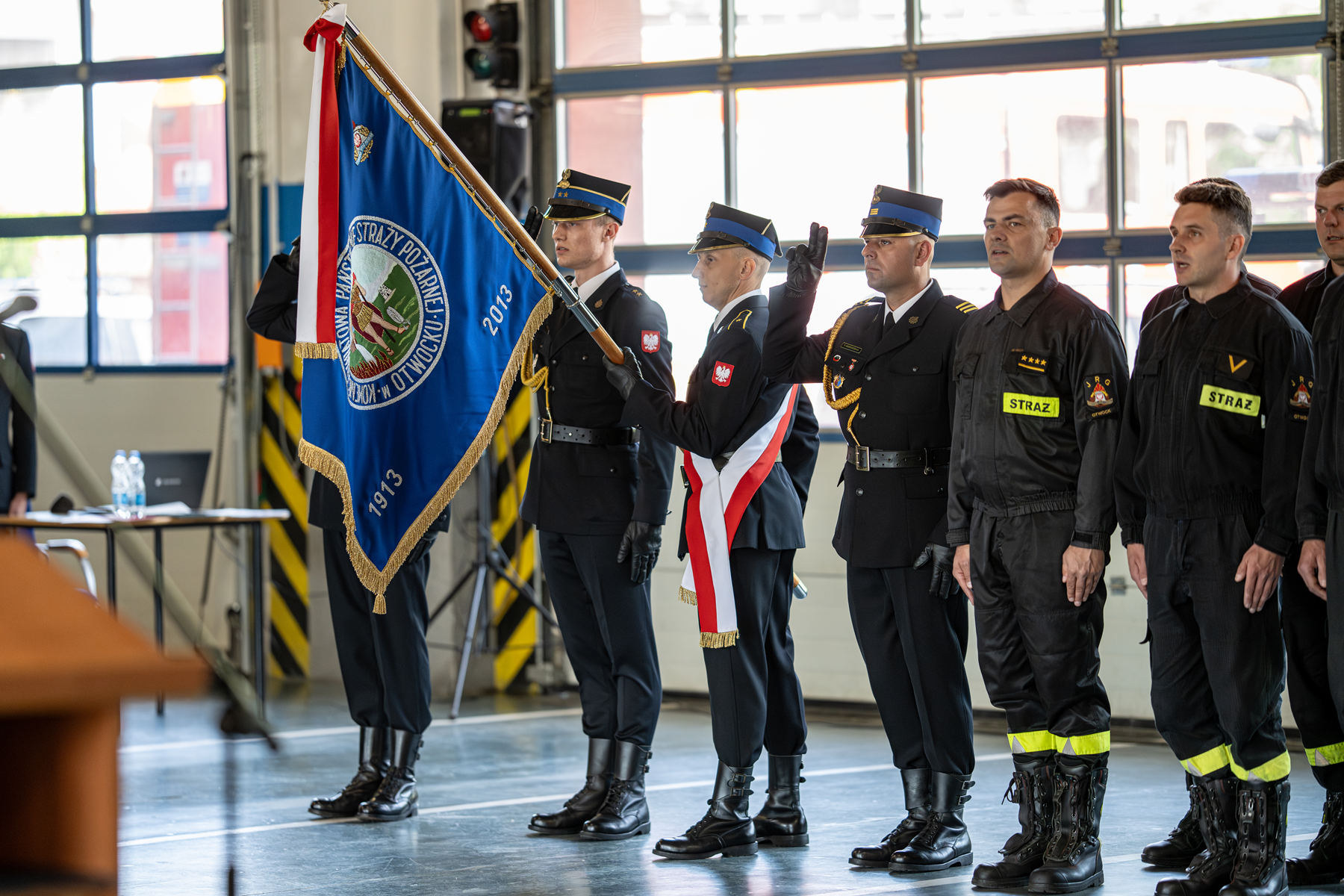 Rozpoczął się złożeniem meldunku Zastępcy Mazowieckiego Komendanta Wojewódzkiego PSP st. bryg. Maciejowi Bieńczykowi, który dokonał przeglądu pododdziałów i przywitał się z pocztami sztandarowymi, po czym odegrany został hymn RP.