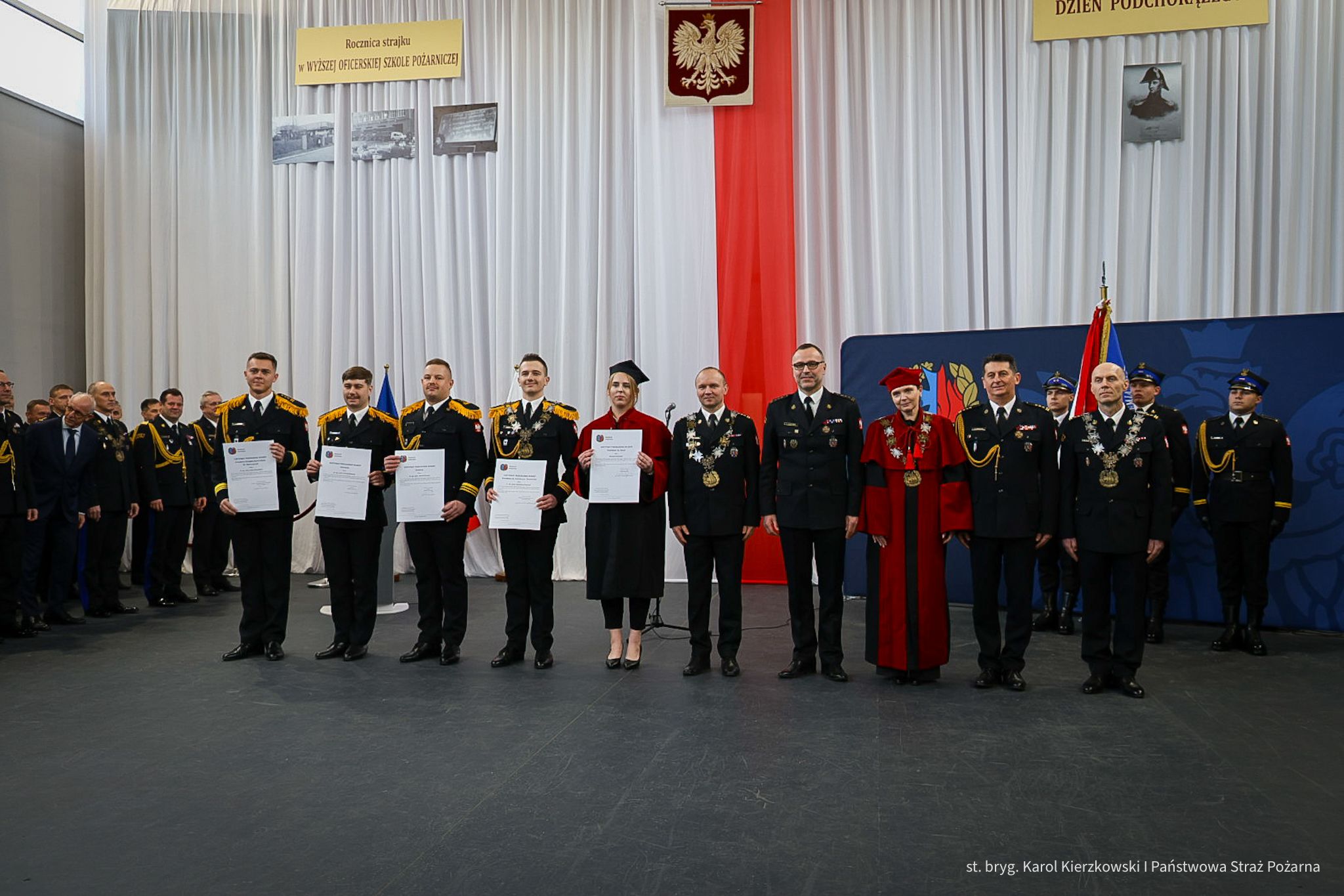 Uroczystość była wspaniałą okazją do wręczenia podchorążym i studentom oraz funkcjonariuszom i pracownikom aktów nadania wyższych stopni służbowych, odznaczeń, odznak, nagród i okolicznościowych dyplomów za działalność na rzecz Uczelni i formacji. Wielce zaszczytnym momentem było wręczenie dyplomów uzyskania tytułu doktora habilitowanego przez funkcjonariusza Akademii Pożarniczej oraz tytułów doktorskich.