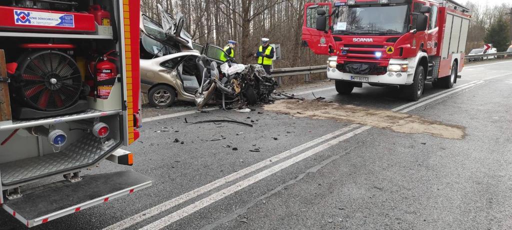 W dniu dzisiejszym około godz. 7:45 wpłynęło zgłoszenie o wypadku drogowym w miejscowości Goździków w powiecie przysuskim. Na DK 12 doszło do zderzenia czołowego samochodu osobowego z samochodem ciężarowym - piaskarką. Samochodem osobowym podróżowało 5 osób – 2 z nich trafiły do szpitala. Działania na miejscu zdarzenia nadal trwają. Droga zablokowana jest w obu kierunkach.