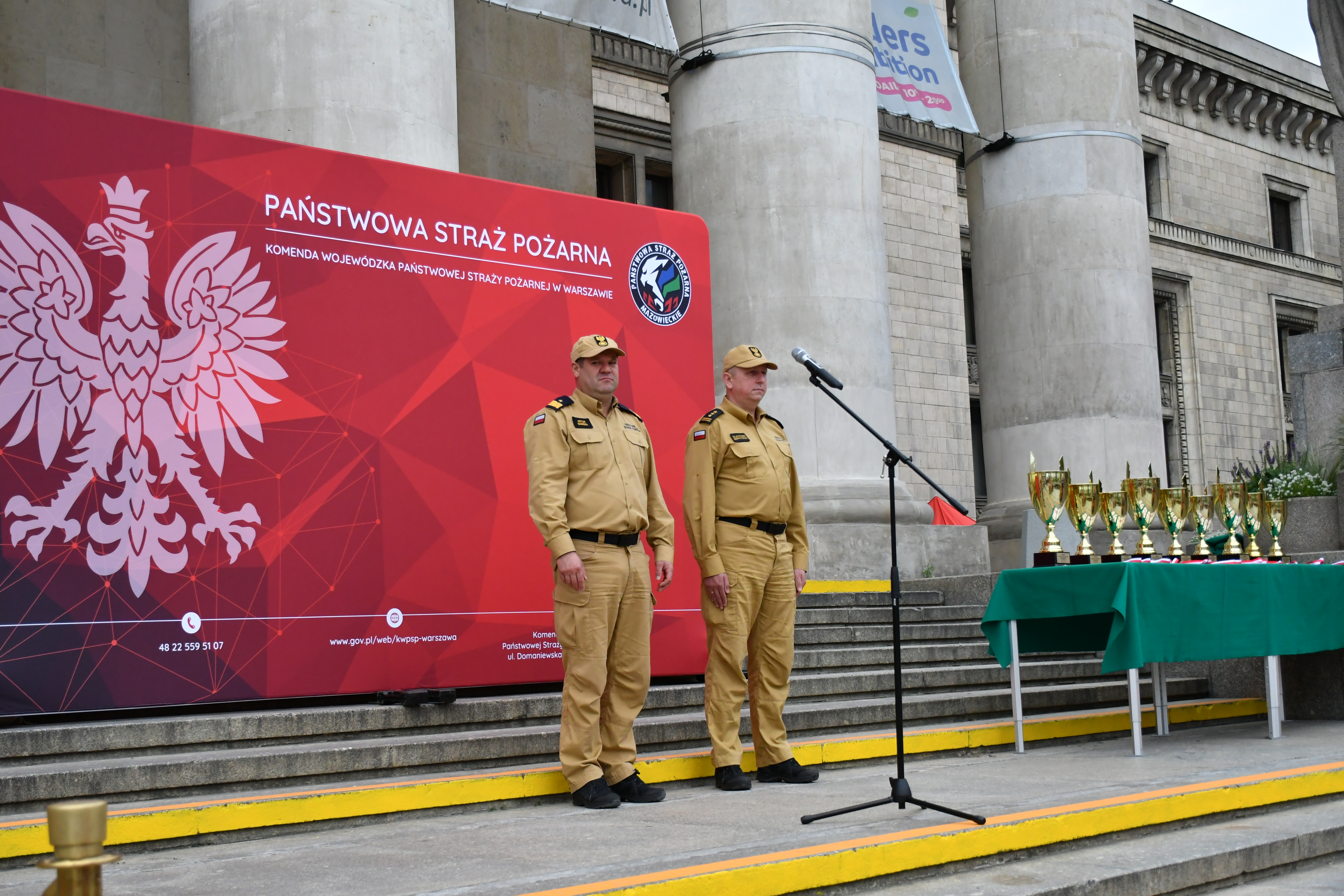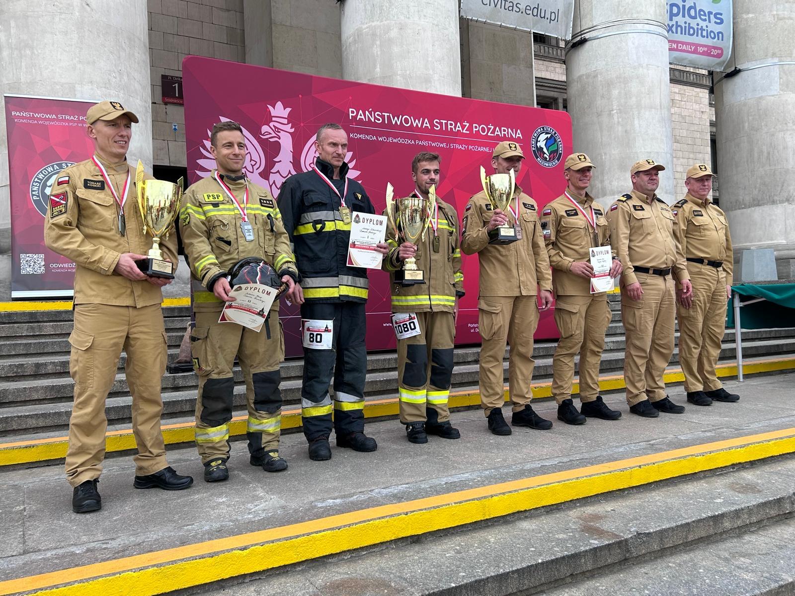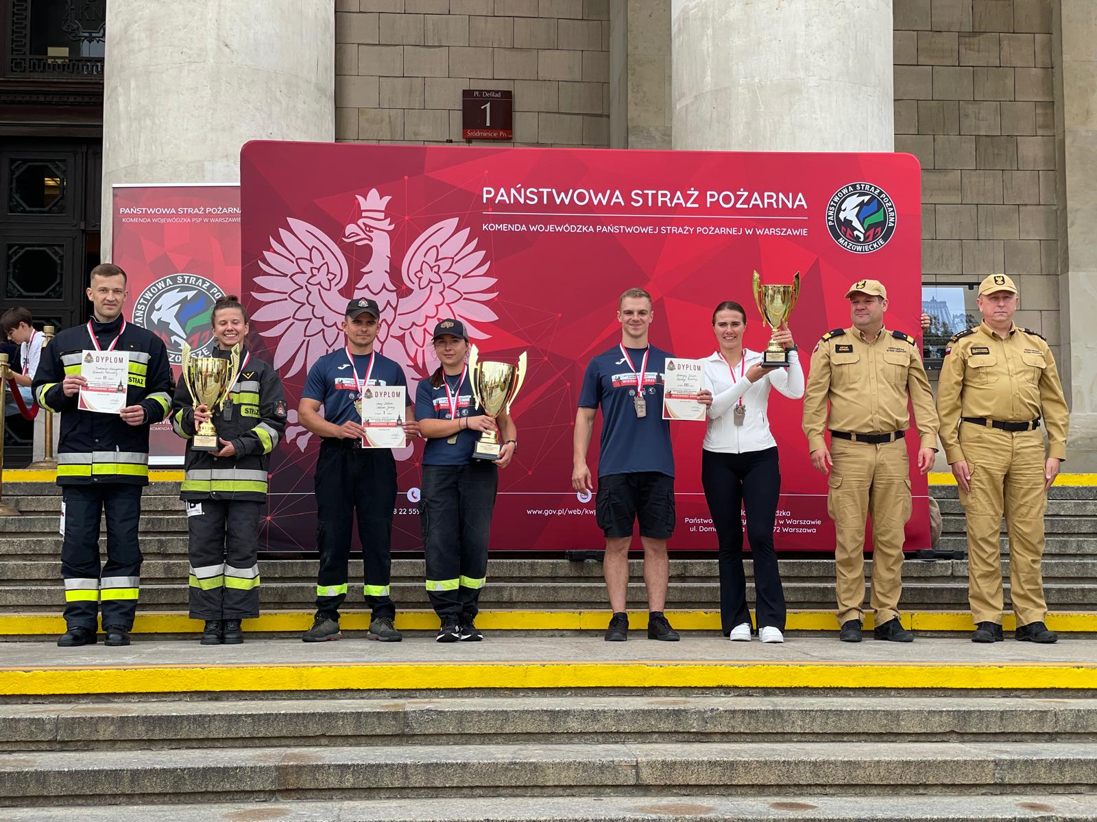 Medale, puchary oraz dyplomy wręczyli Mazowiecki Komendant Wojewódzki PSP nadbryg. Artur Gonera i Komendant Miejski PSP m.st. Warszawy st. bryg. Sławomir Sierpatowski.