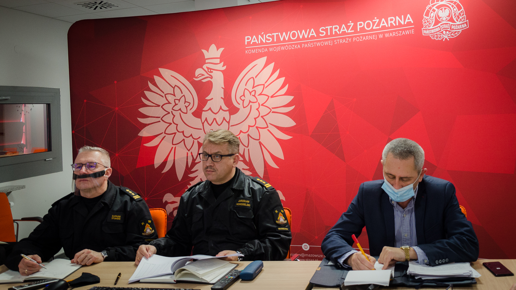 13 stycznia 2021 roku miała miejsce wideokonferencja kadry kierowniczej PSP woj. mazowieckiego z udziałem st. bryg. Jarosława Nowosielskiego mazowieckiego komendanta wojewódzkiego PSP oraz pana Mariusza Sokołowskiego pełnomocnika wojewody mazowieckiego do spraw realizacji Narodowego Programu Szczepień przeciw COVID-19.