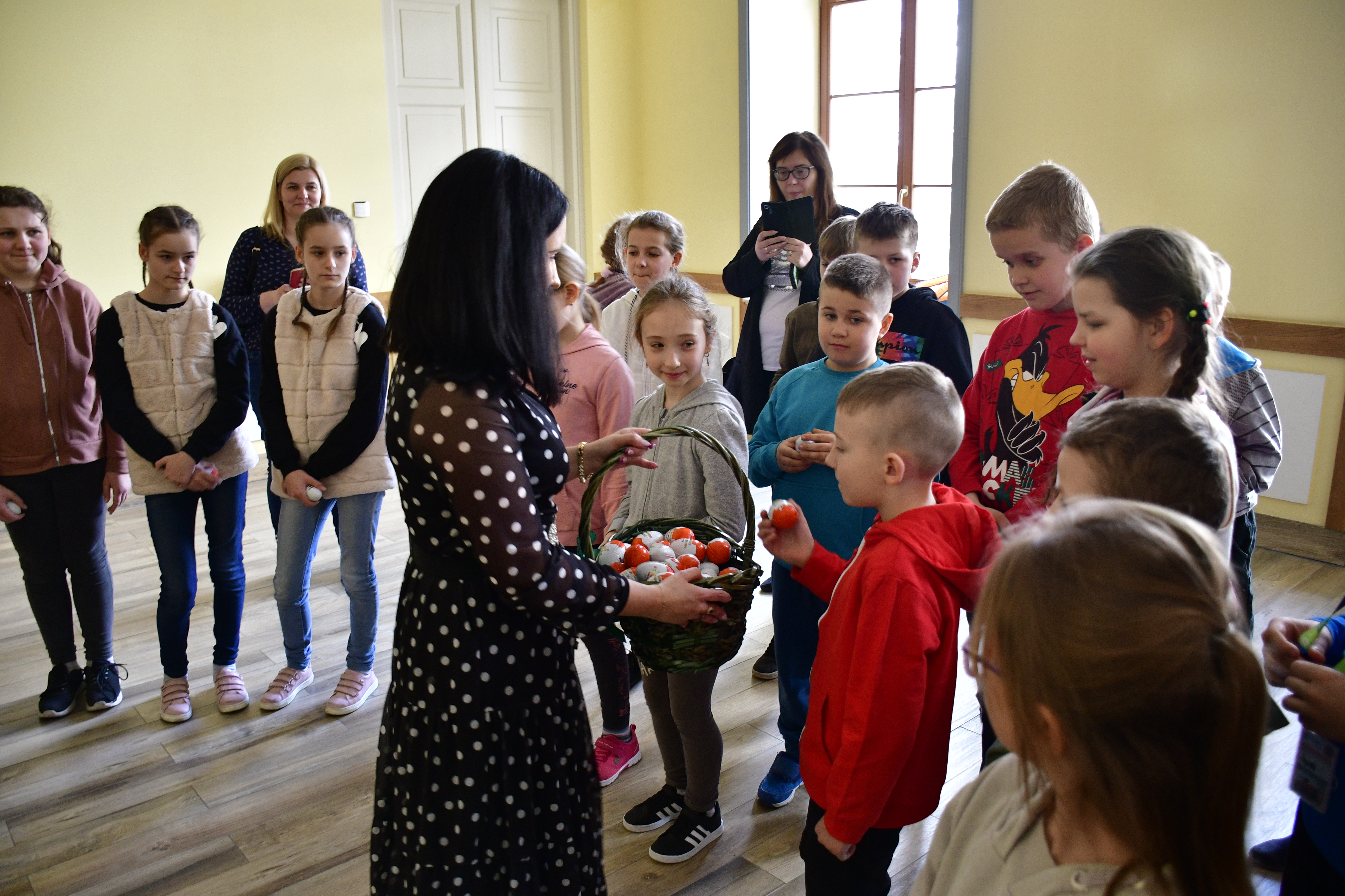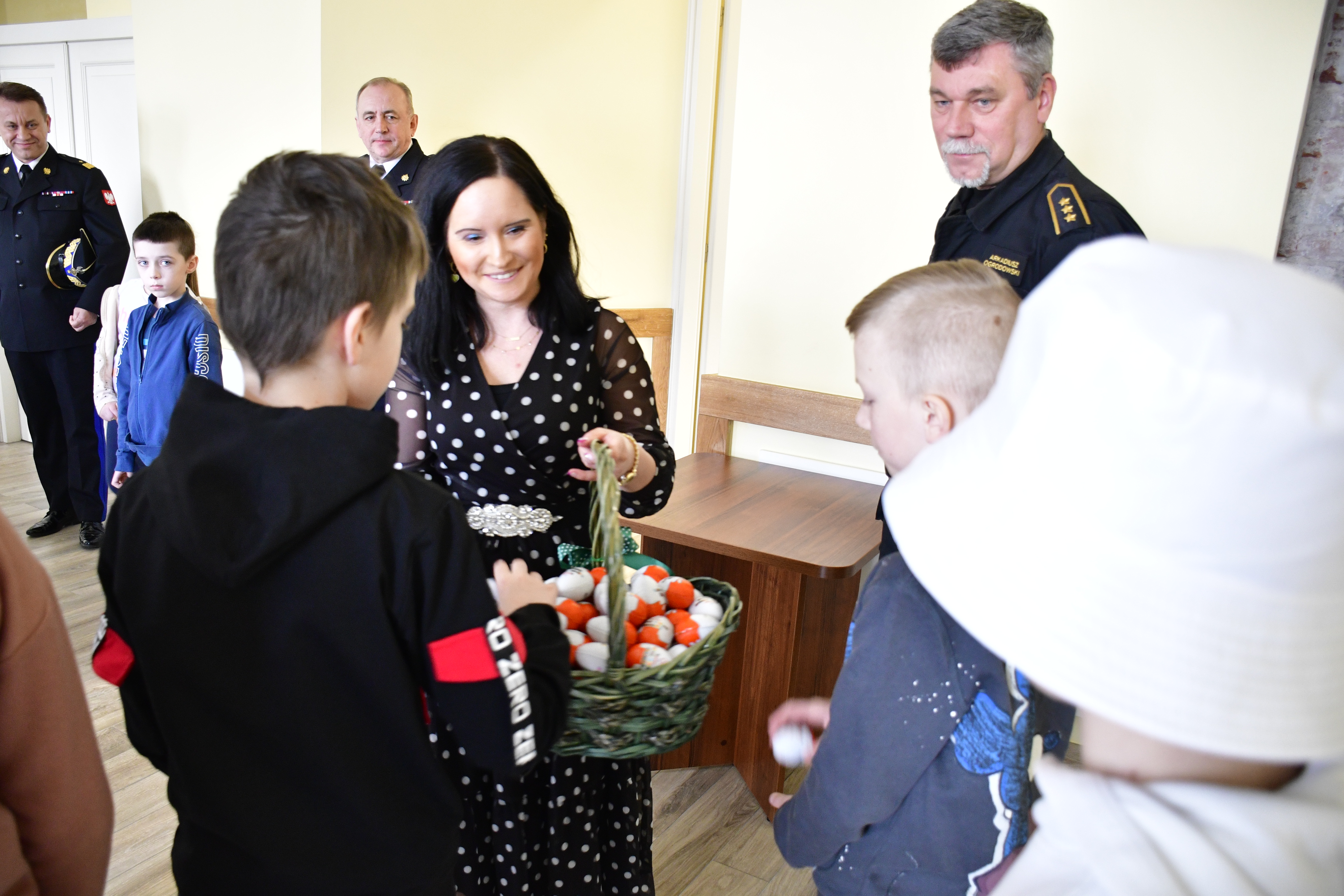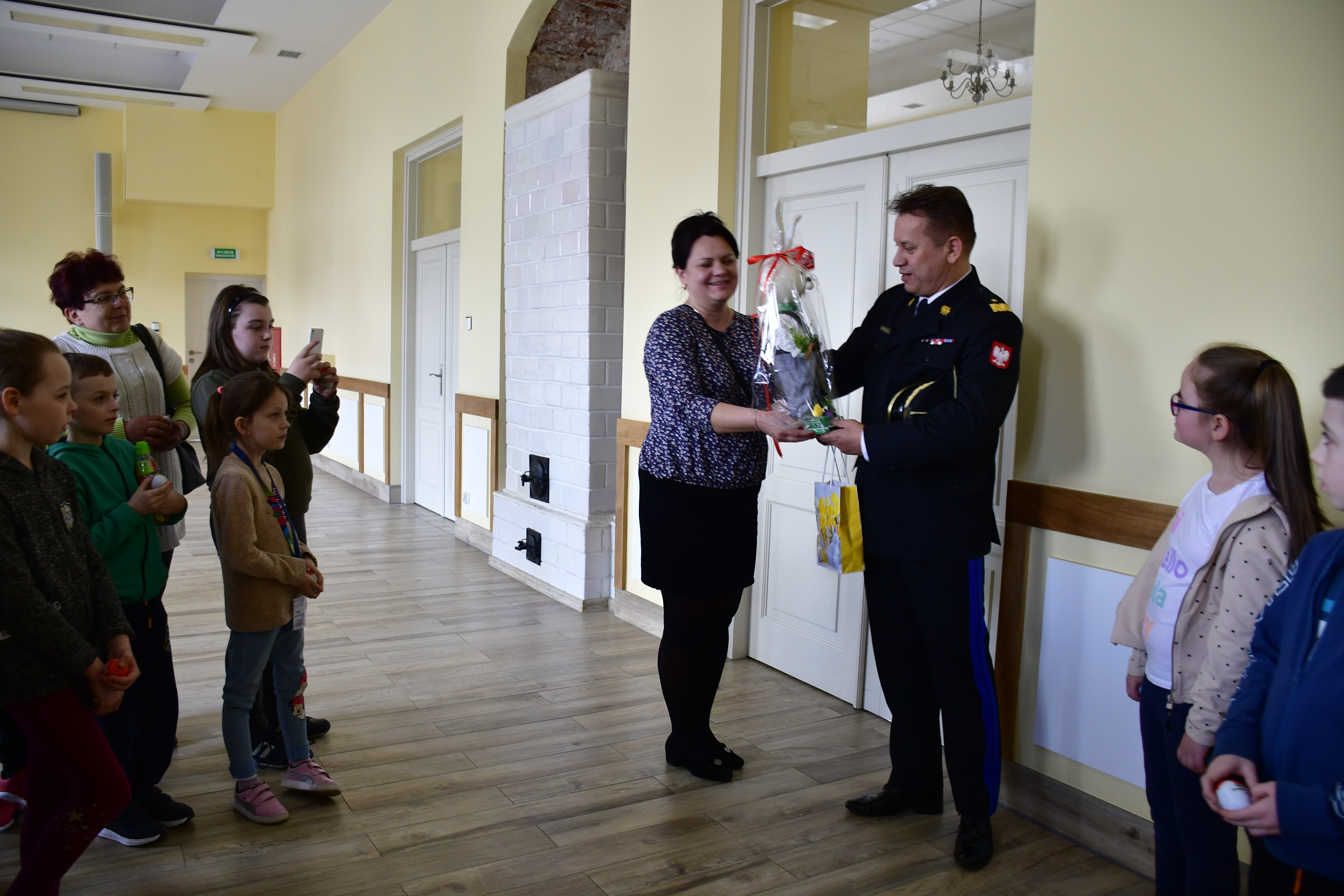 ze zwycięzcami konkursu „Czujka na straży Twojego bezpieczeństwa” Leną Molkowską i Michałem Lesińskim ze Szkoły Podstawowej im. Bohaterów Bitwy pod Sarnową Górą w Bądkowie oraz ich klasą. Lena i Michał zostali zwycięzcami konkursu, organizowanego przez Komendę Wojewódzką PSP