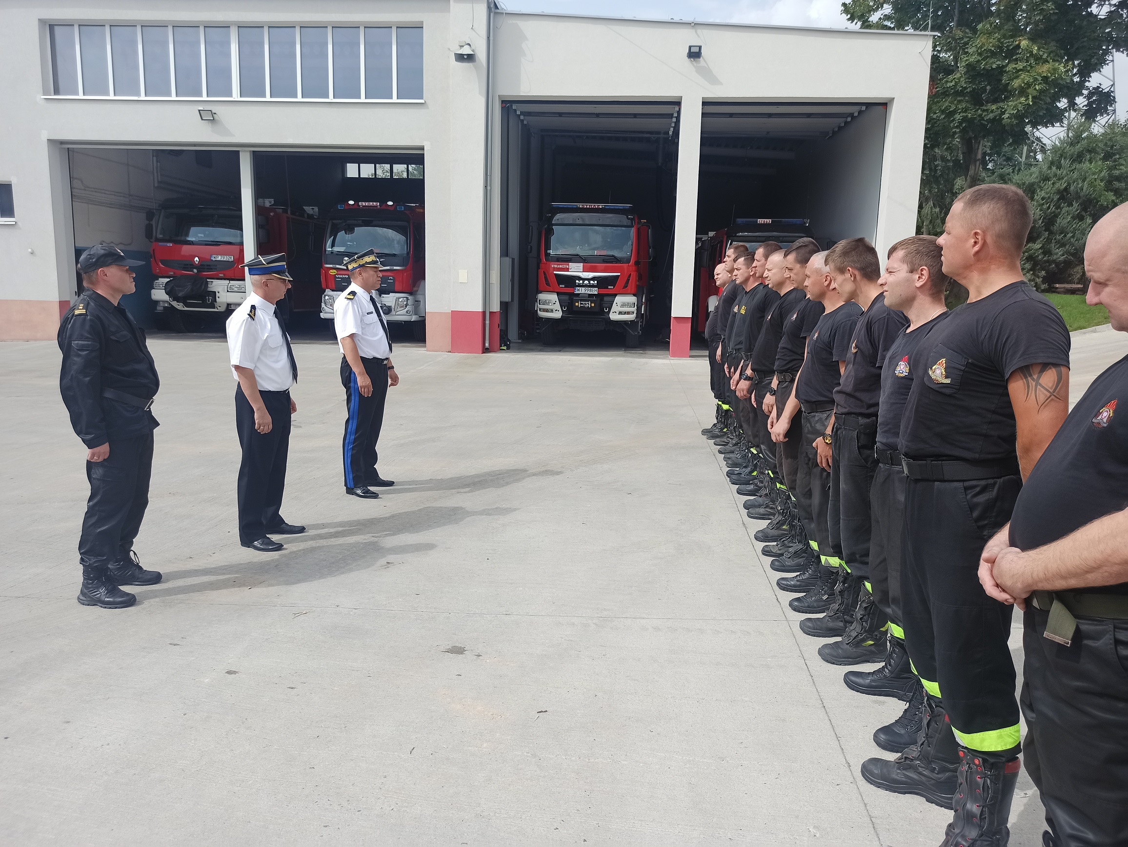 Mazowiecki Komendant Wojewódzki PSP nadbryg. Jarosław Nowosielski spotkał się również ze strażakami pełniącymi w tym dniu służbę w JRG KM PSP w Płocku. Komendant zapoznał się z warunkami socjalno-bytowymi oraz wyposażeniem jednostki.