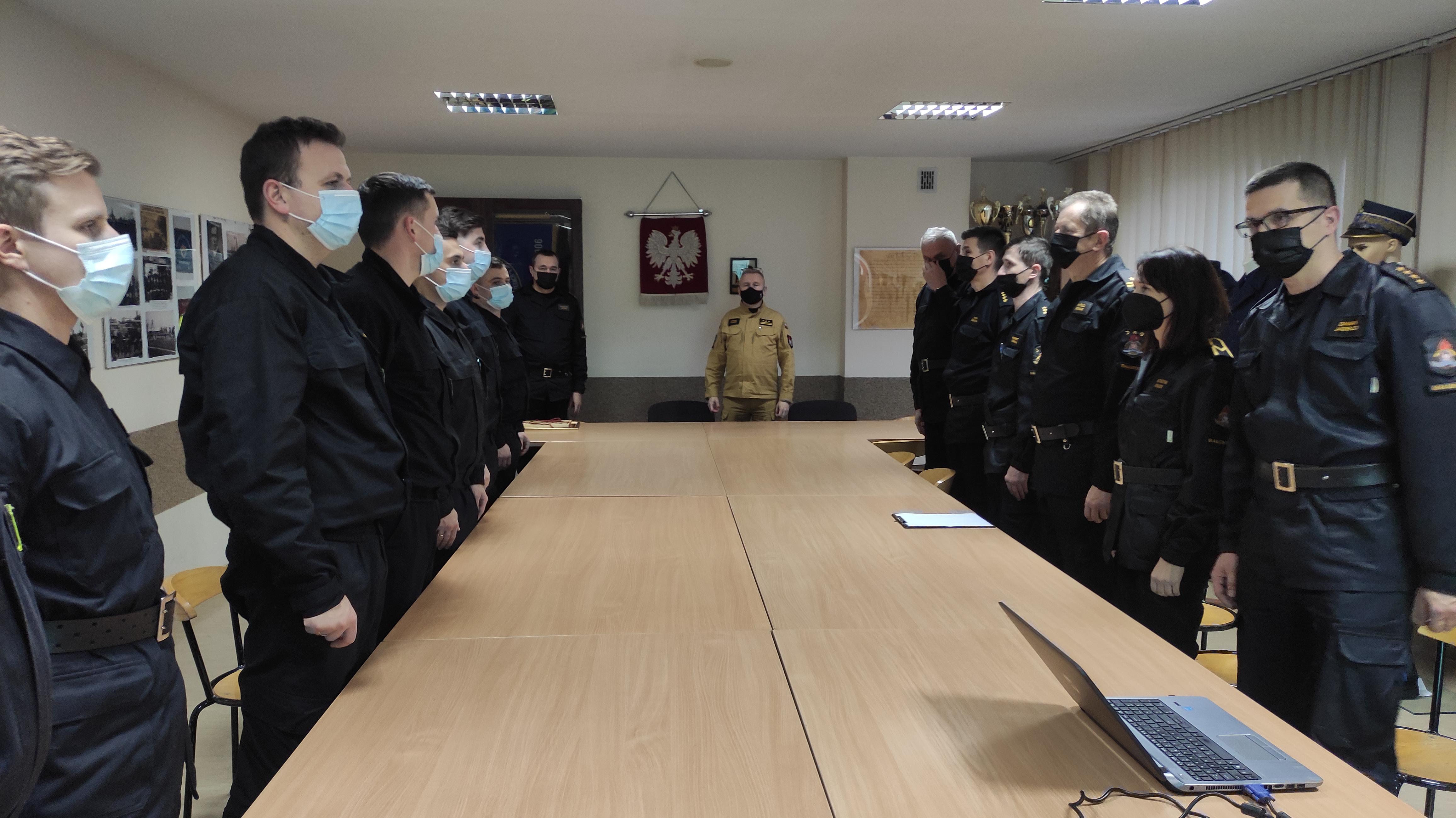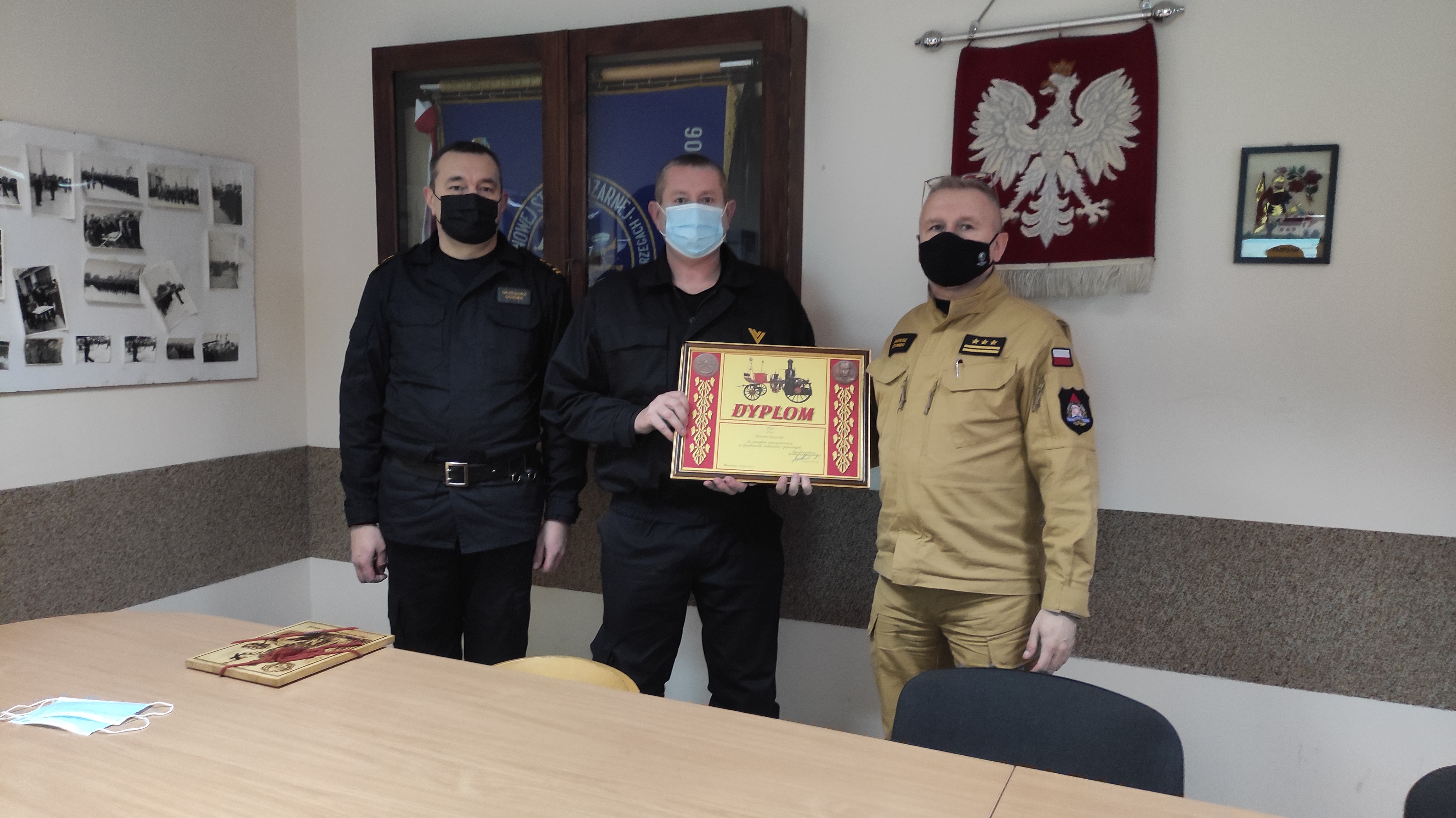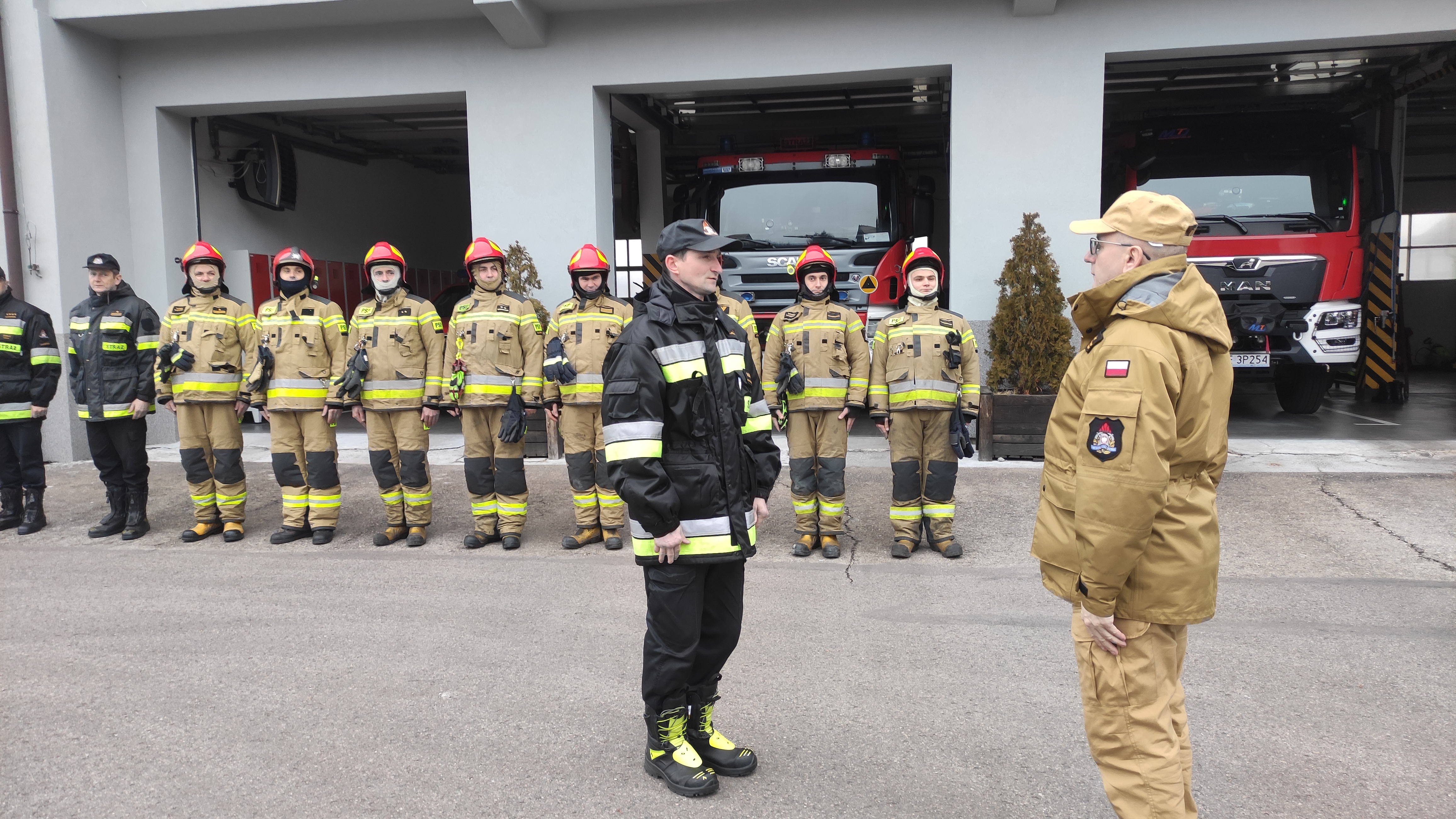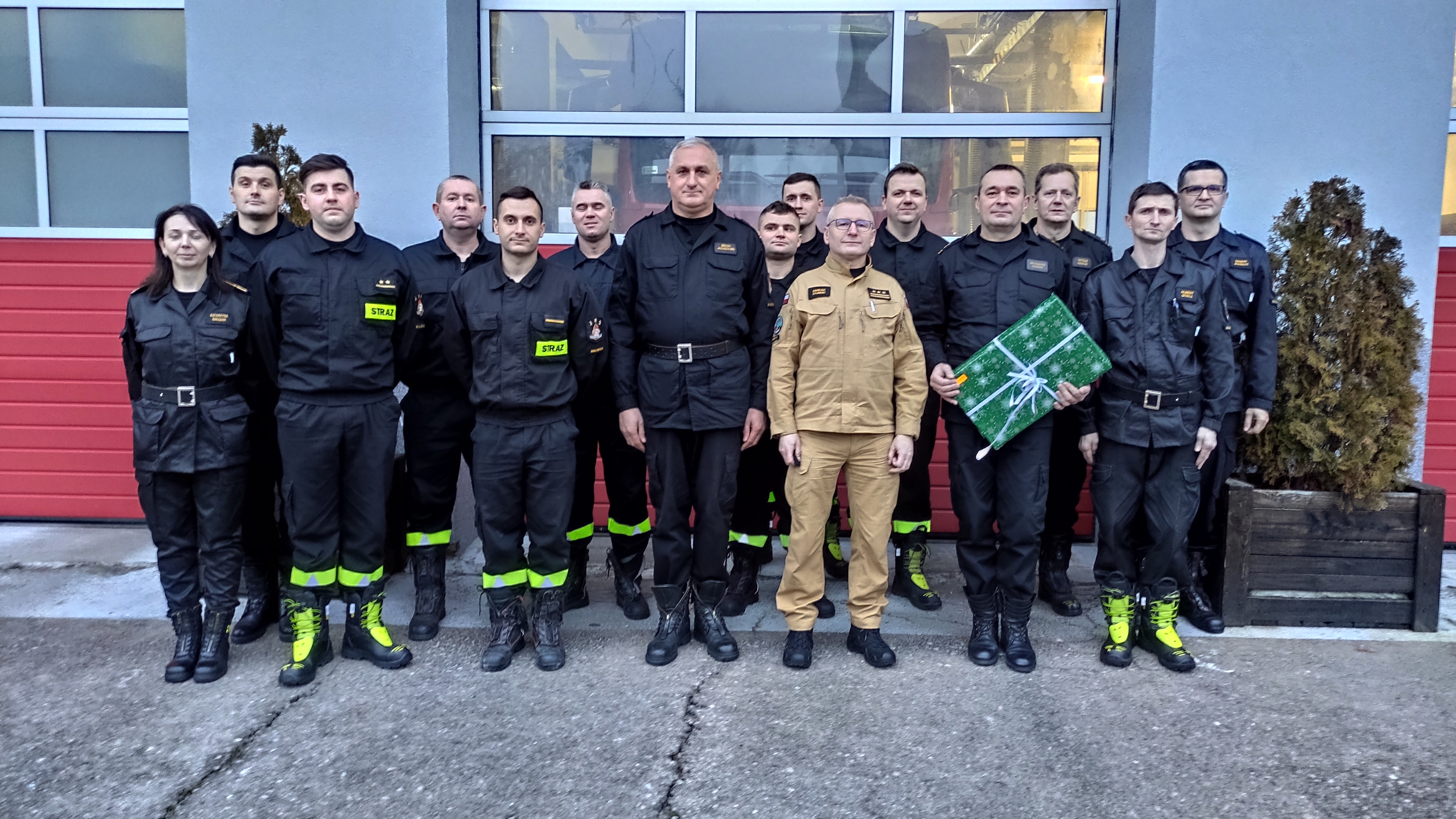 Ponadto podziękował za zaangażowanie i profesjonalizm podczas działań ratowniczo-gaśniczych oraz za wkład pracy włożony w utrzymanie jednostki i sprzętu. Wizyta była okazją do zapoznania się z warunkami socjalno-bytowymi w Komendzie oraz wyposażeniem sprzętowym Jednostki Ratowniczo Gaśniczej.