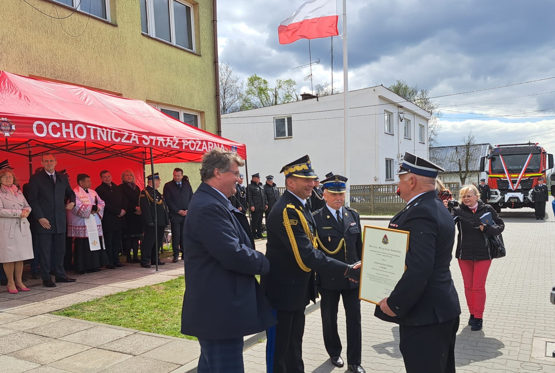 Kolejnym ważnym punktem uroczystości było wręczenie aktów przekazania pojazdów oraz sprzętu pożarniczego.
