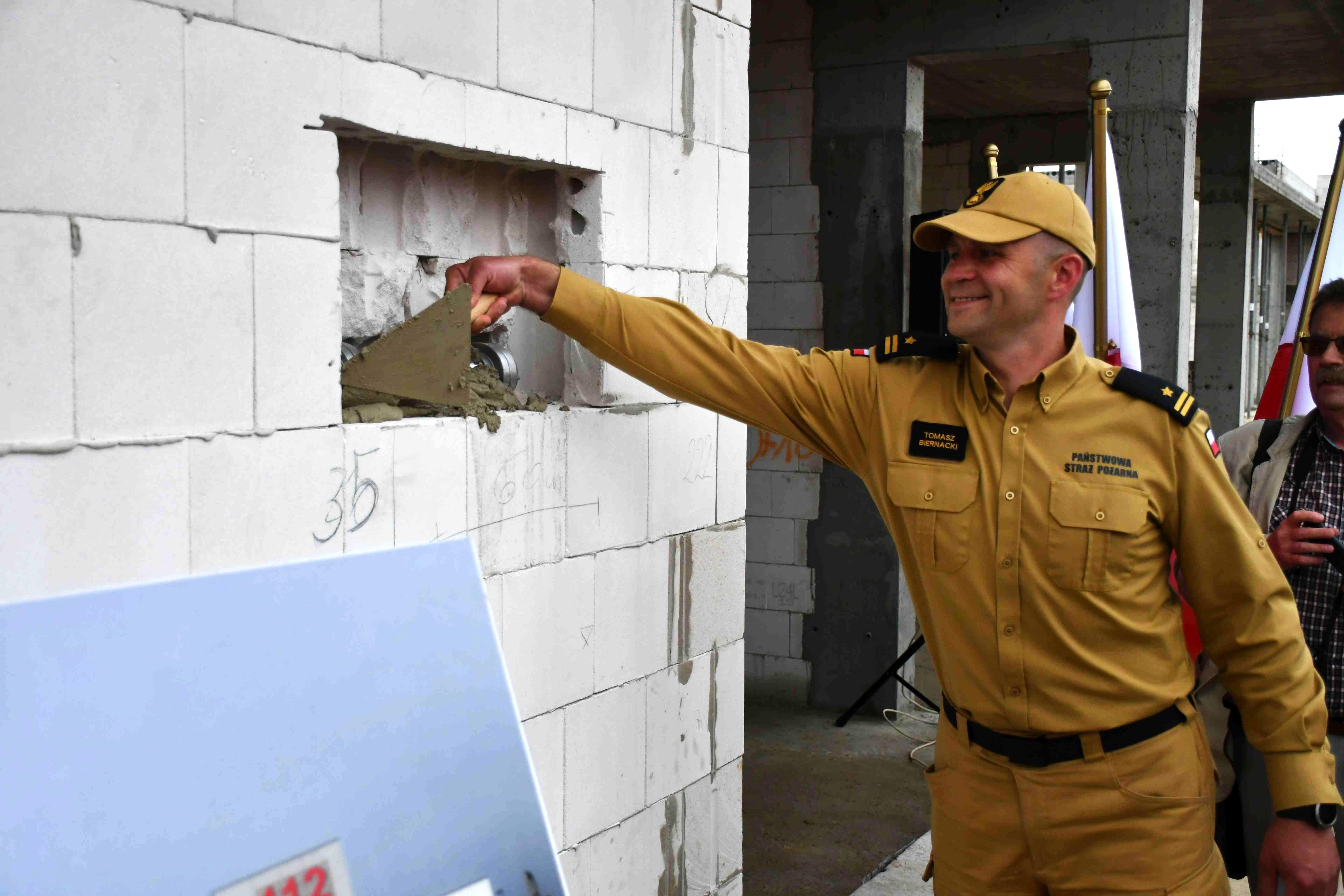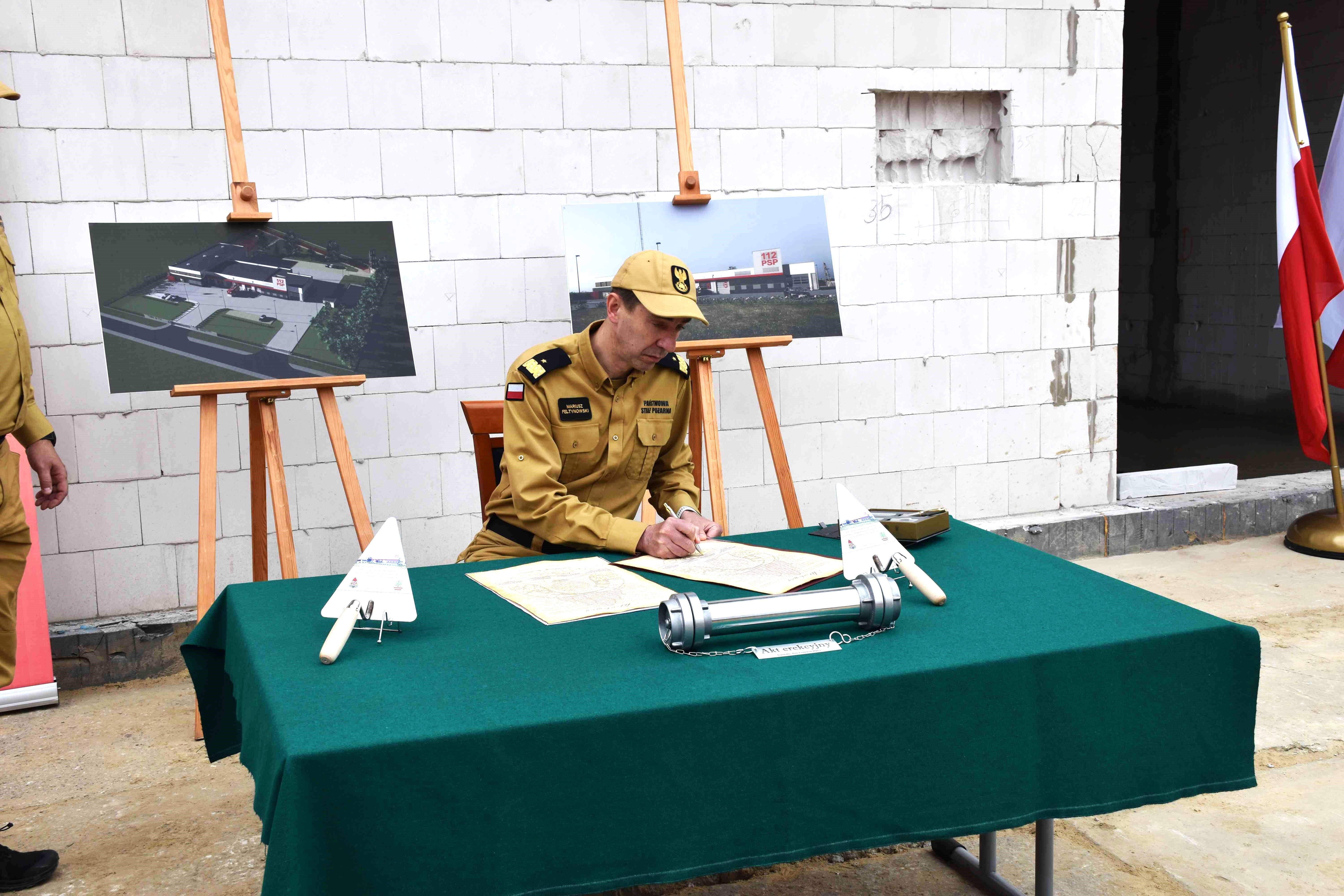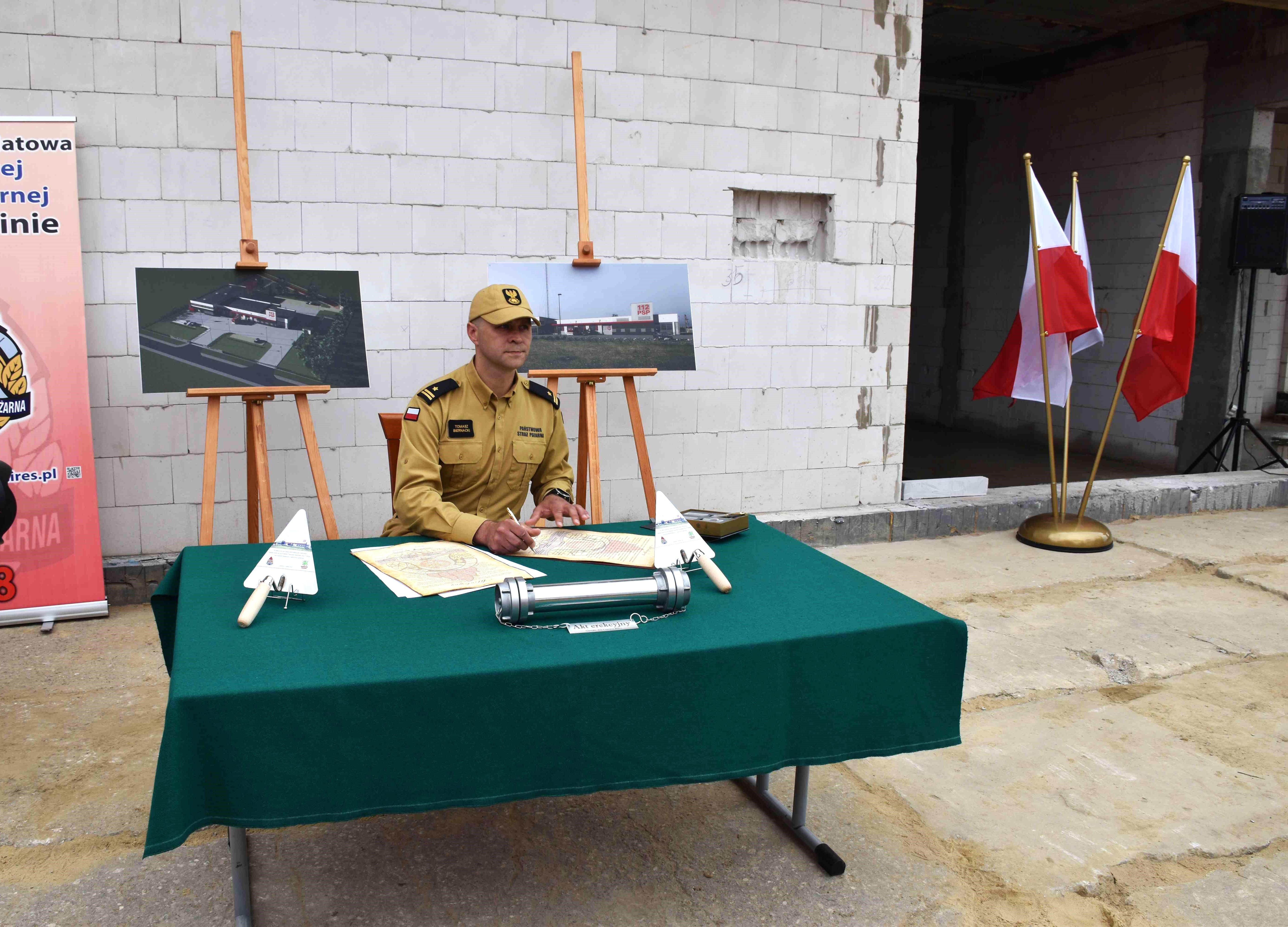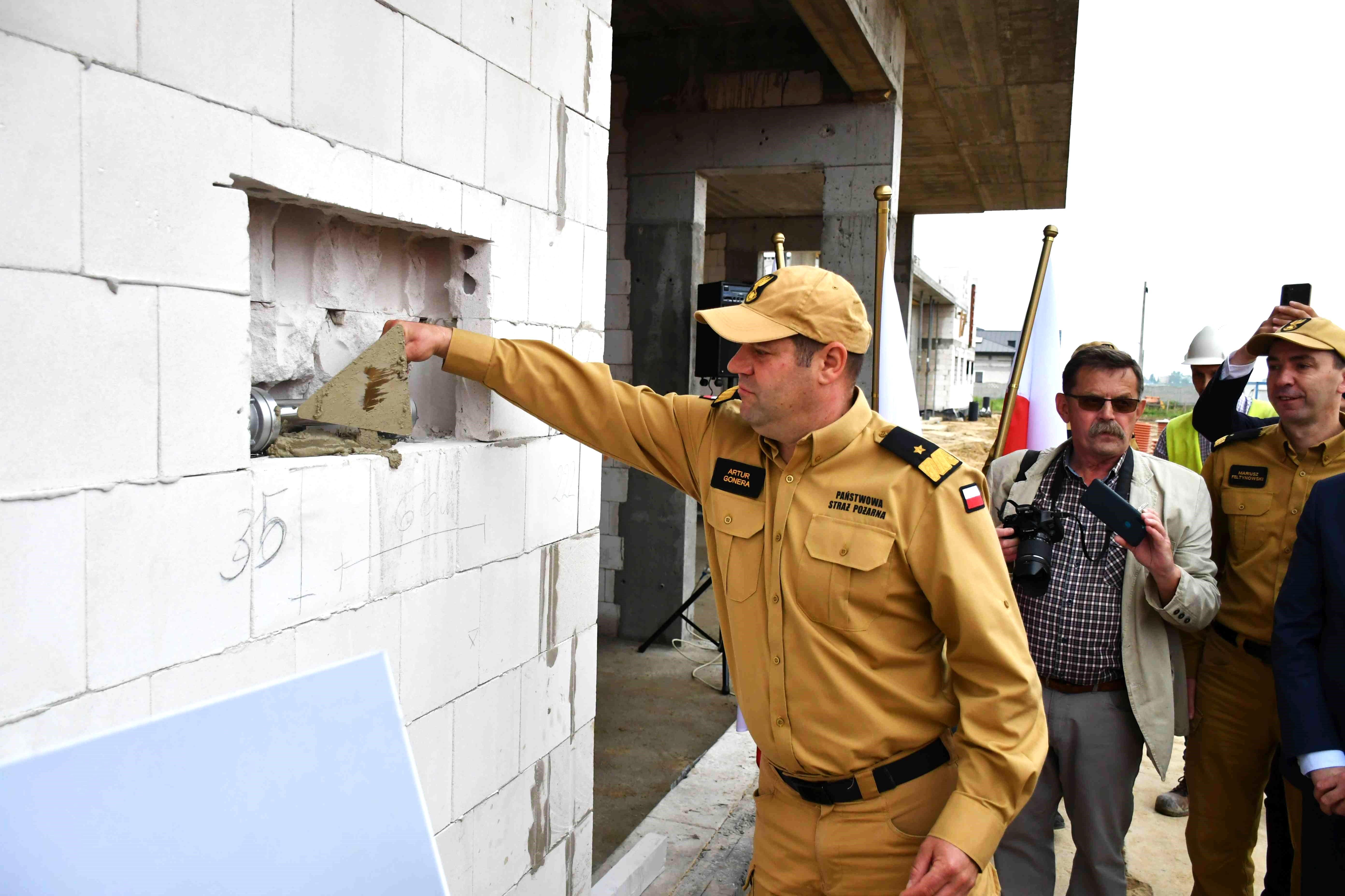 Po otwarciu uroczystości i przywitaniu zaproszonych gości przez Komendanta Powiatowego PSP w Garwolinie mł. bryg. Tomasza Biernackiego nastąpiło podpisanie oraz wmurowanie aktu erekcyjnego w nowo powstającym obiekcie komendy.