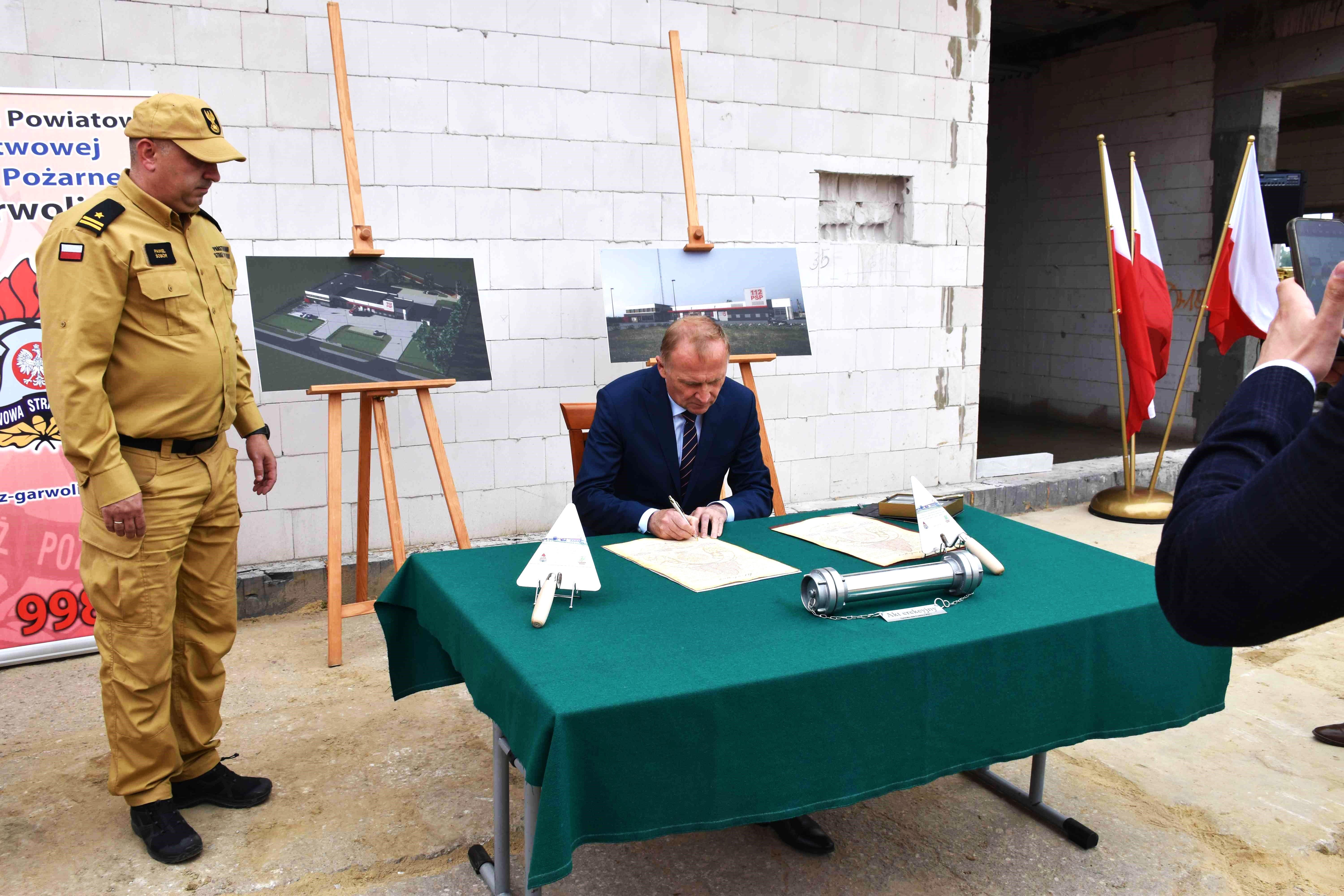 Wmurowanie aktu erekcyjnego pod budowę Komendy Powiatowej PSP w Garwolinie wraz z Jednostką Ratowniczo-Gaśniczą