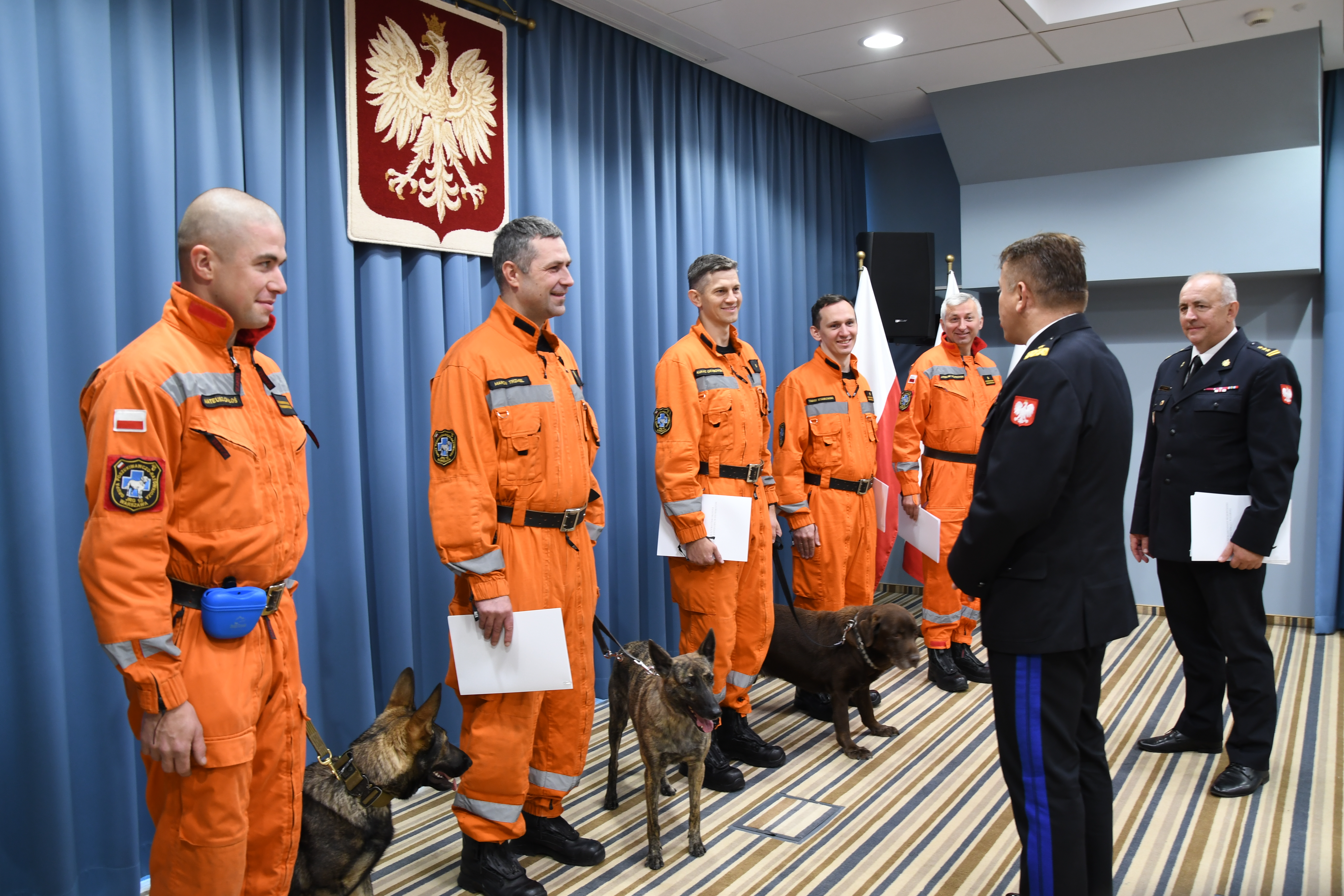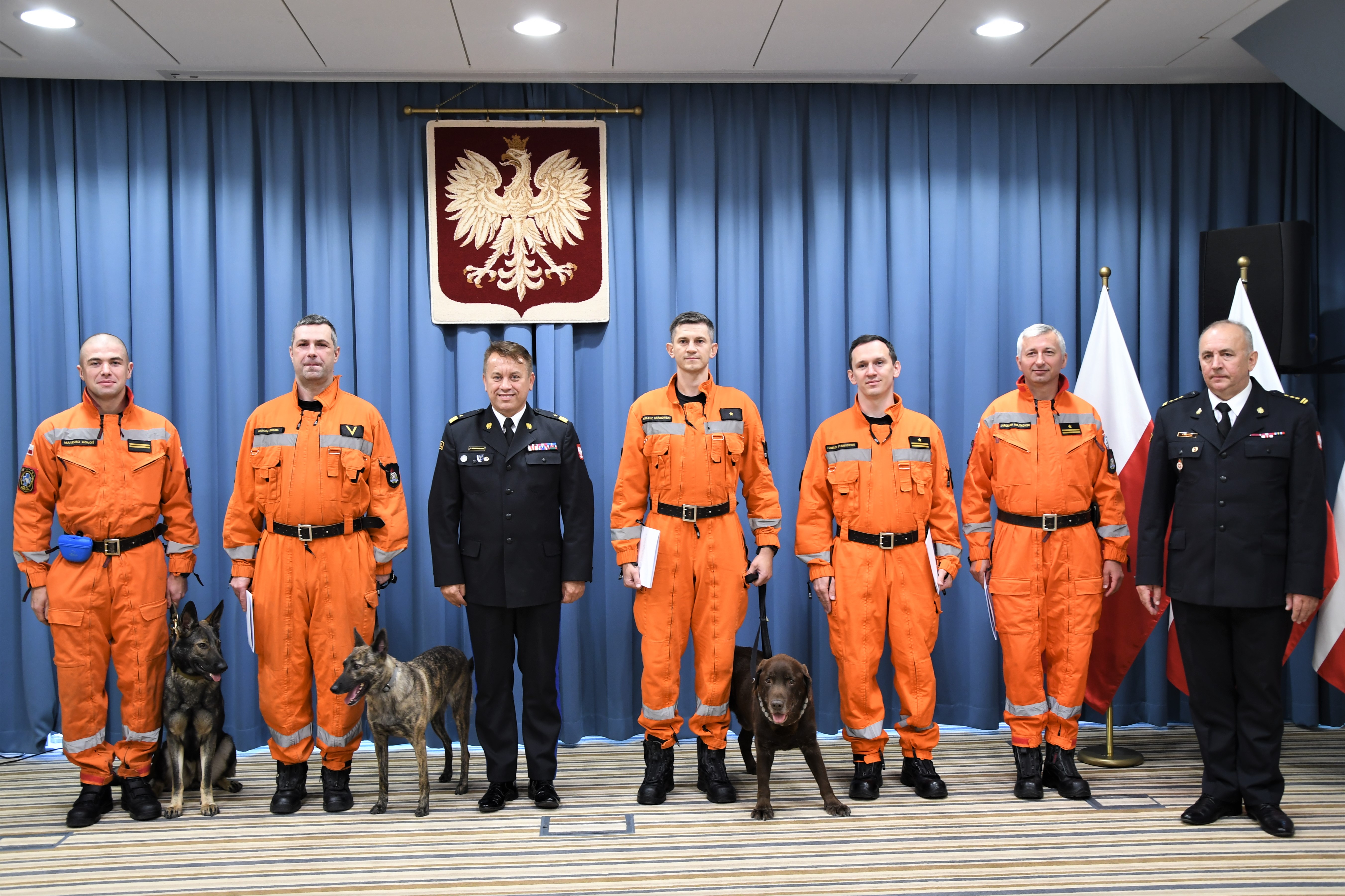 Mazowiecki Komendant Wojewódzki PSP podziękował funkcjonariuszom za zaangażowanie, poświęcenie również prywatnego czasu na szkolenie i zajmowanie się psami oraz za dotychczasową służbę, która często wiąże się z nieoczekiwanymi wyjazdami, także zagranicznymi i pracą w trudnych, niebezpiecznych warunkach.