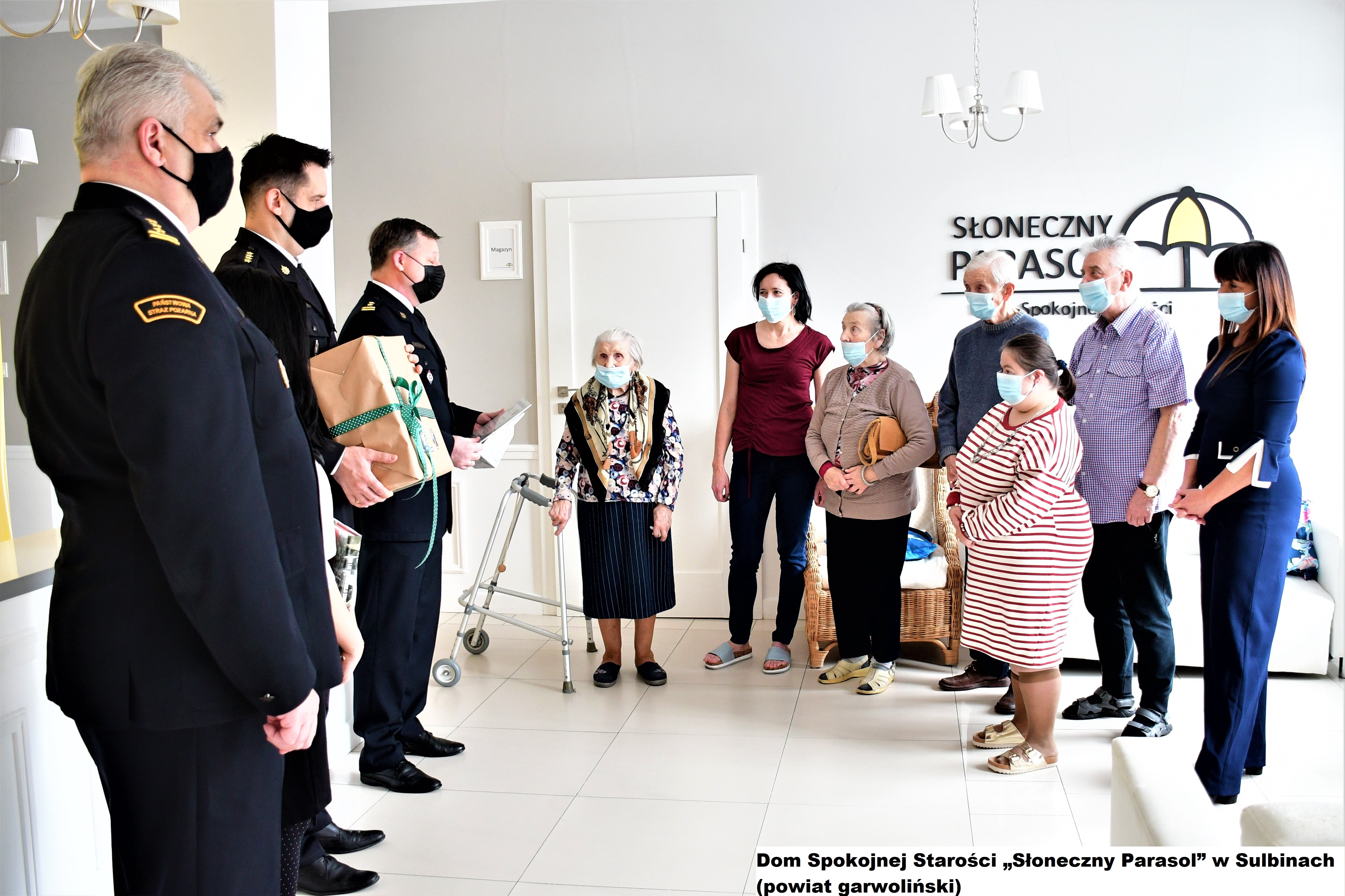 wraz z właściwymi terenowo Komendantami Powiatowymi/Miejskimi PSP, w imieniu Mazowieckiego Komendanta Wojewódzkiego PSP, odwiedziła 7 Domów Pomocy Społecznej na terenie województwa mazowieckiego, a także Szkołę Podstawową im. Bohaterów Bitwy pod Sarnową Górą 1920 w Bądkowie.