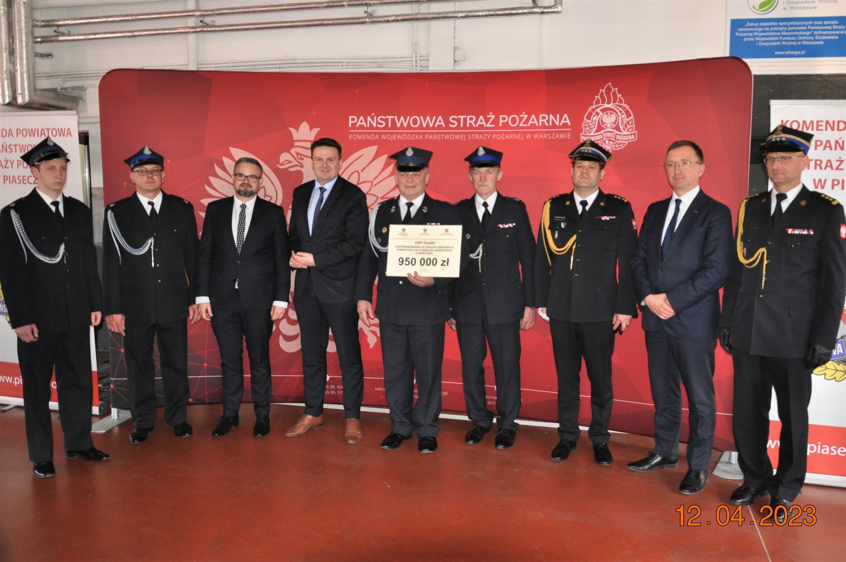 14 kwietnia 2023 roku w Komendzie Powiatowej Państwowej Straży Pożarnej w Piasecznie odbyła się uroczystość z okazji wręczenia promes na zakup samochodów pożarniczych dla Ochotniczych Straży Pożarnych w ramach realizacji „Ogólnopolskiego programu finansowania służb ratowniczych – Dofinansowanie zakupu sprzętu i wyposażenia jednostek Ochotniczych Straży Pożarnych”.